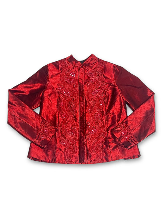 Y2K Chico’s Shiny Ruby Red Blouse (L)