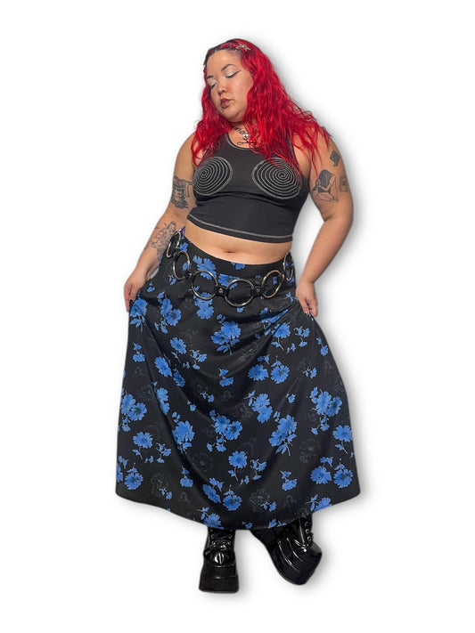 Y2K Designs by Lane Bryant Floral Blue Skirt (3X/4X)