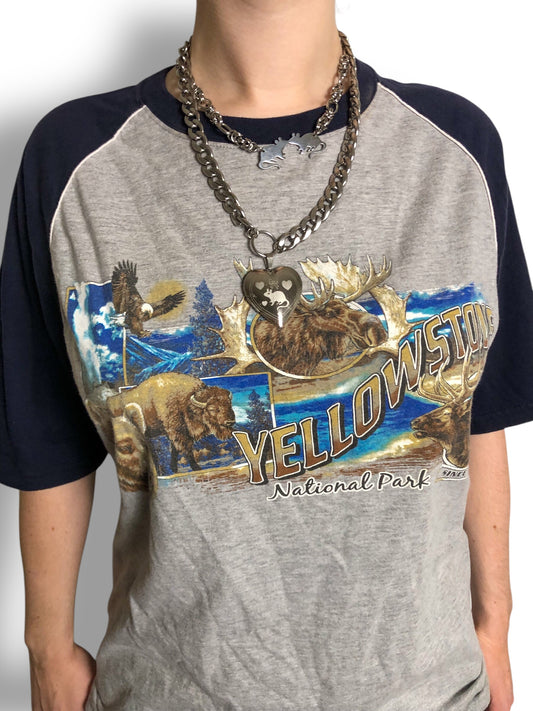 Y2K Yellowstone National Park Heather Gray Raglan T-Shirt (L)