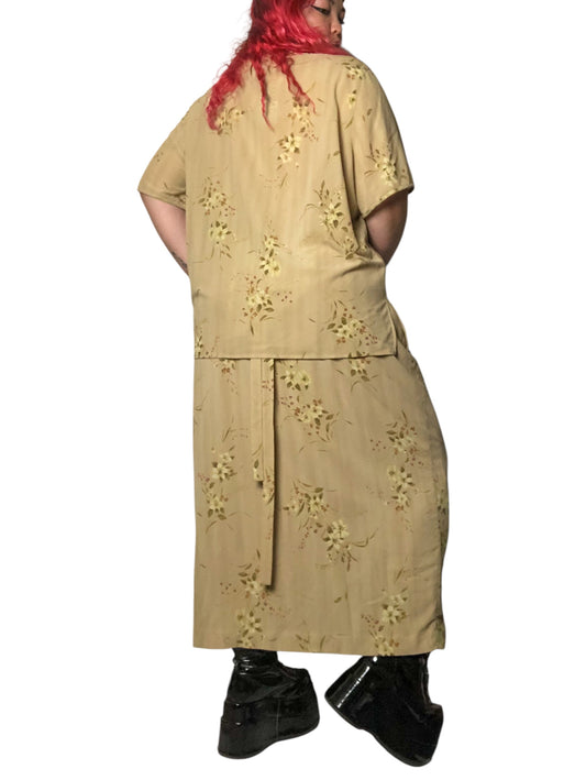 Y2K Rena Rowan Khaki Floral Print 2-Piece Set (3X)