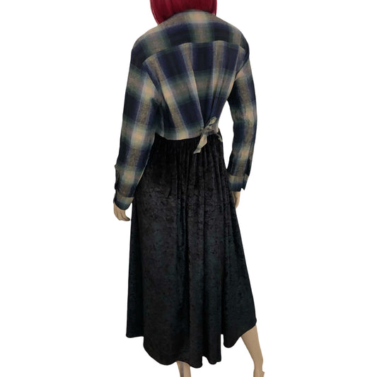 80’s John Roberts Flannel Velvet Mix Maxi Shirt Dress (M/L)