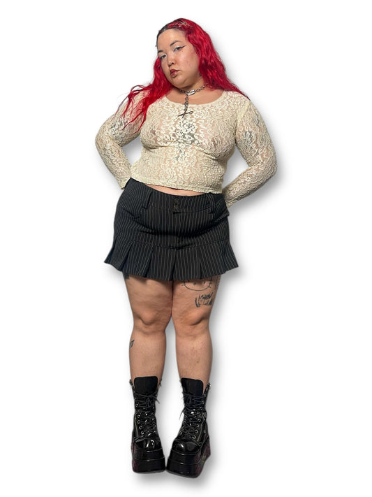 90’s Cream Floral Lace Long Sleeve Shirt (XL/1X/2X)
