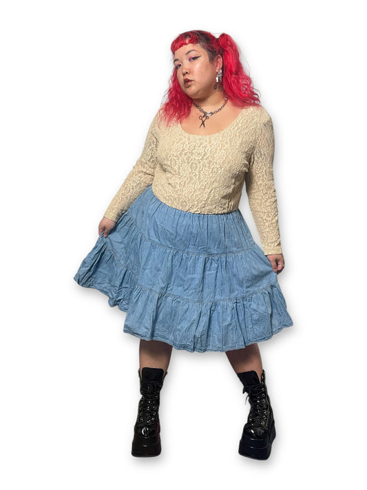 80’s/90’s Prairie Lace Denim Tiered Dress (3X)