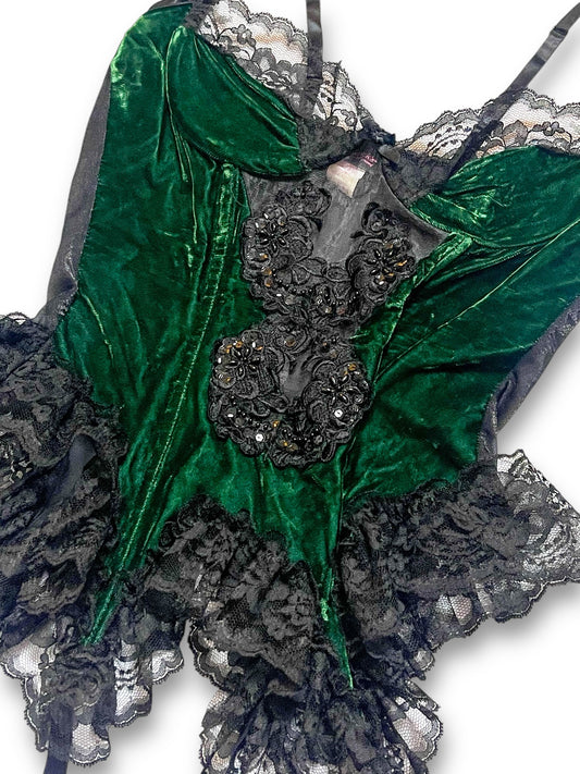 90’s Frederick’s of Hollywood Dark Green Velvet Basque Corset Top (M)