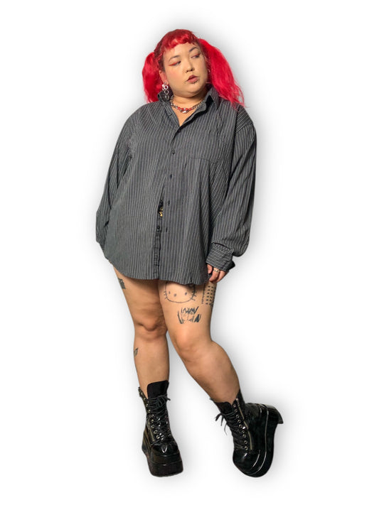 Y2K/Modern Van Heusen Gray Striped Button Down Shirt (2X/3X)