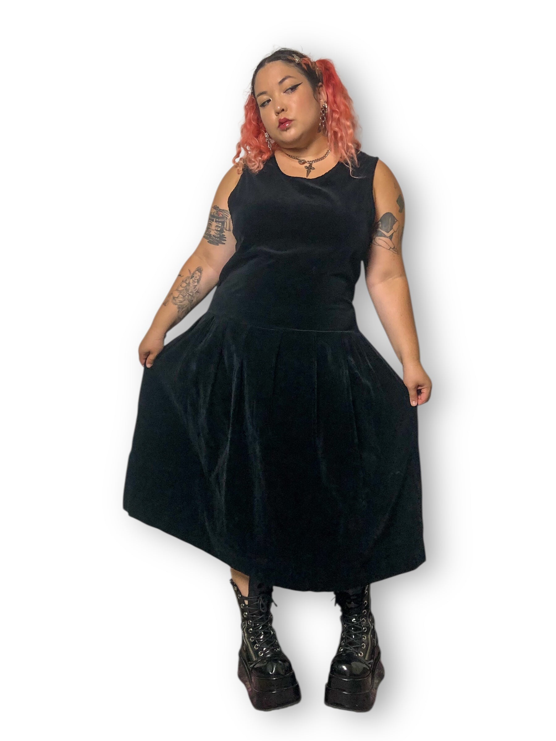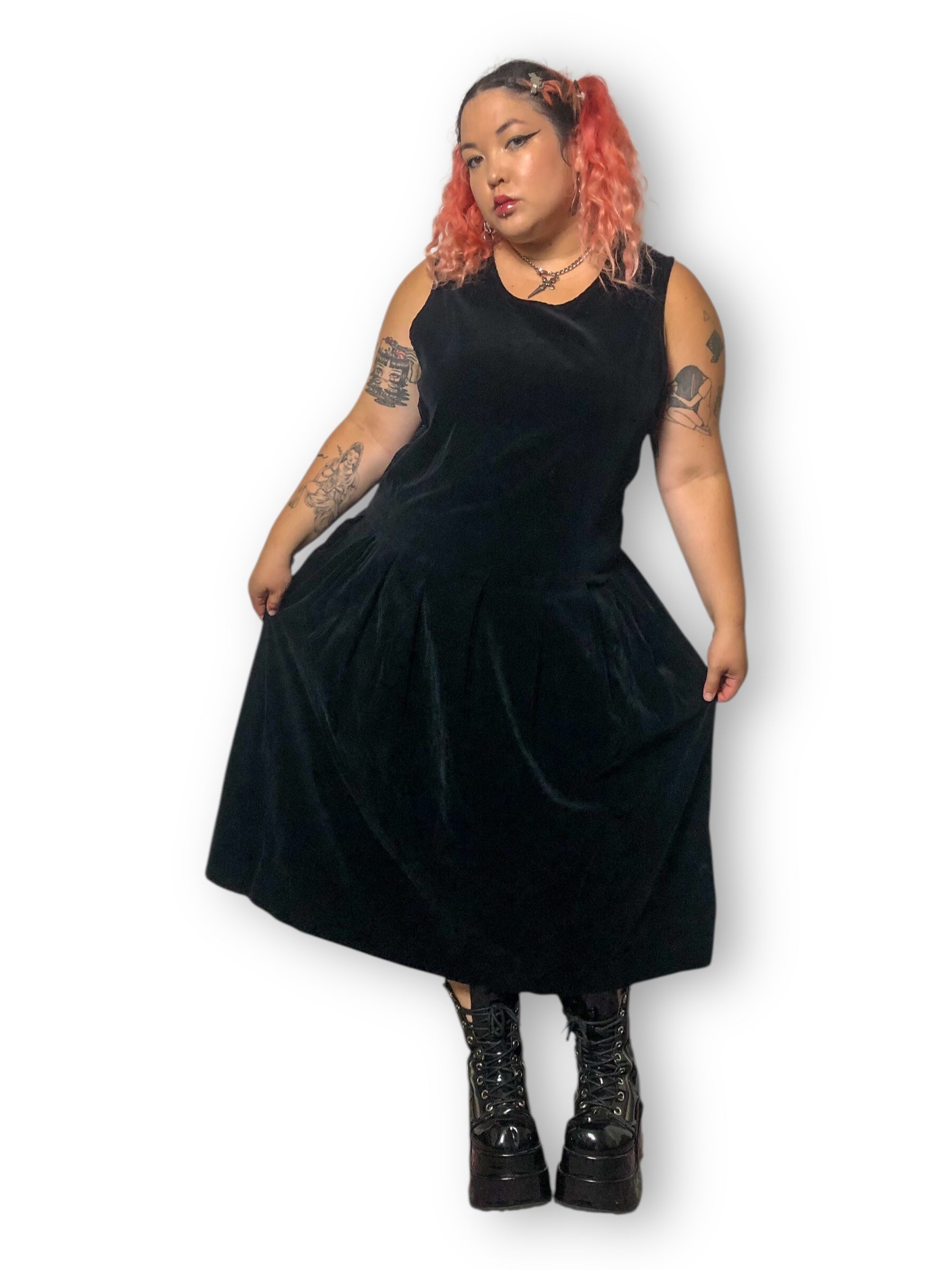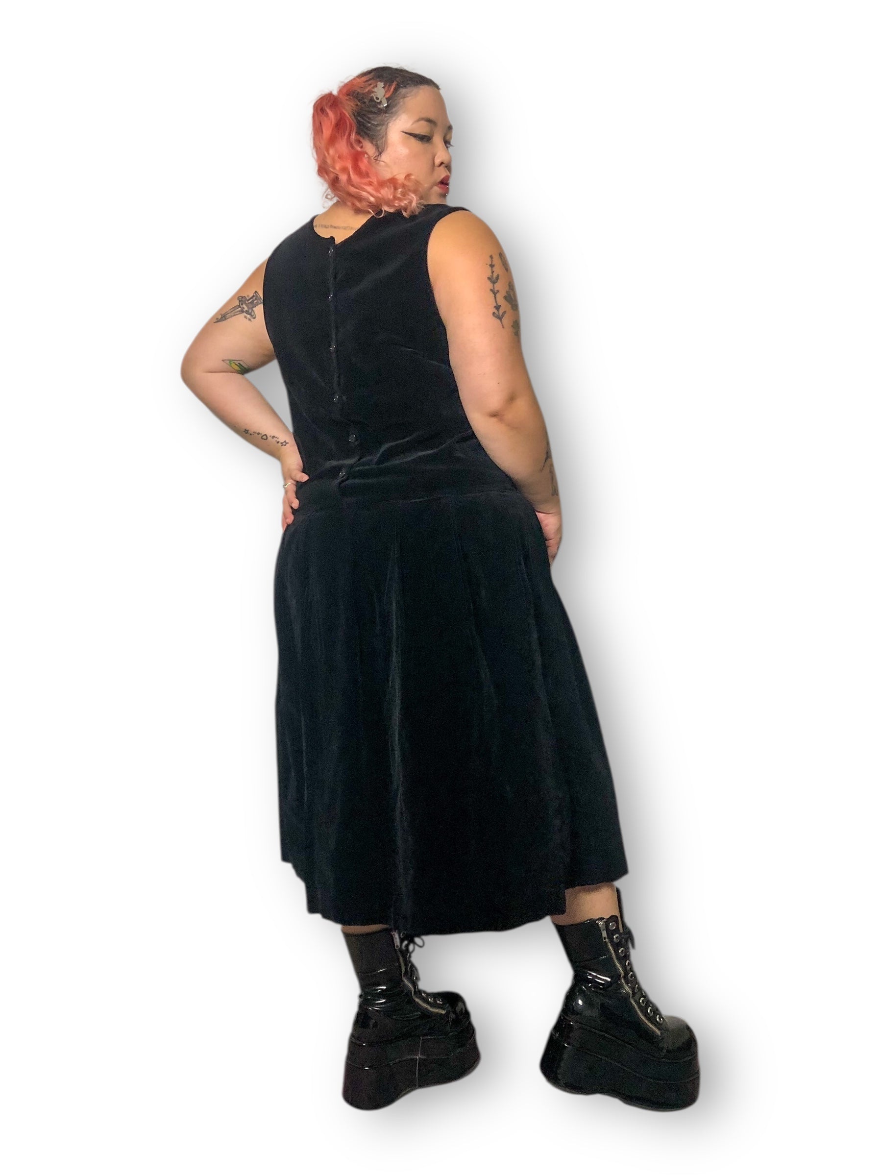 60’s/70’s Bechamel Black Velvet Midi Dress (XL)