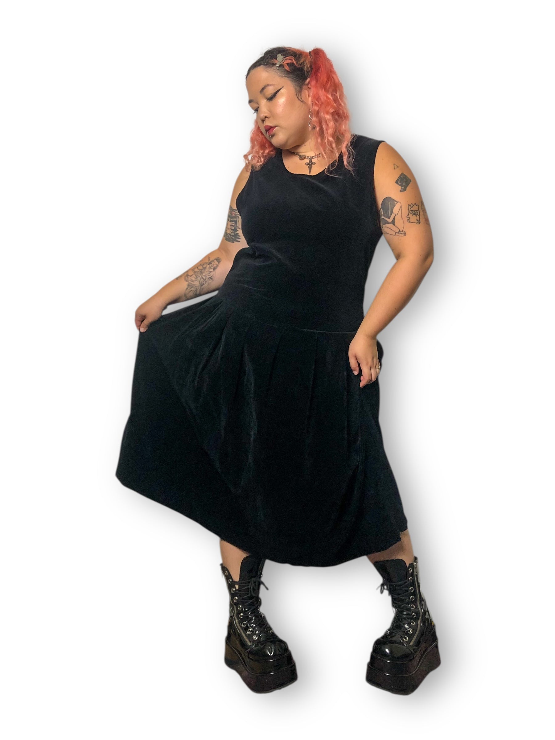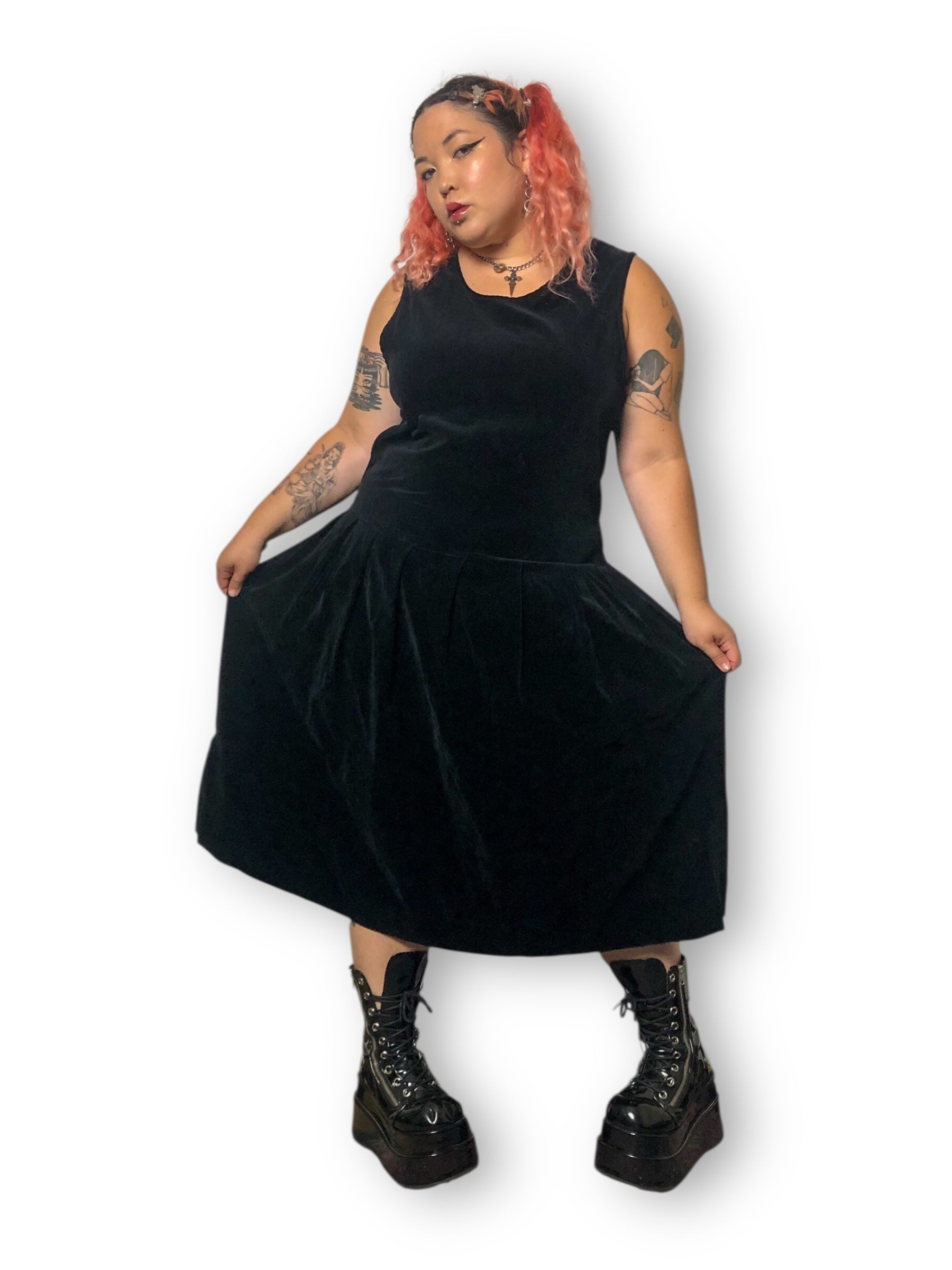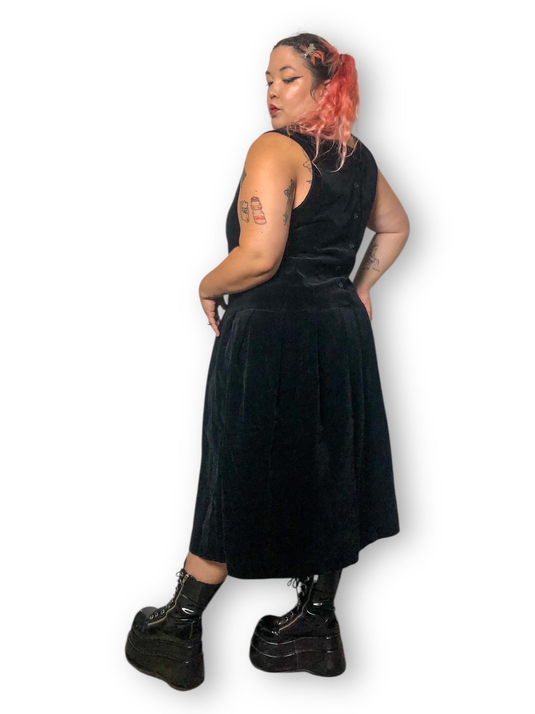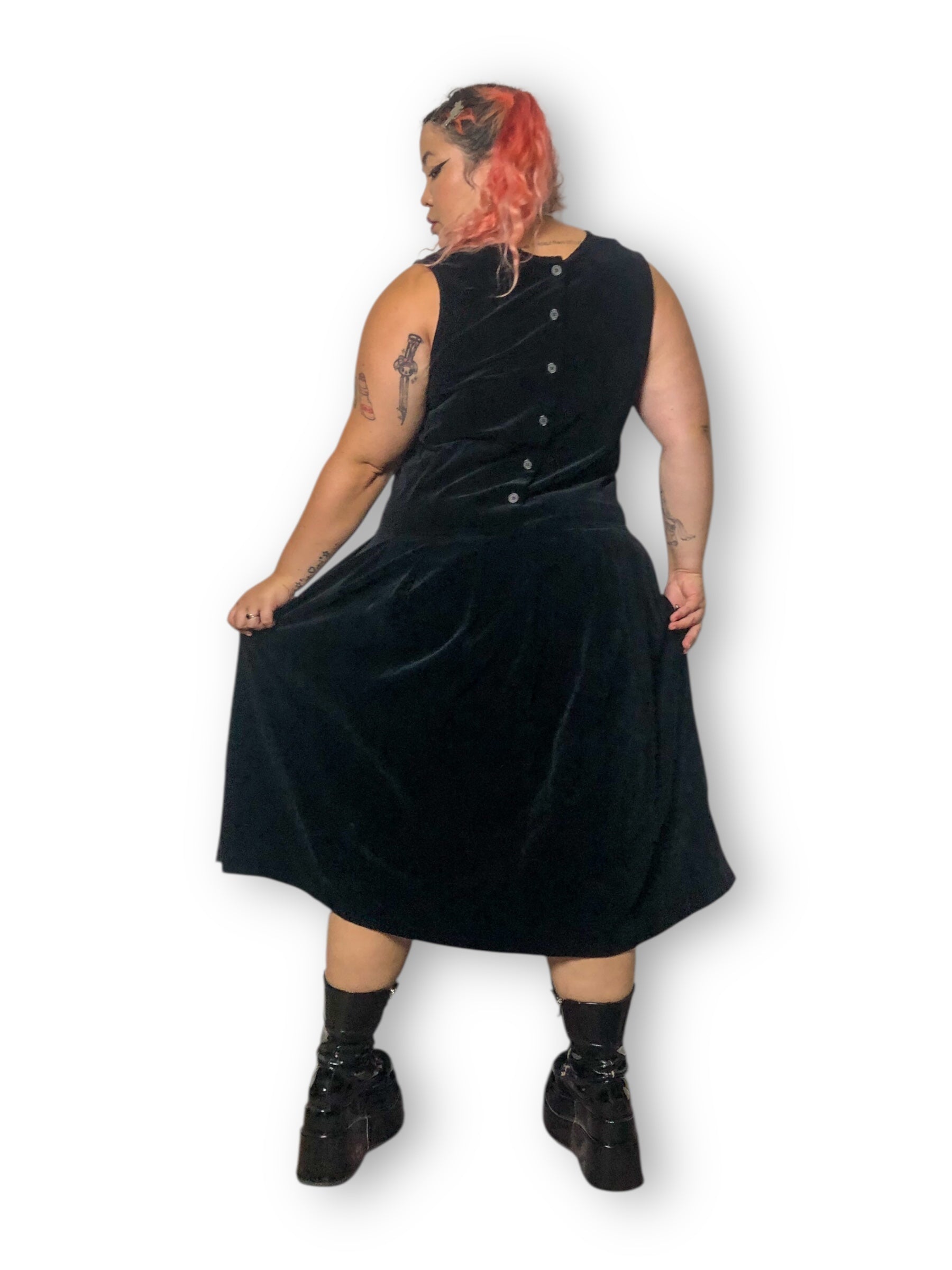 60’s/70’s Bechamel Black Velvet Midi Dress (XL)