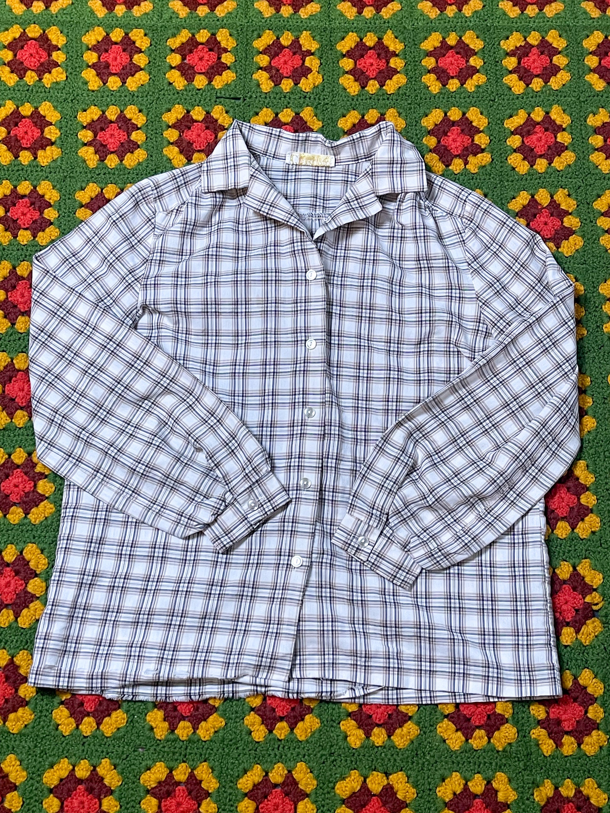 60’s/70’s Collegian of California Brown and White Plaid Blouse (M)