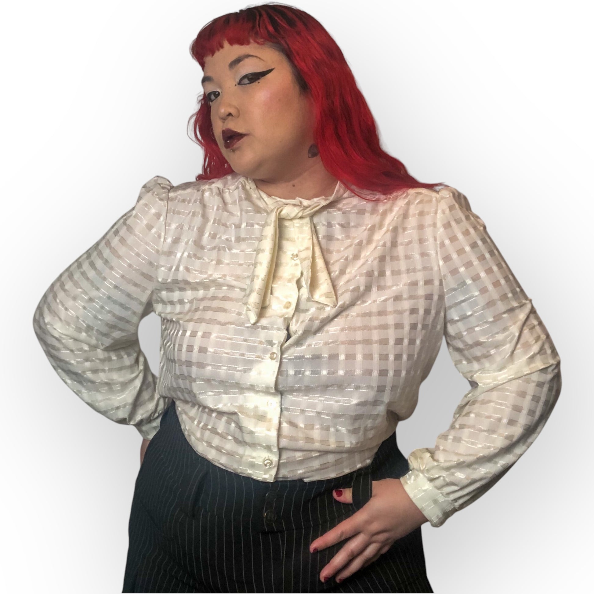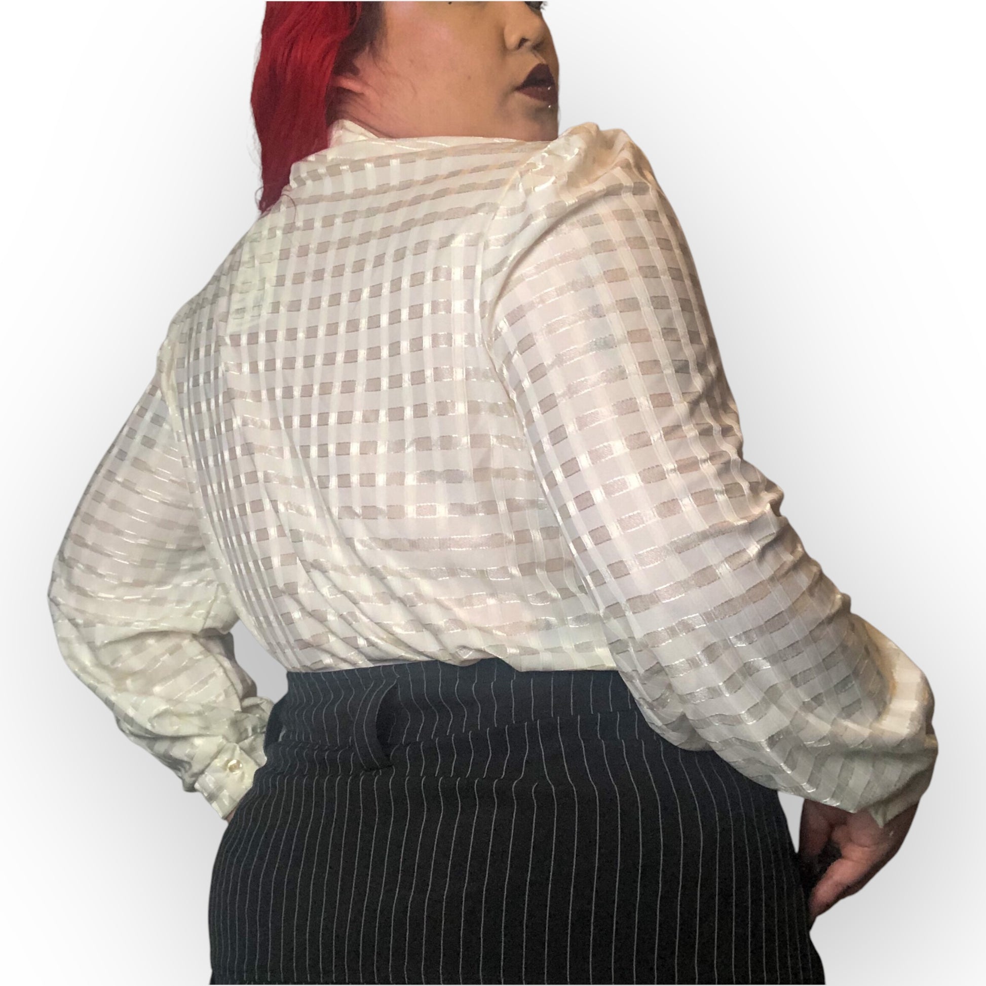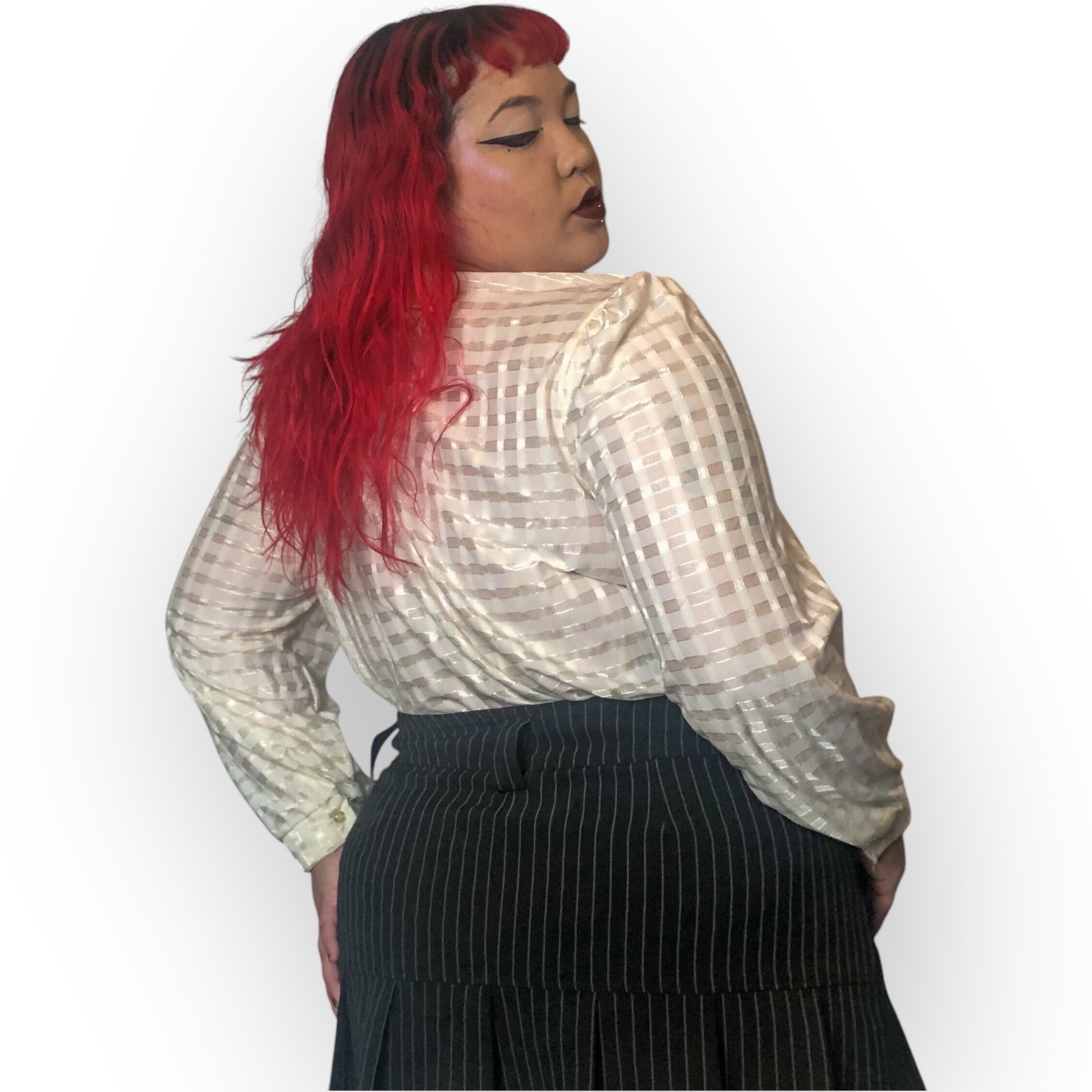 60’s/70’s Lady Queen Shiny White Gingham Blouse (L/XL)