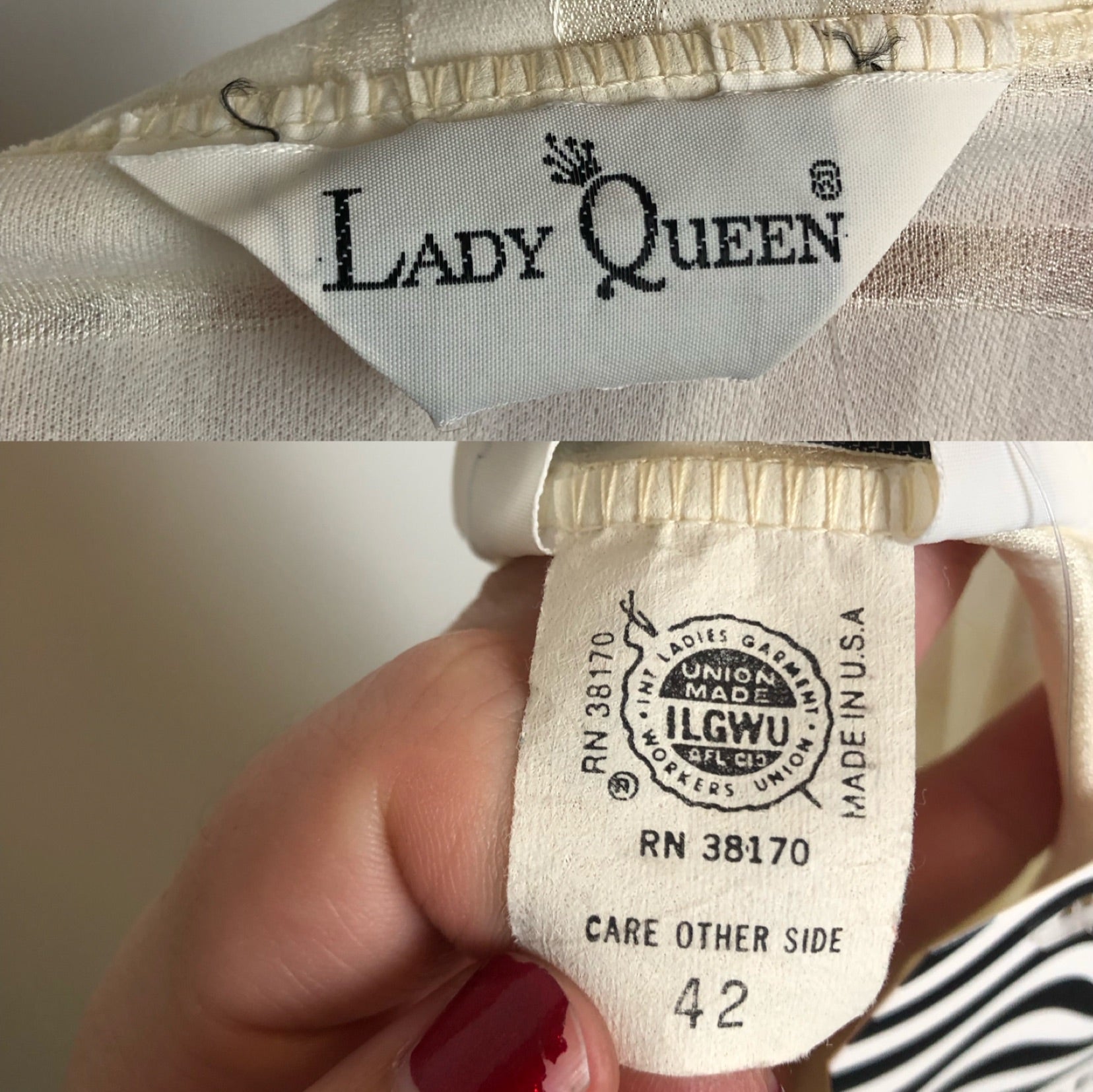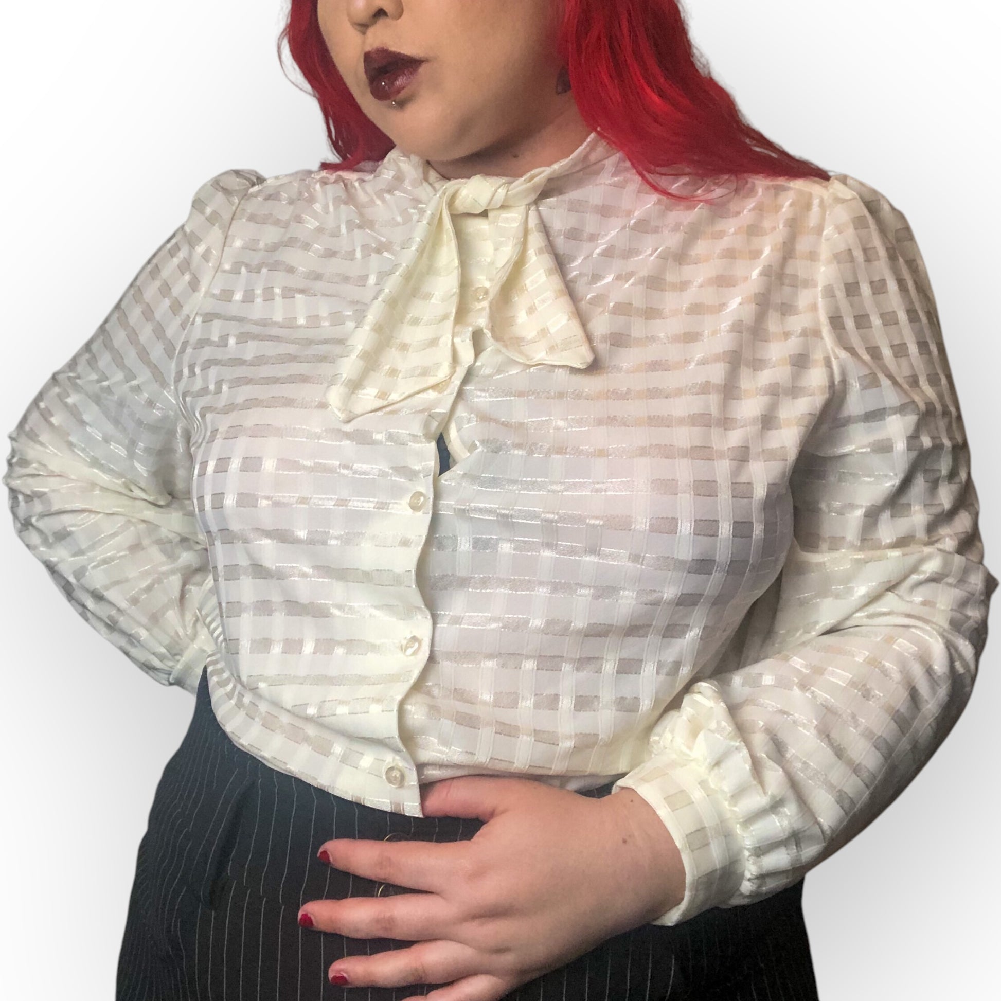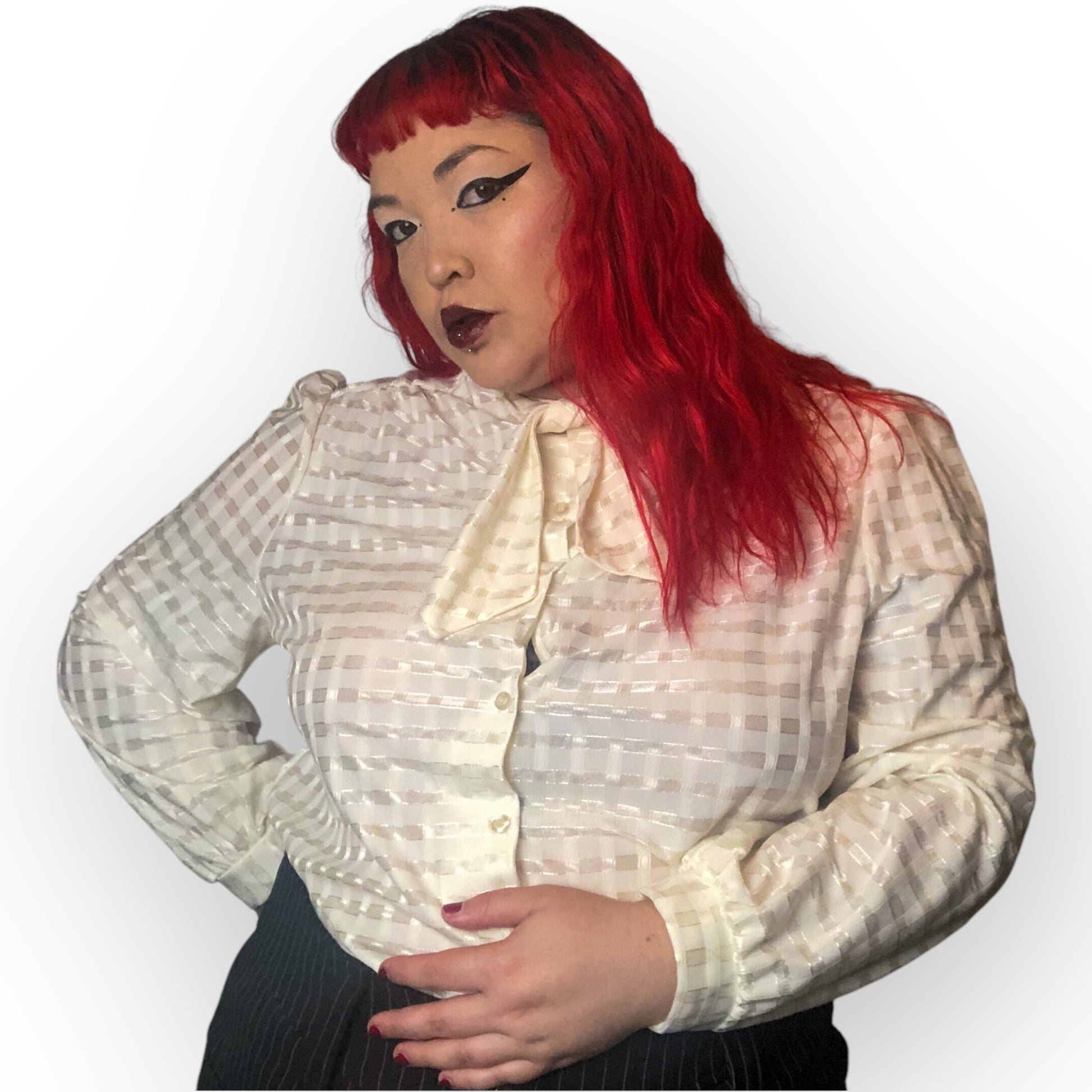 60’s/70’s Lady Queen Shiny White Gingham Blouse (L/XL)