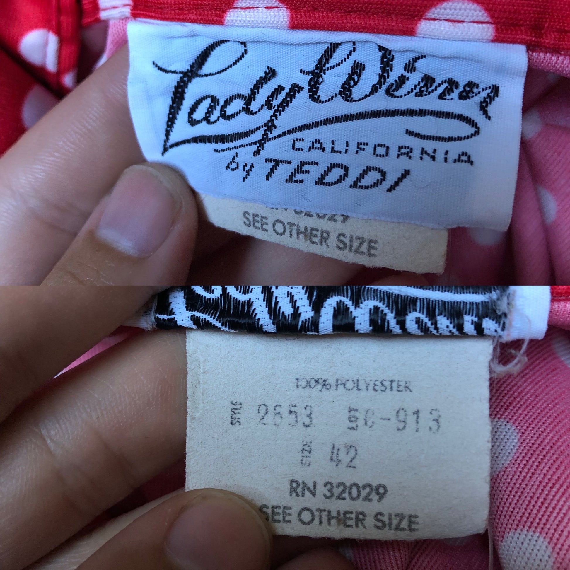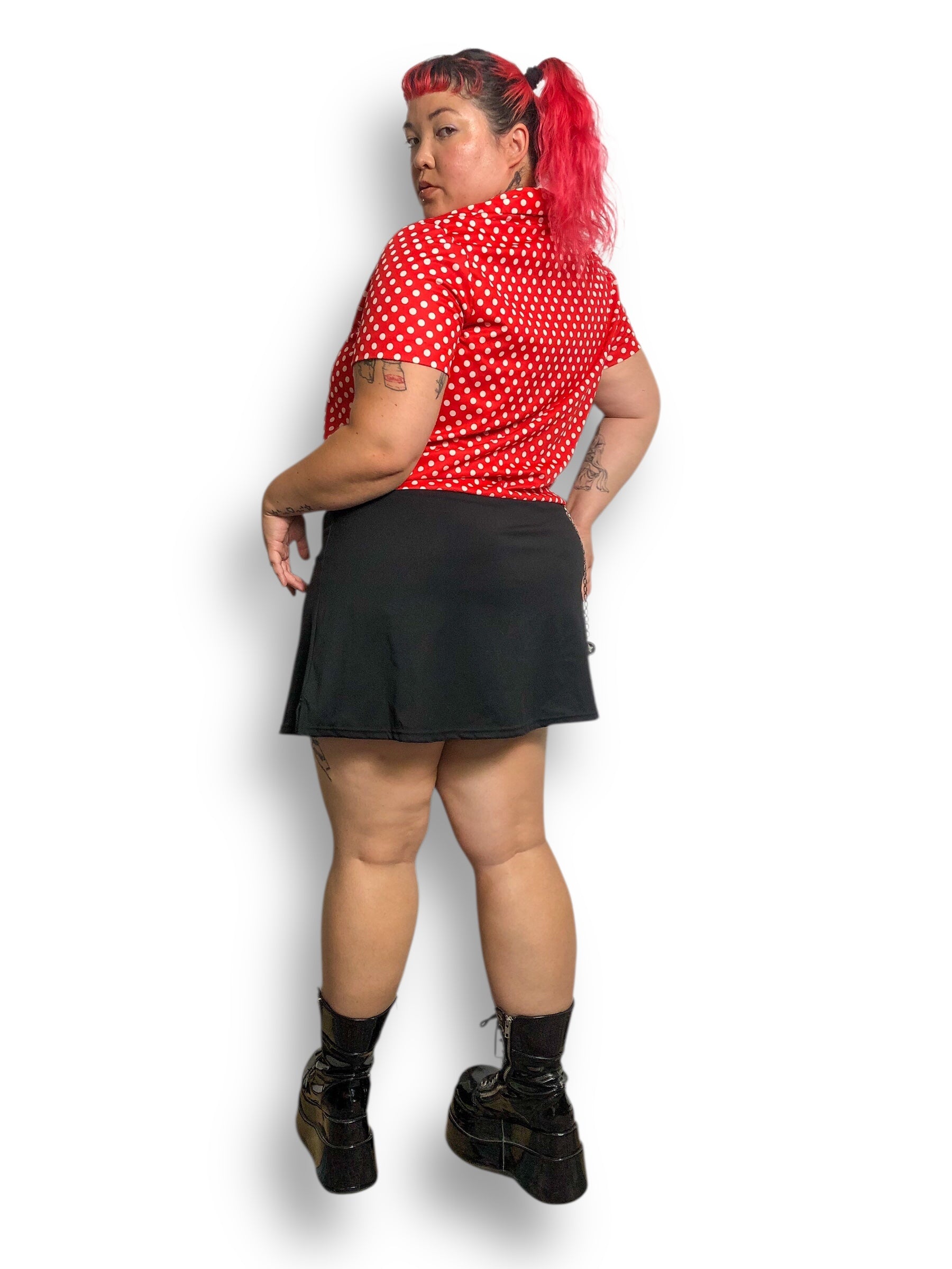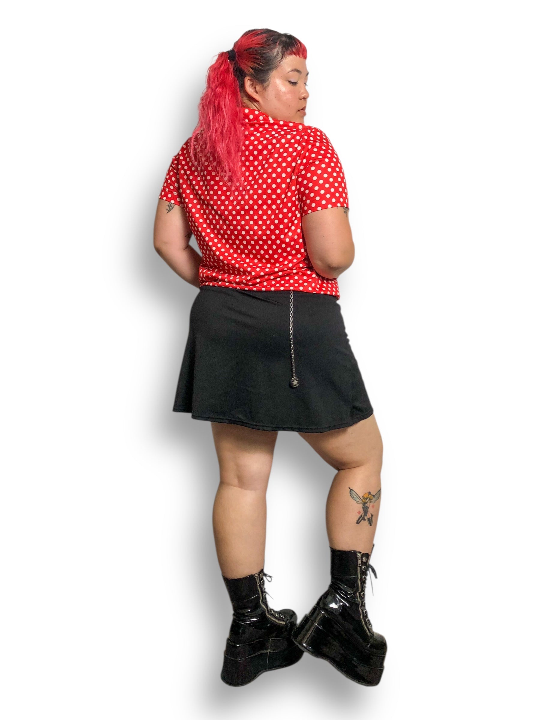 retro Minnie Mouse vibes <3 adjustable drawstring waist tie, large pointy collar, some stretch (100% polyester)