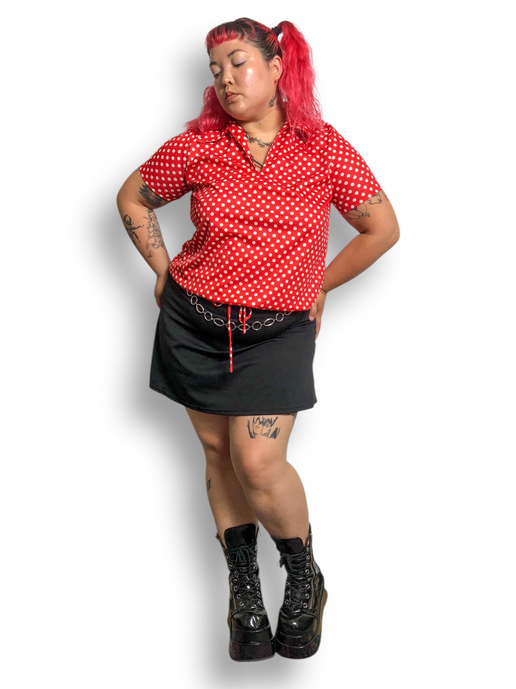 60’s/70’s Lady Winn by Teddi Red and White Polka Dot Blouse (XL/2X)