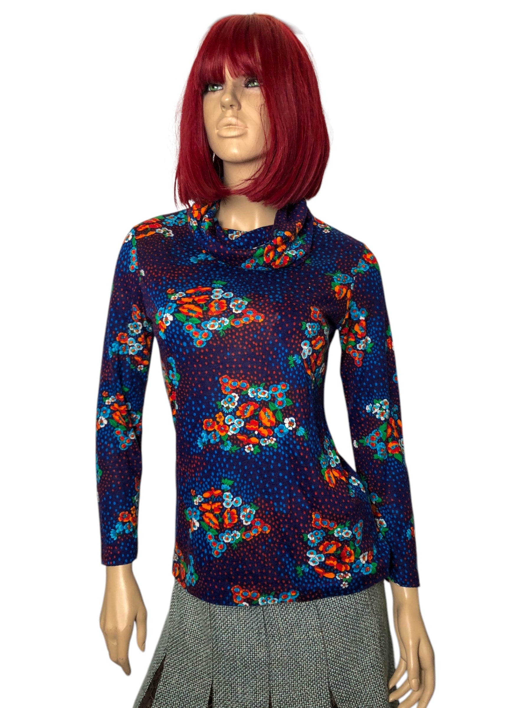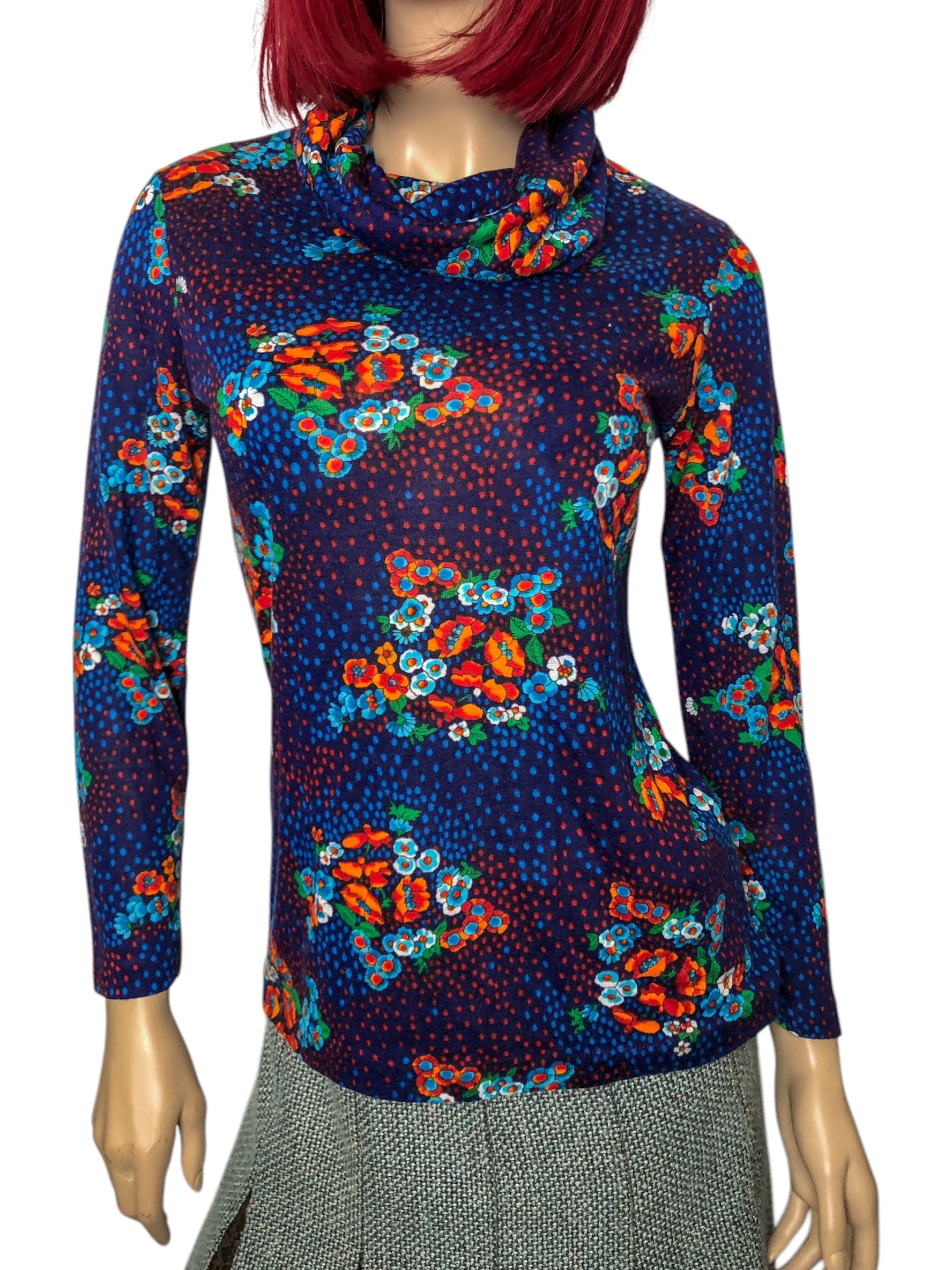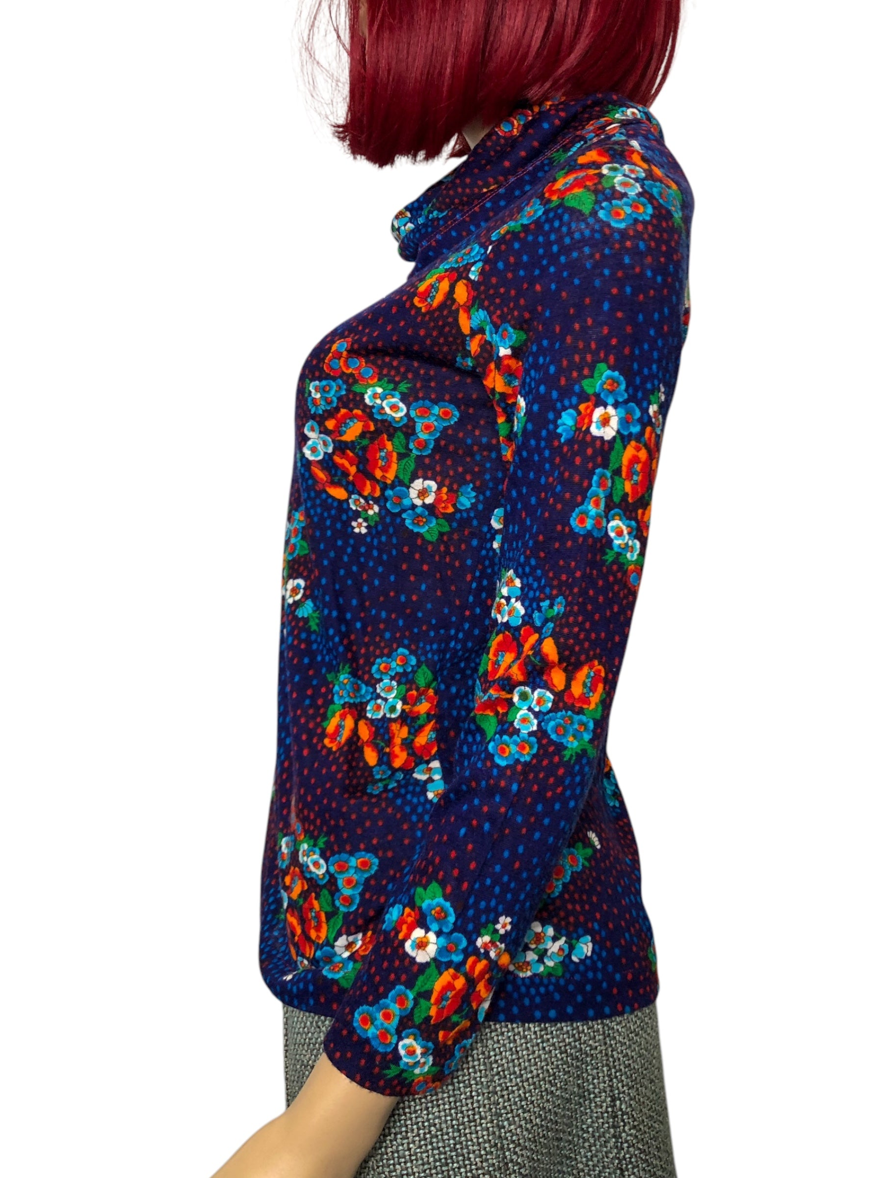 60’s The May Company Blue Floral Retro Turtleneck (S)