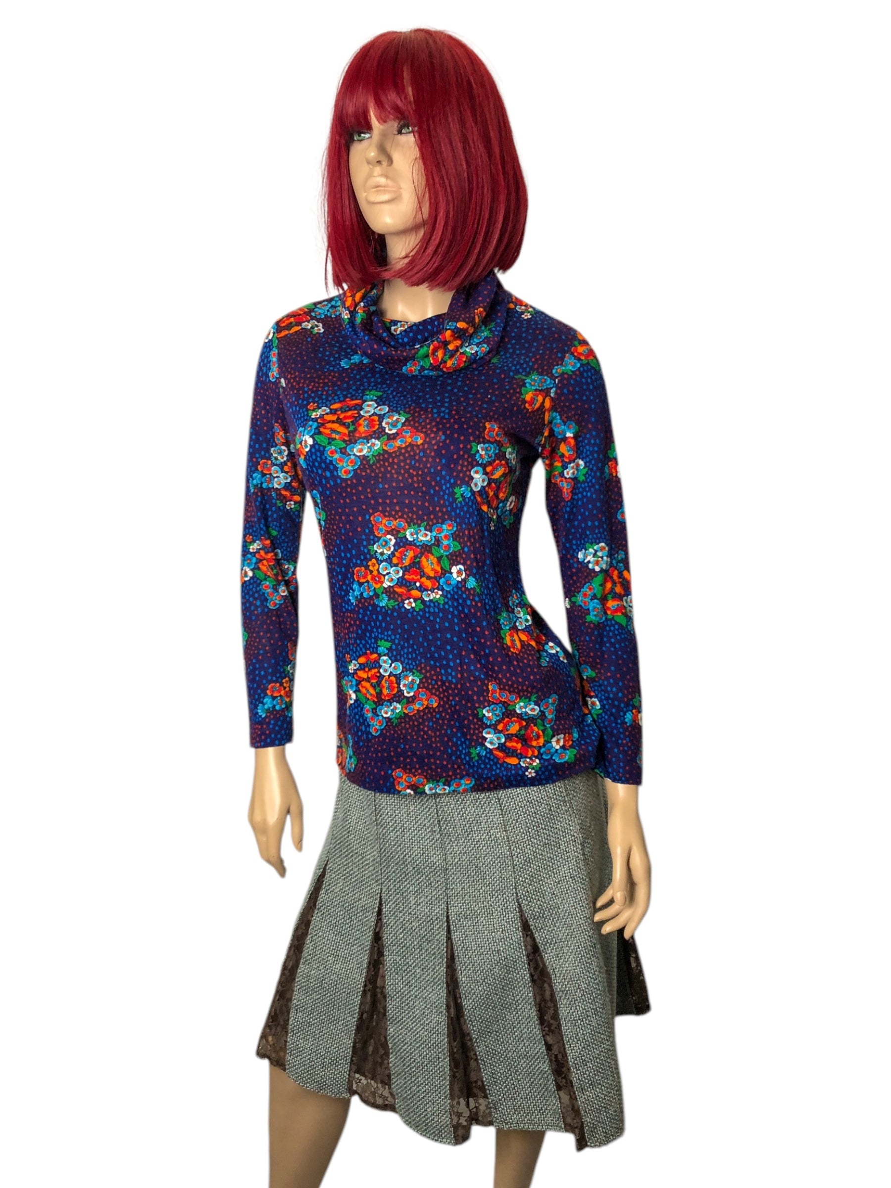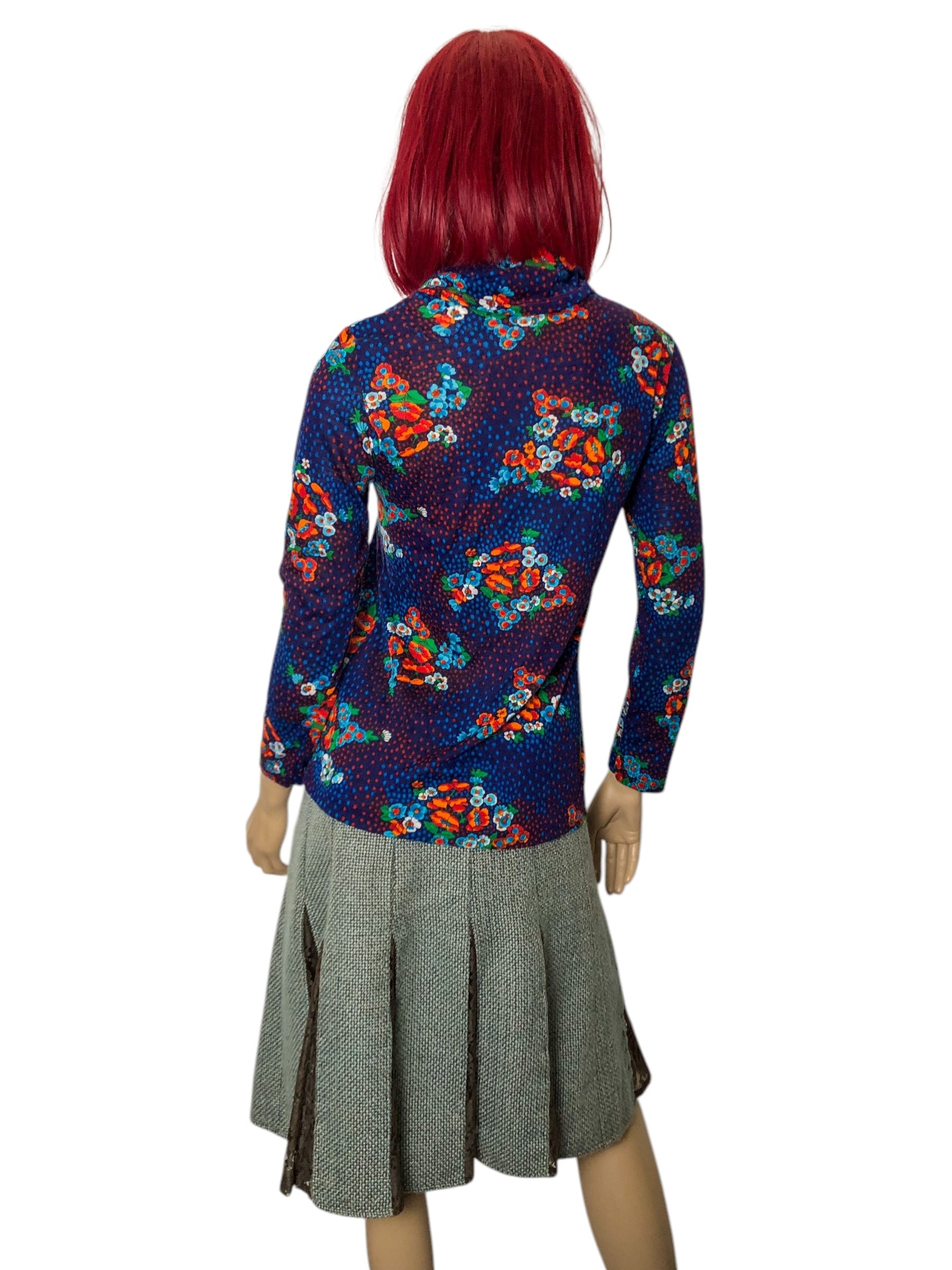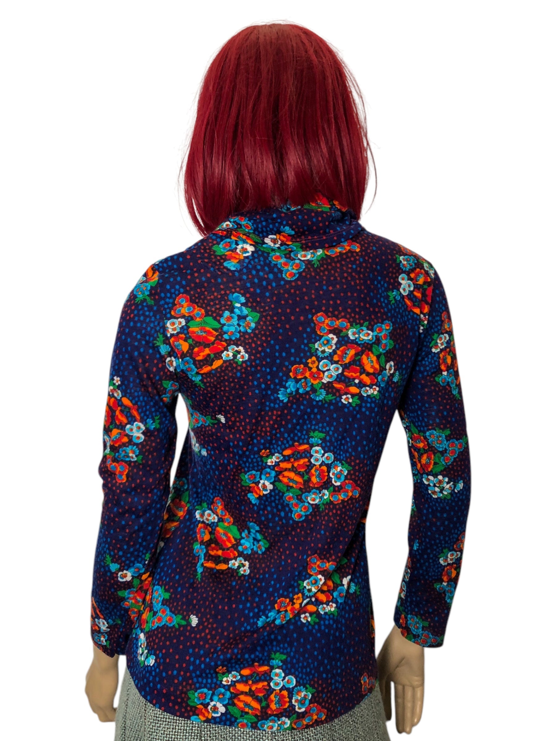 60’s The May Company Blue Floral Retro Turtleneck (S)