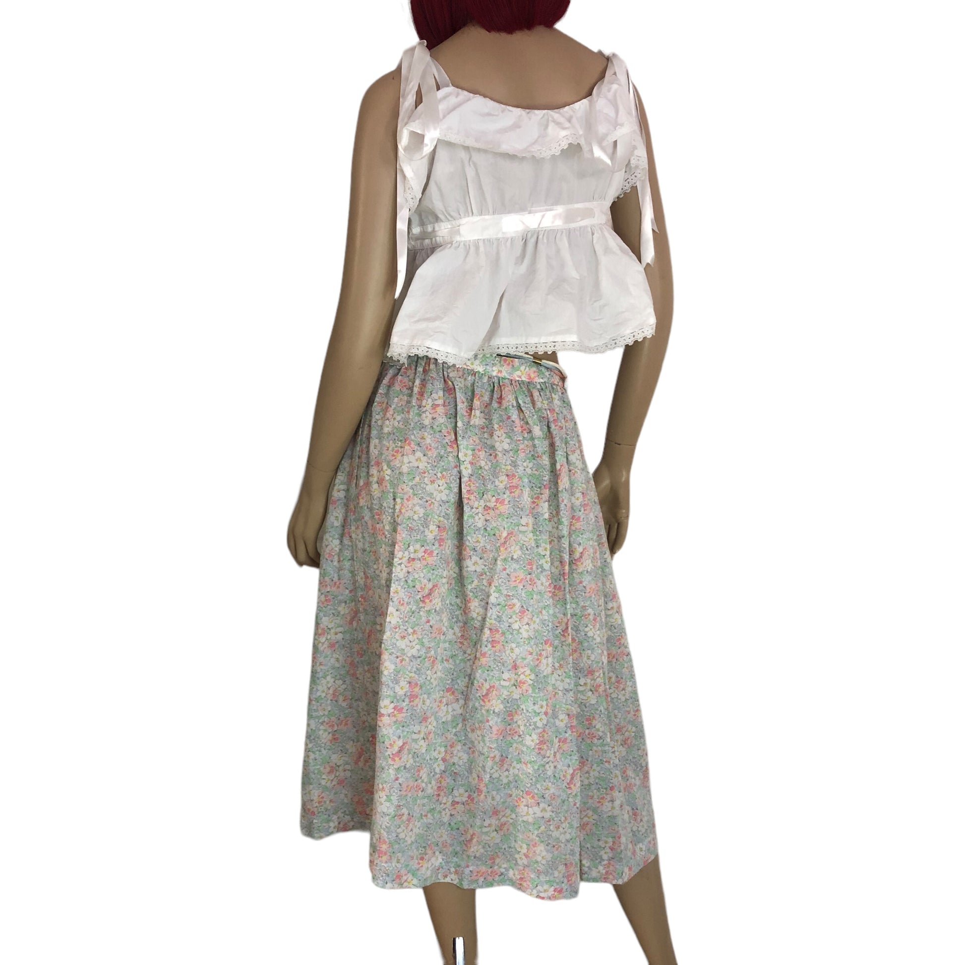 preppy meets cottagecore <3 tri-cord ties around the waist, mini belt loops, button + zipper closure, extremely lightweight, no stretch (feels like poly cotton), made in USA — ILGWU