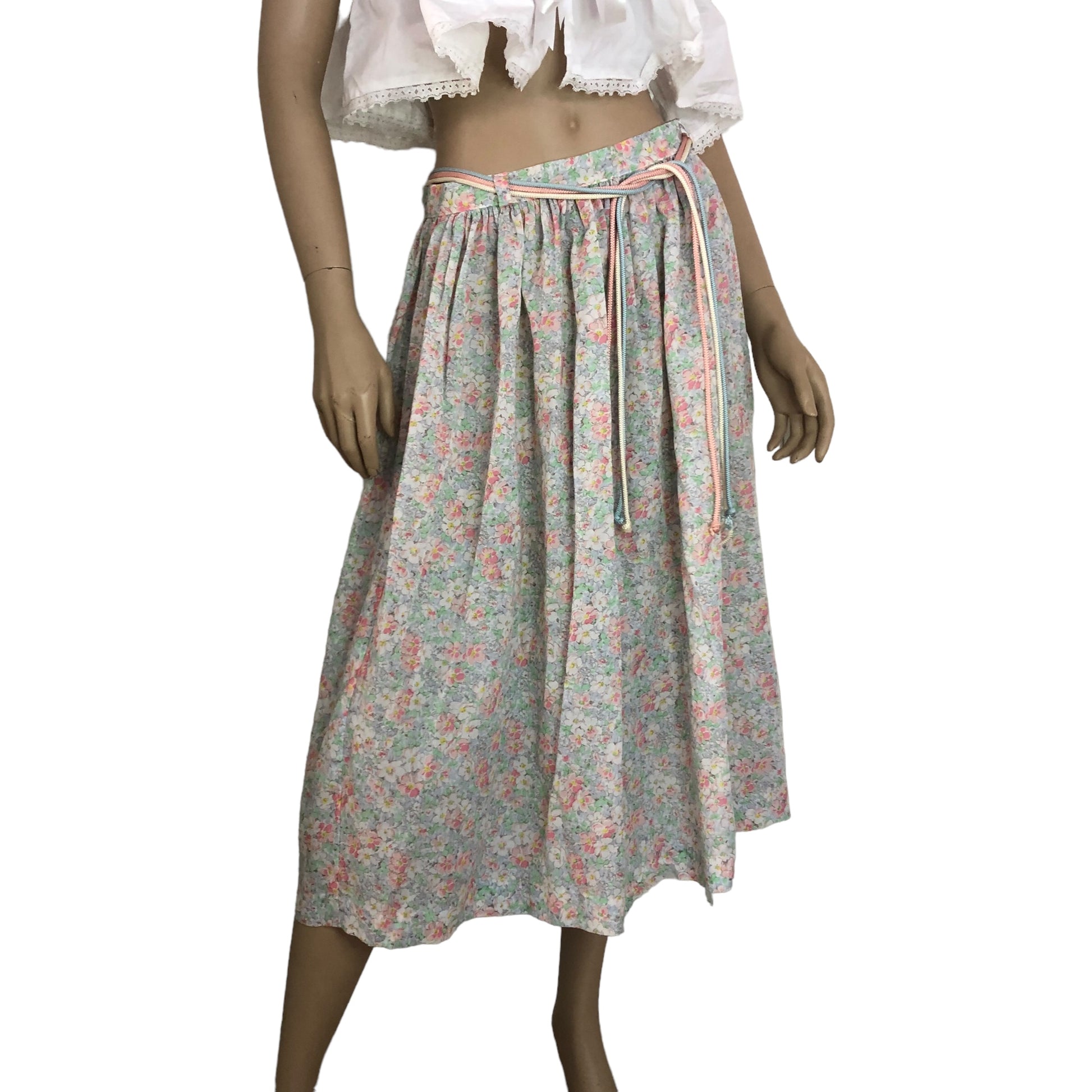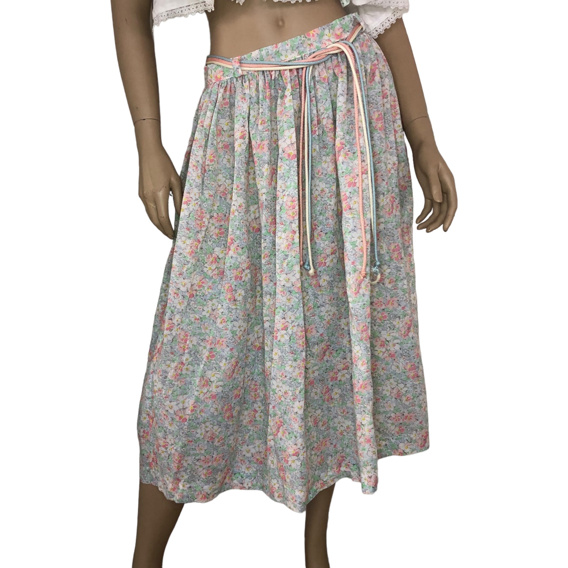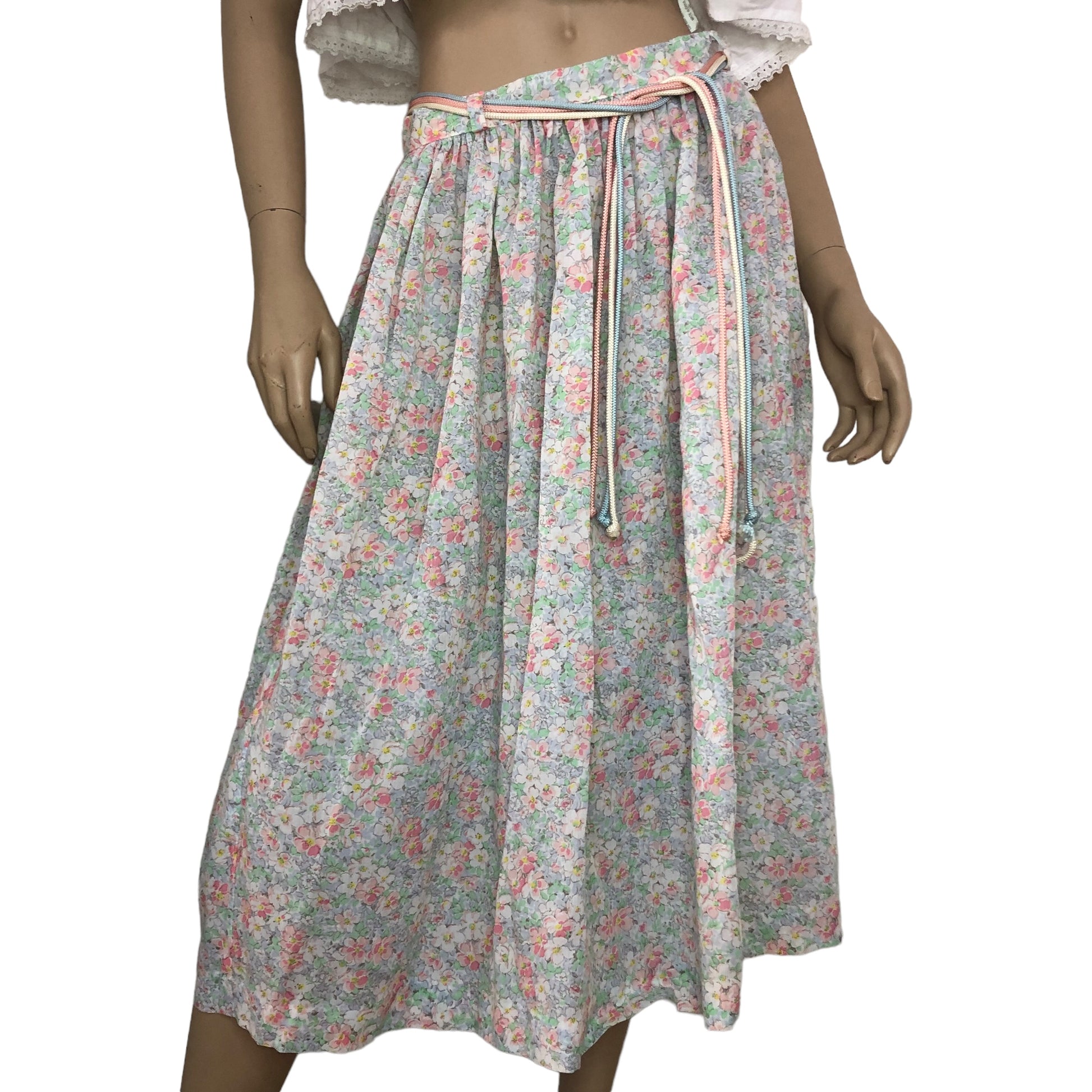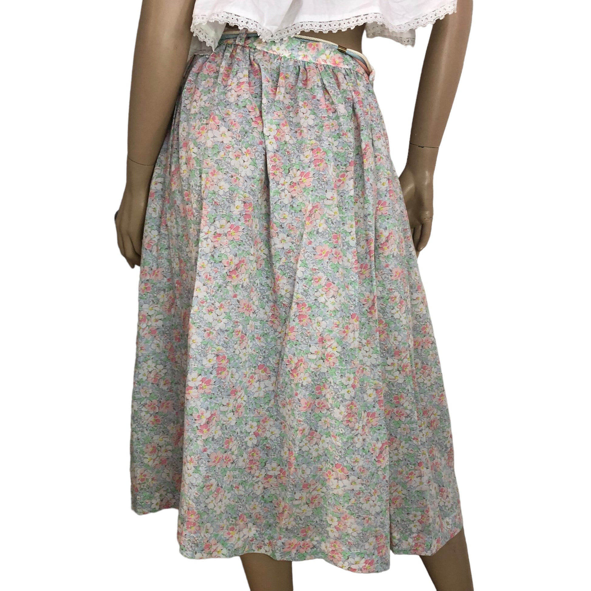 60’s Summit of Boston Light Blue Floral Print A-Line Skirt (M/L)