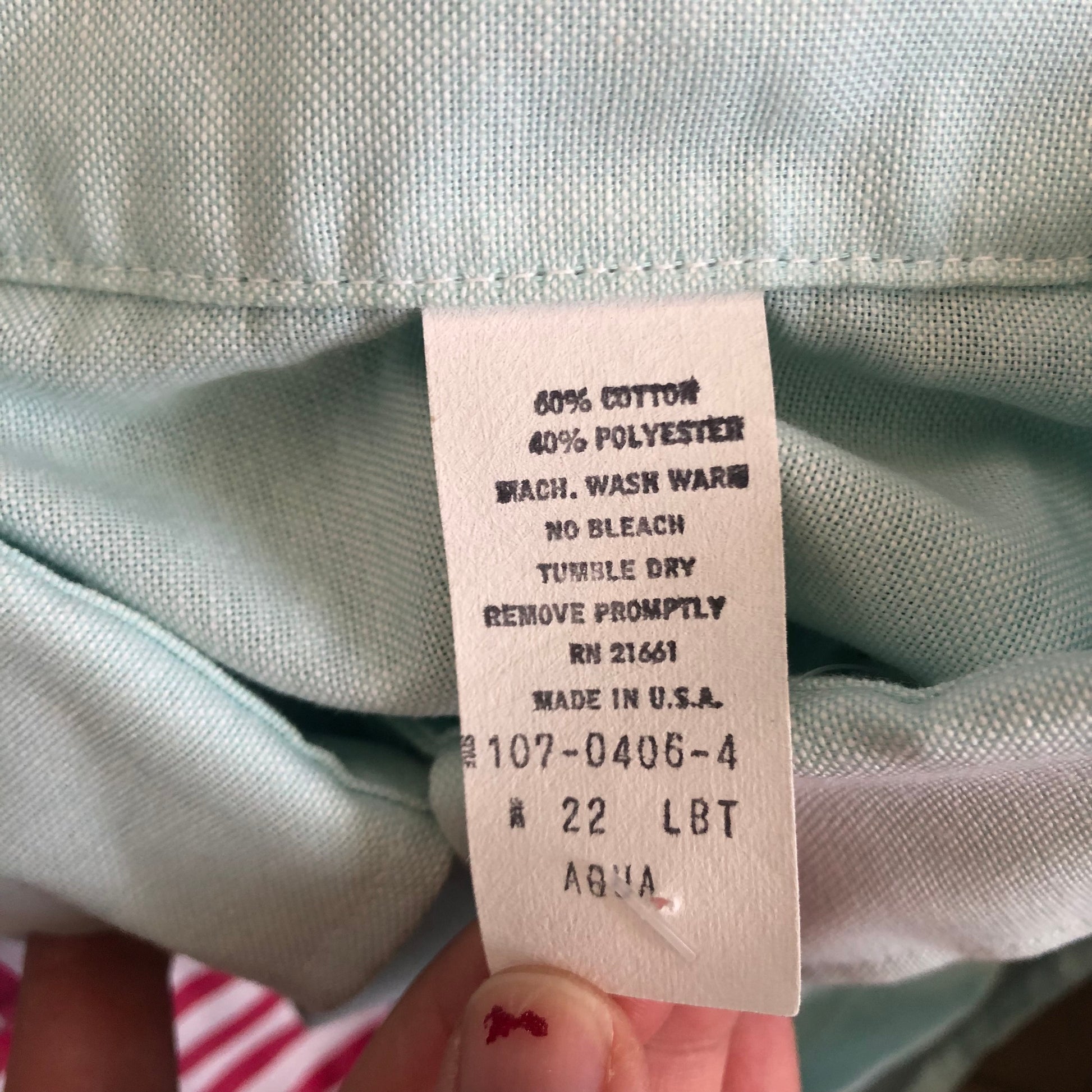 simple retro piece! shirt pocket, buttons at the cuffs, no stretch (60% cotton 40% polyester), made in USA — small burn mark/hole on the front
