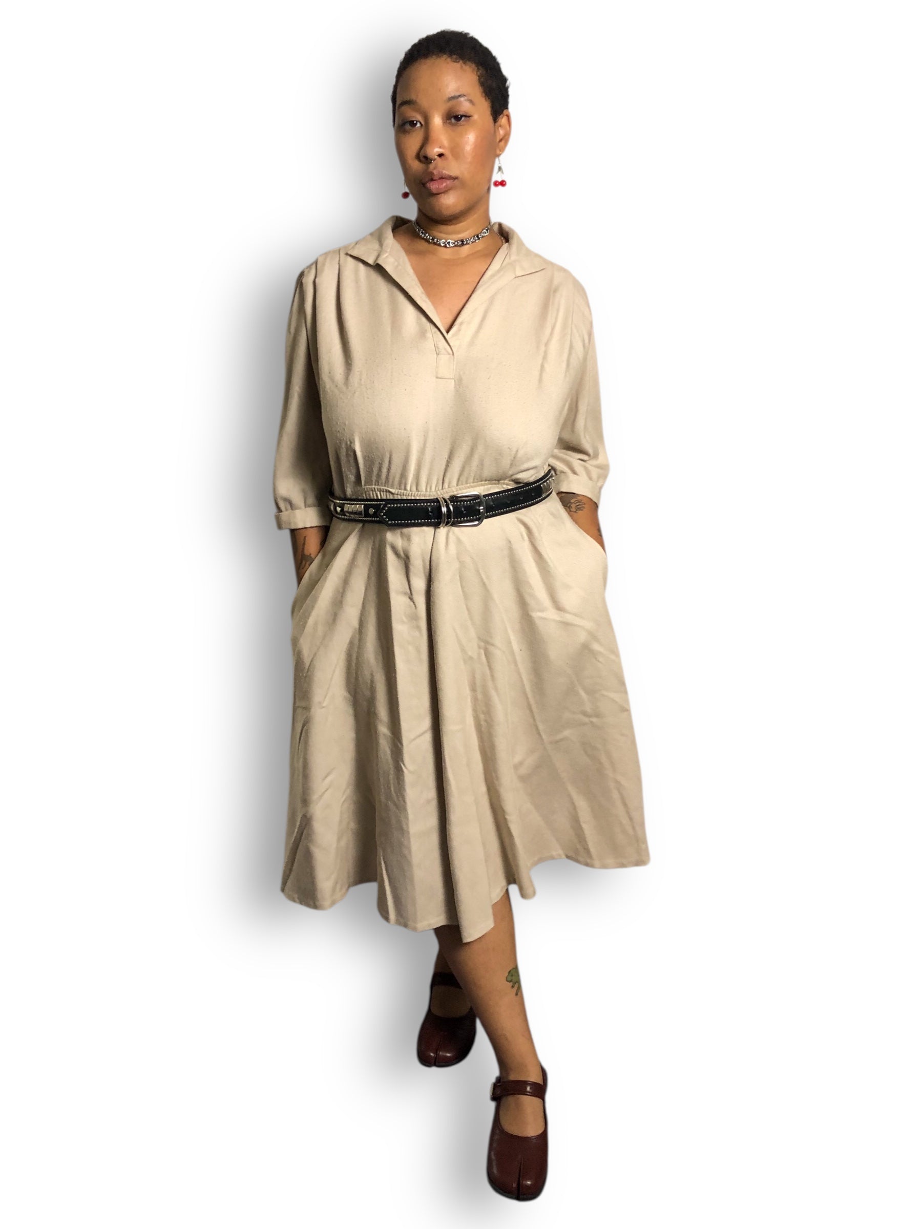 70’s/80’s Ilse M. Khaki Shirt Dress (2X)