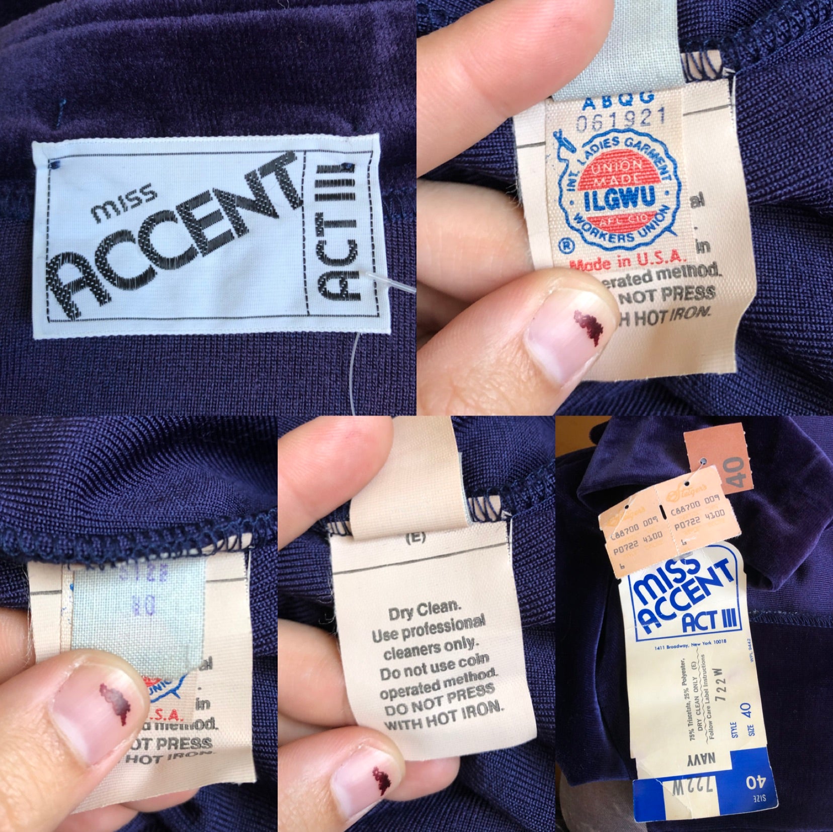 70’s/80’s Miss Accent by Act III Navy Blue Velvet Blazer (L/XL)