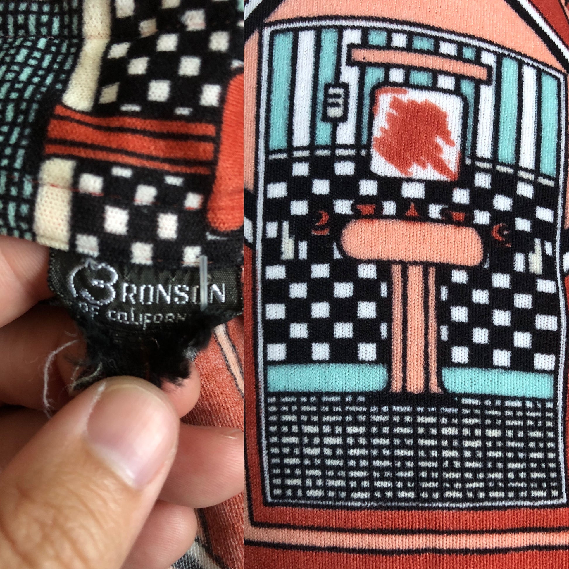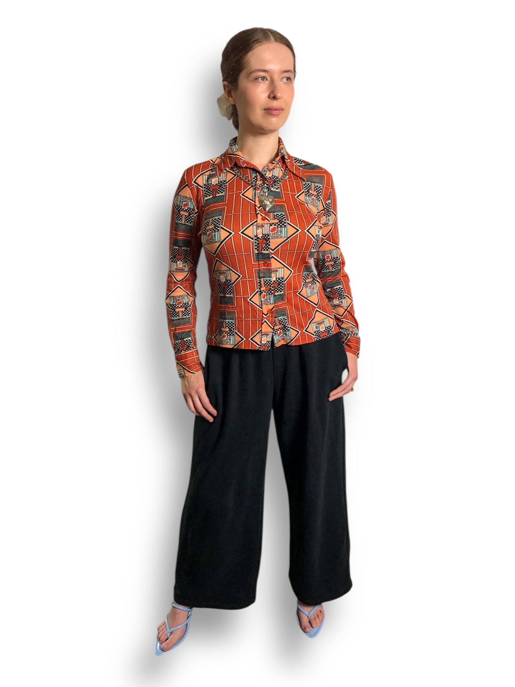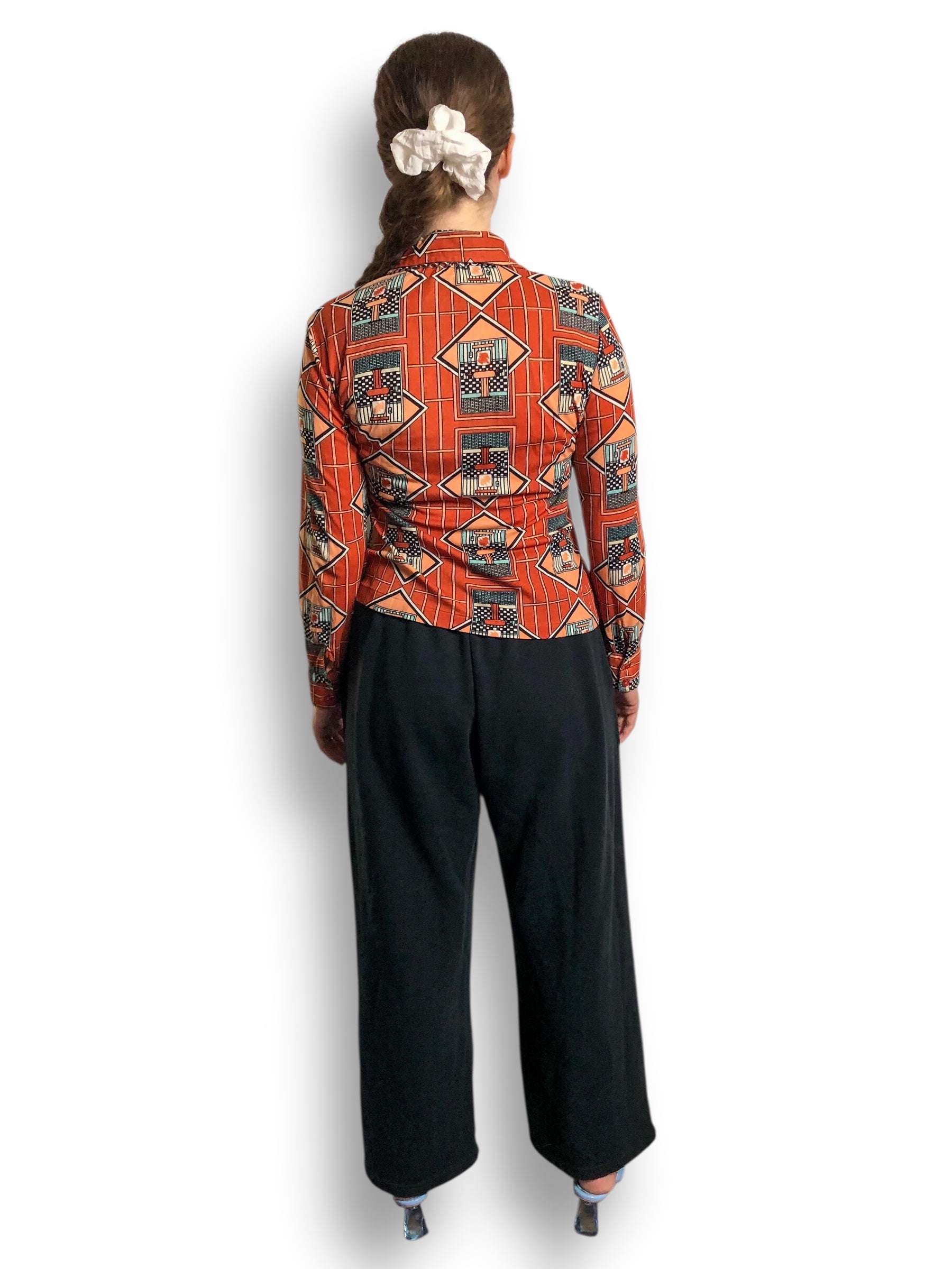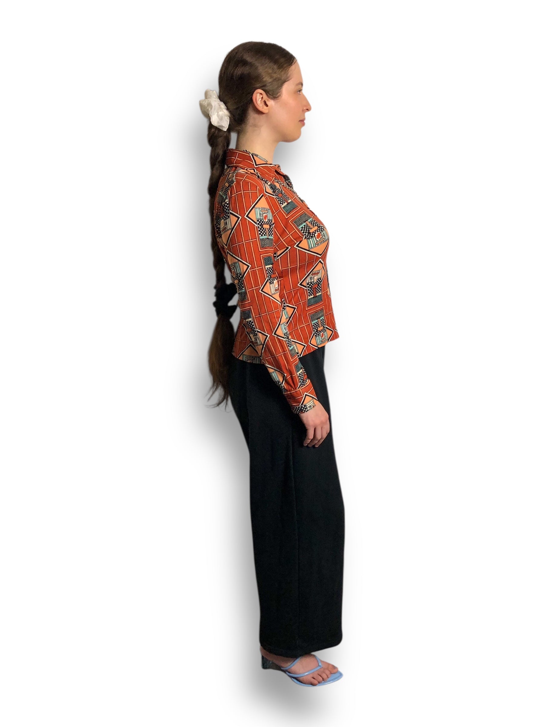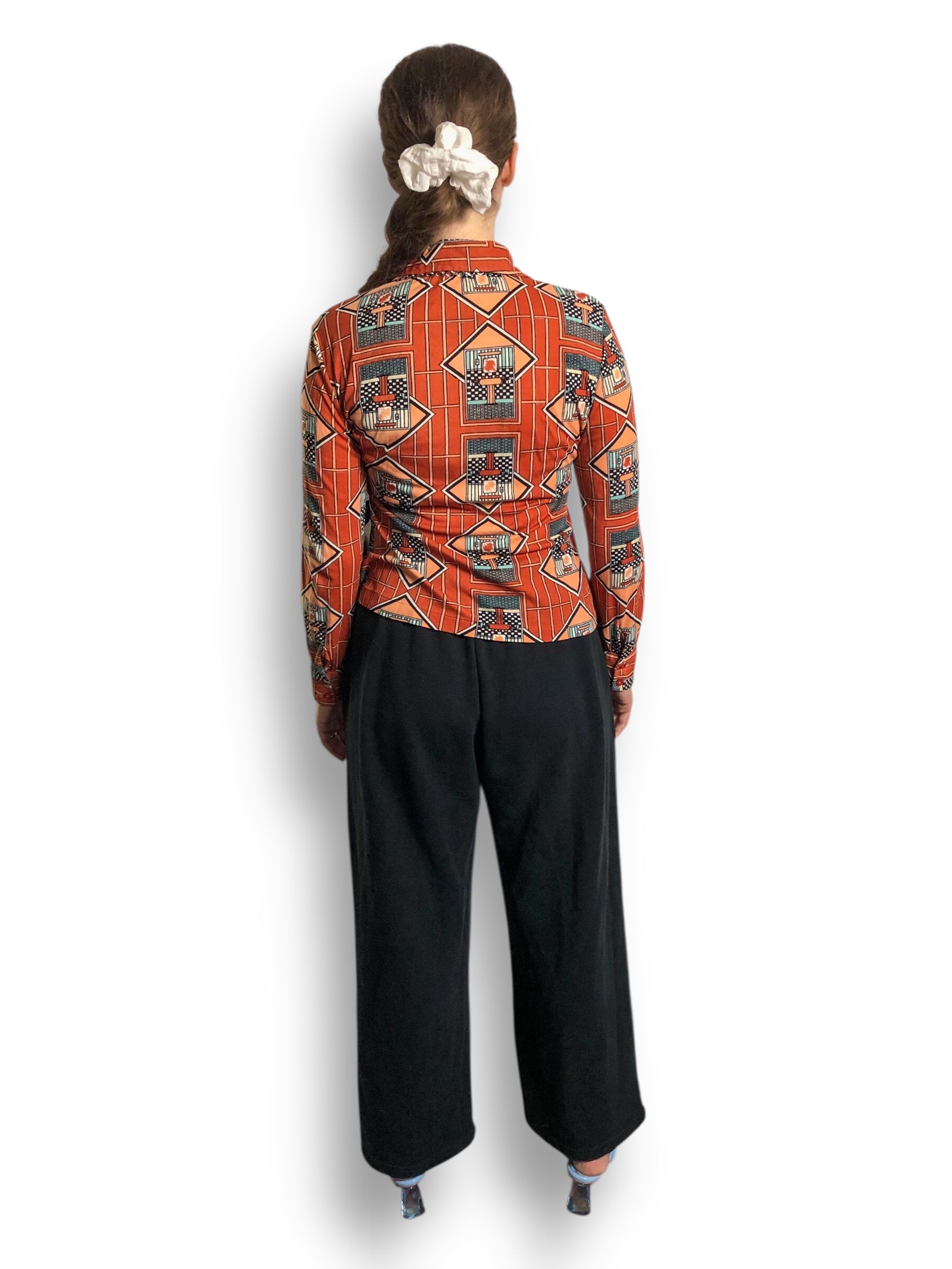 70’s Bronson of California Orange Deco Print Blouse (S/M)