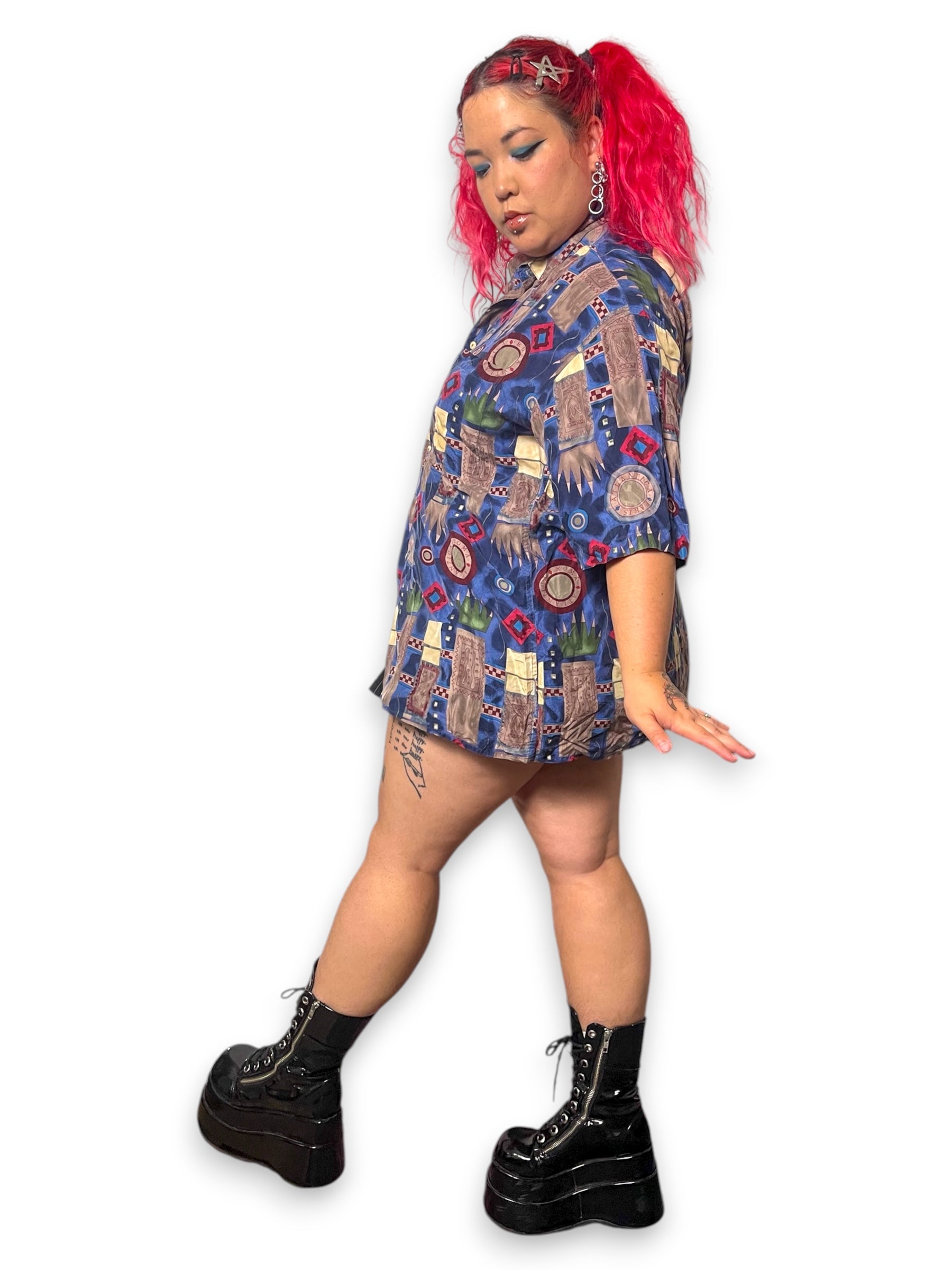 70’s Burma Bibas Blue Graphic Print Shirt (XL/2X)