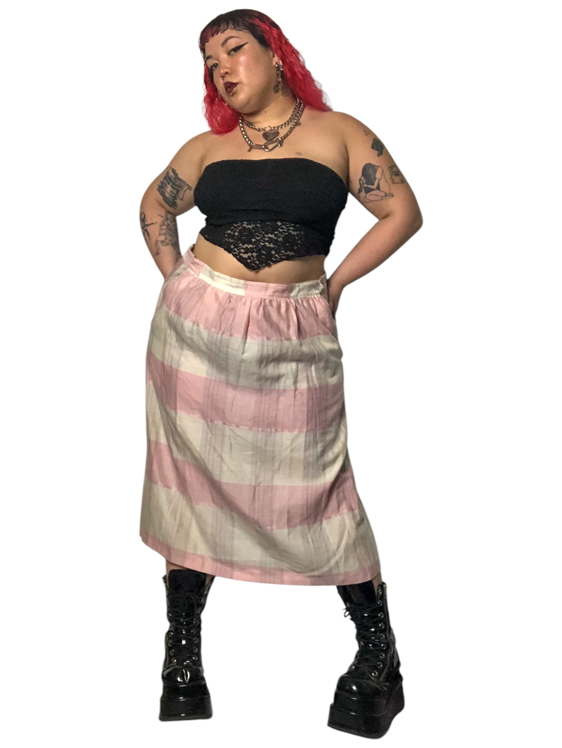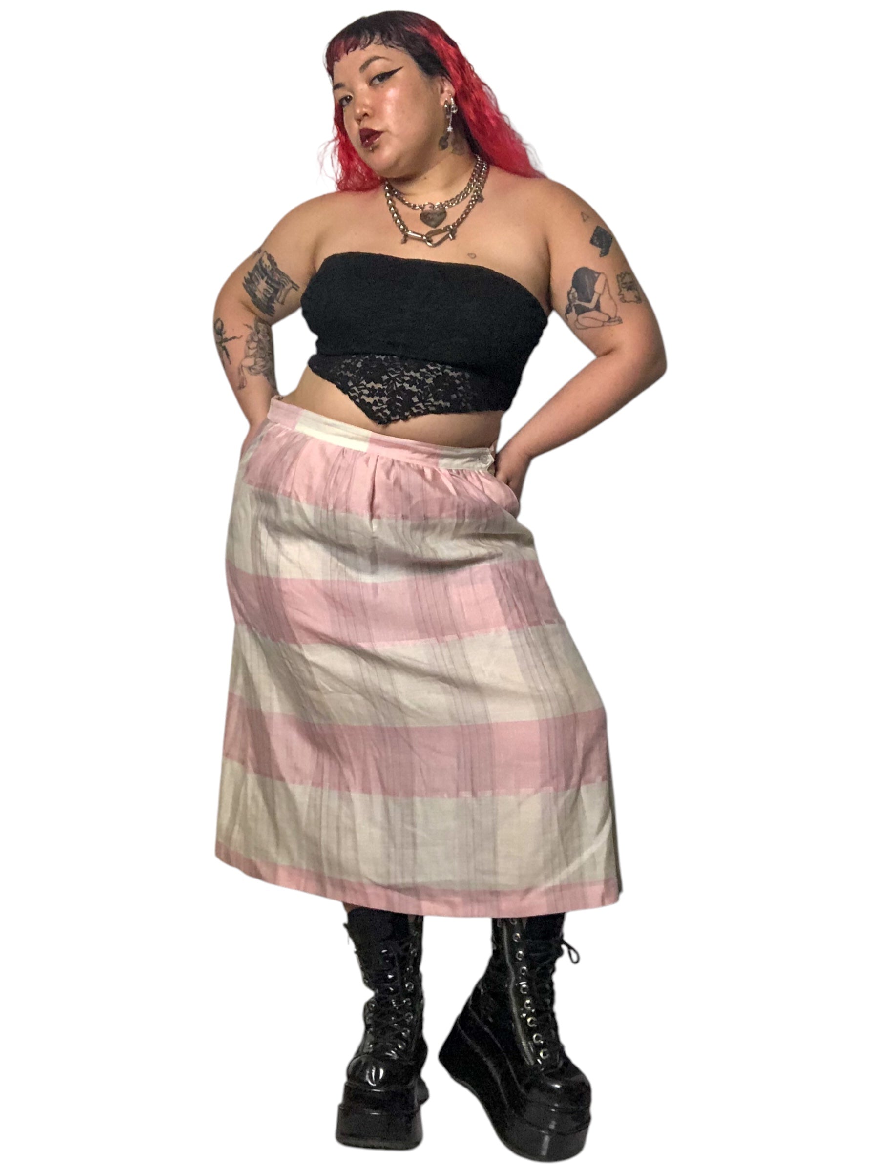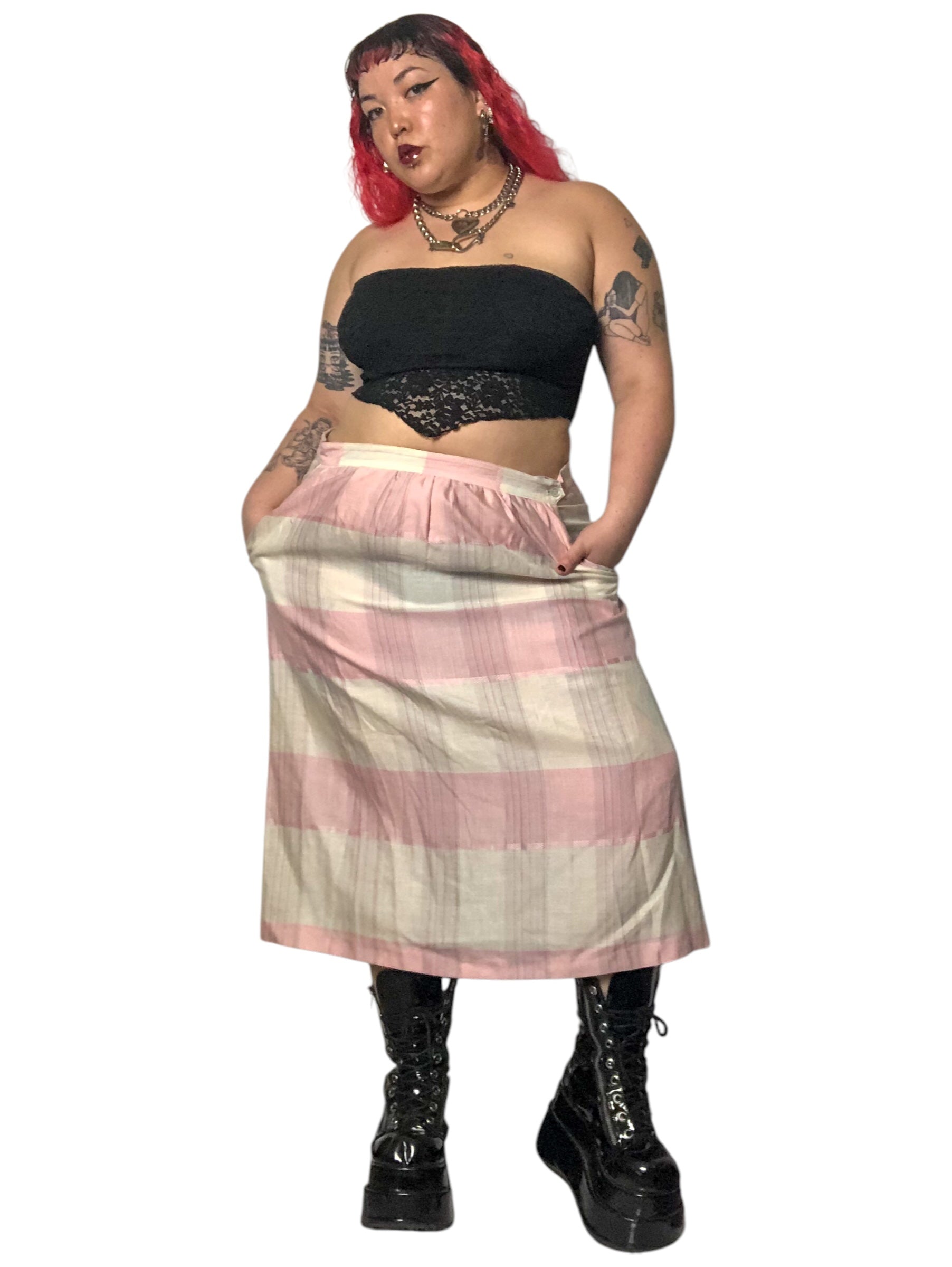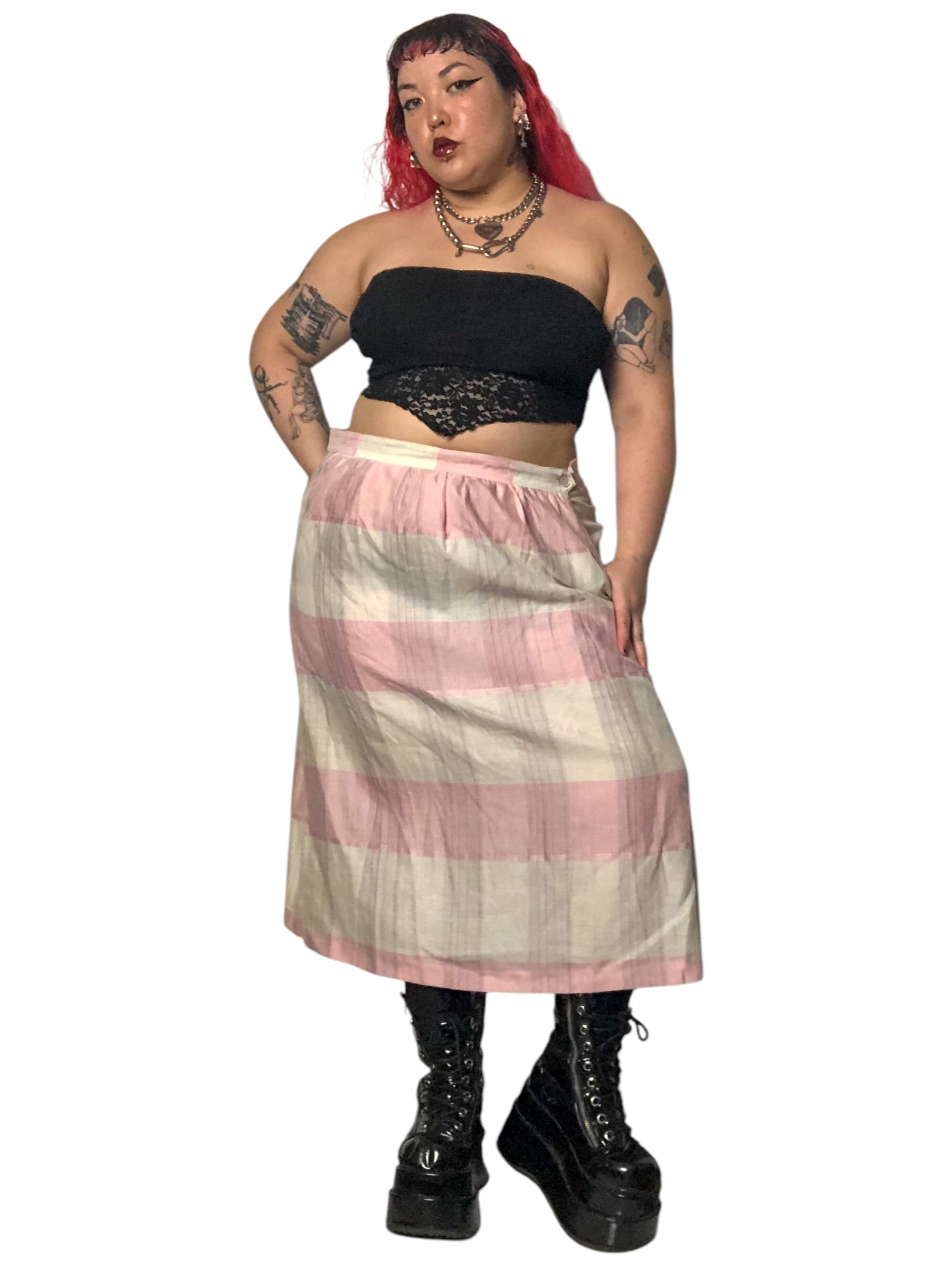 70’s Impressions II Pink and White Plaid Skirt (2X/3X)