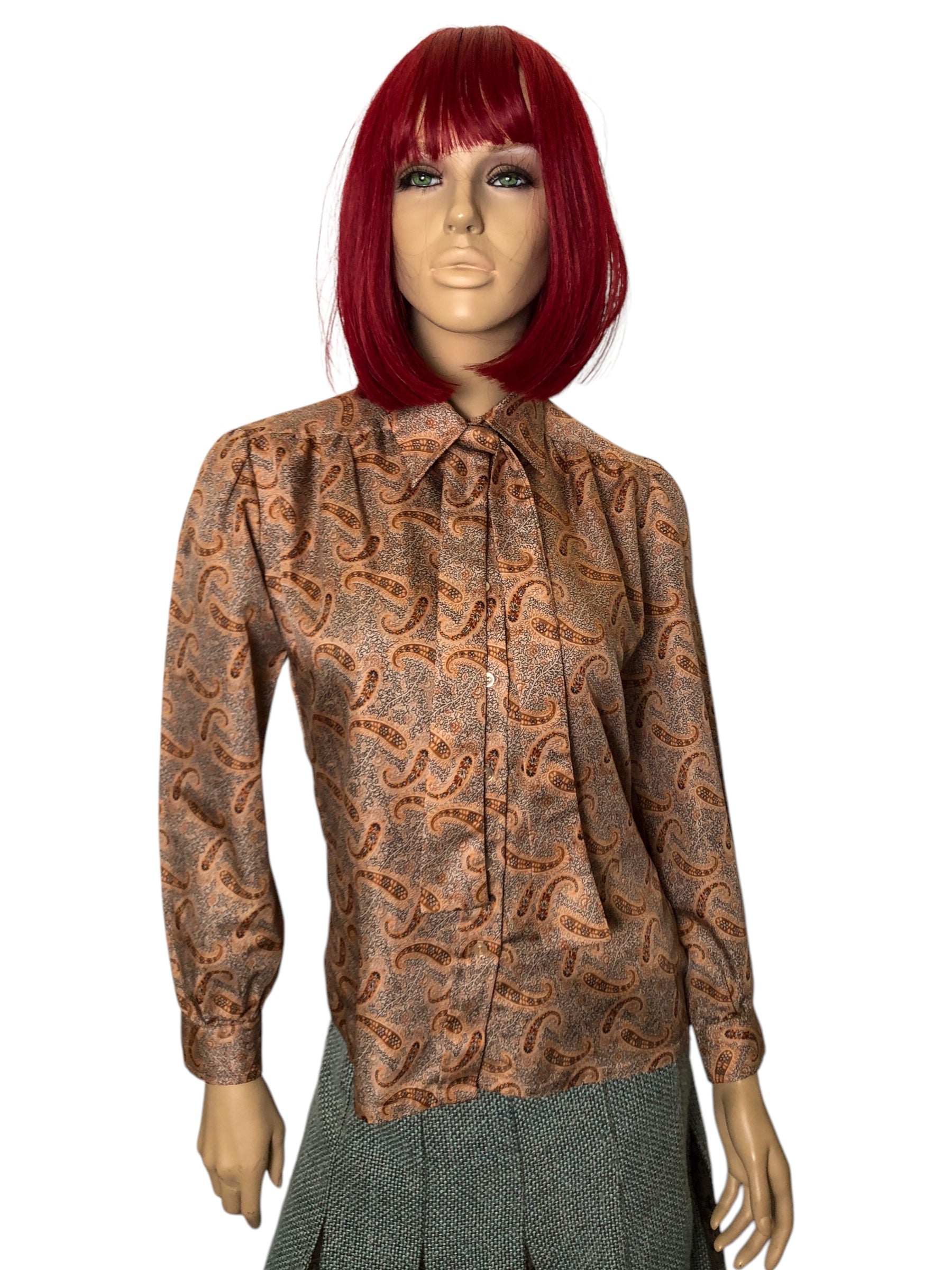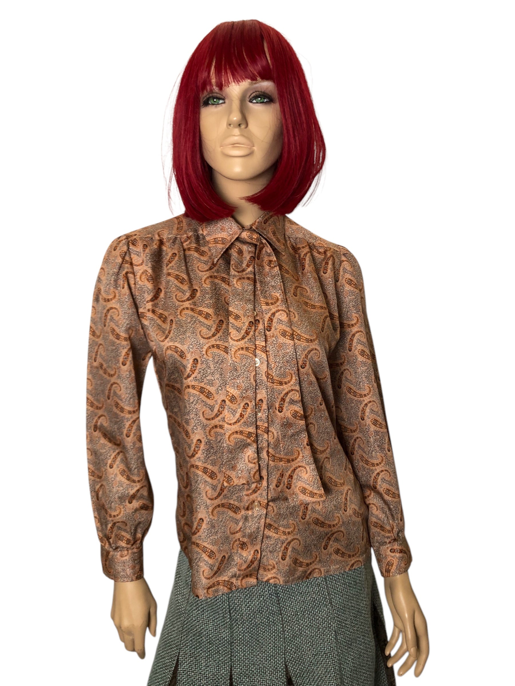 70’s R.D. #2 Brown Paisley Print Blouse (L)