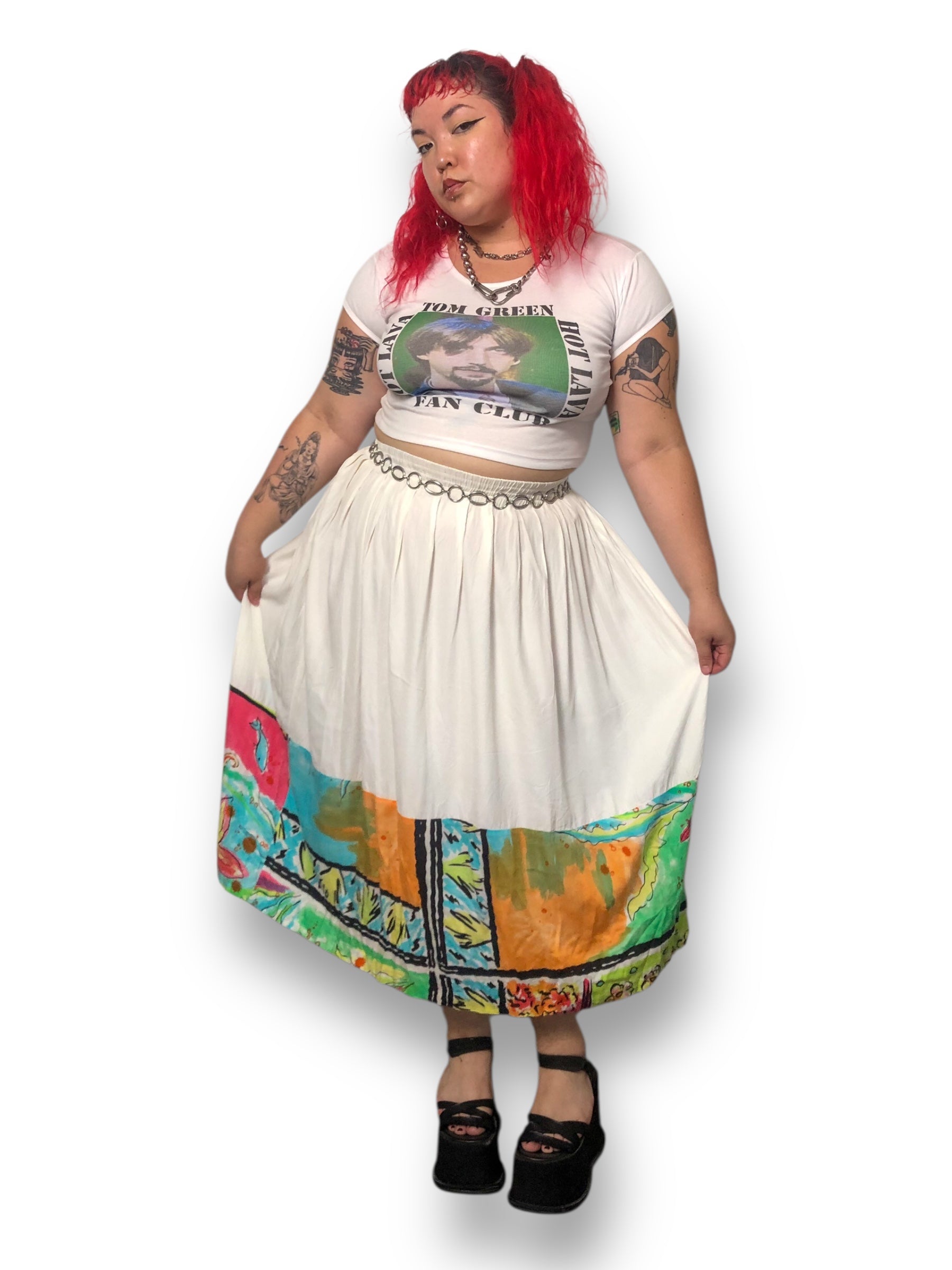 80’s/90’s August Max Woman White Retro Midi Skirt (XL/2X)