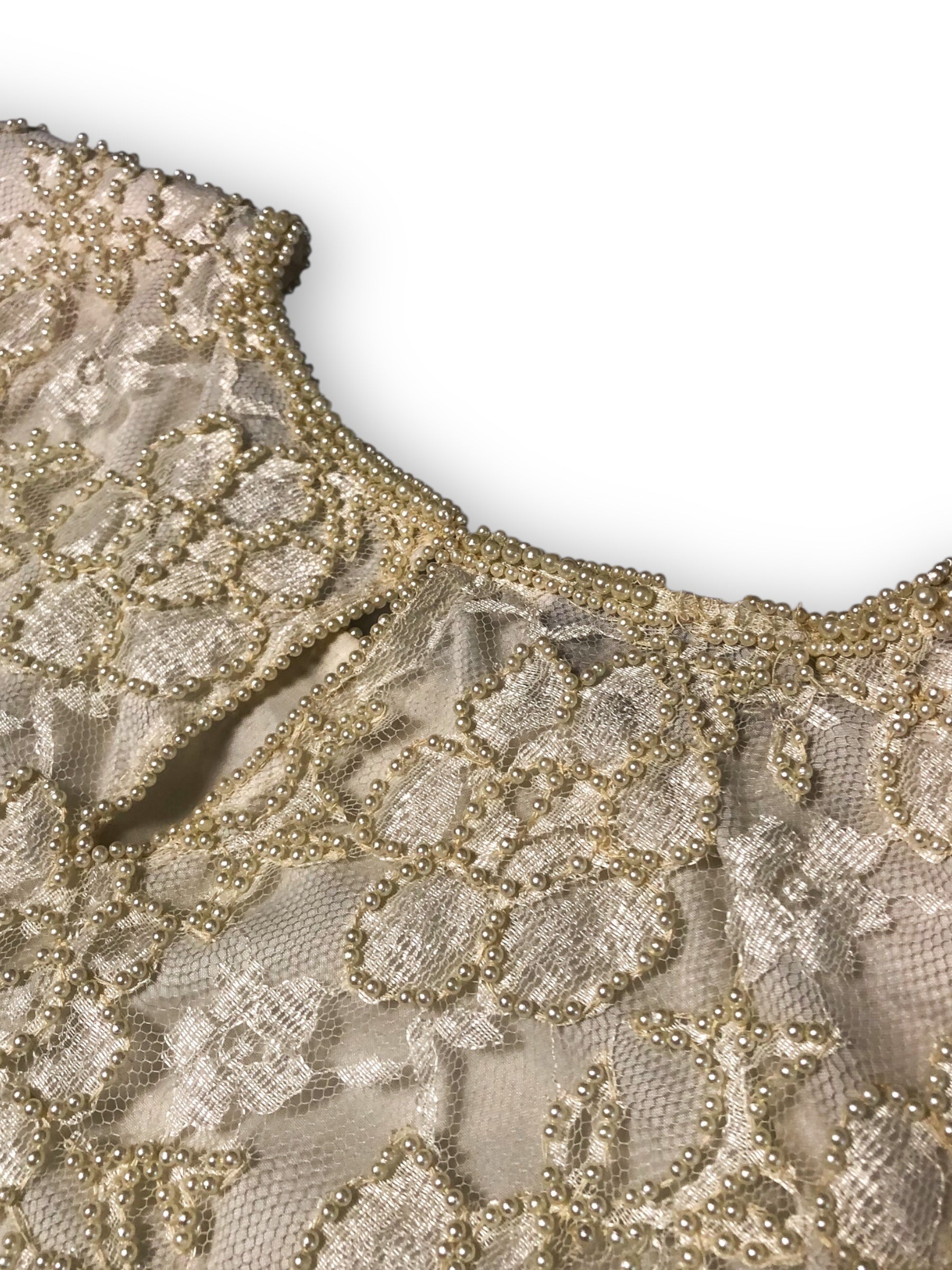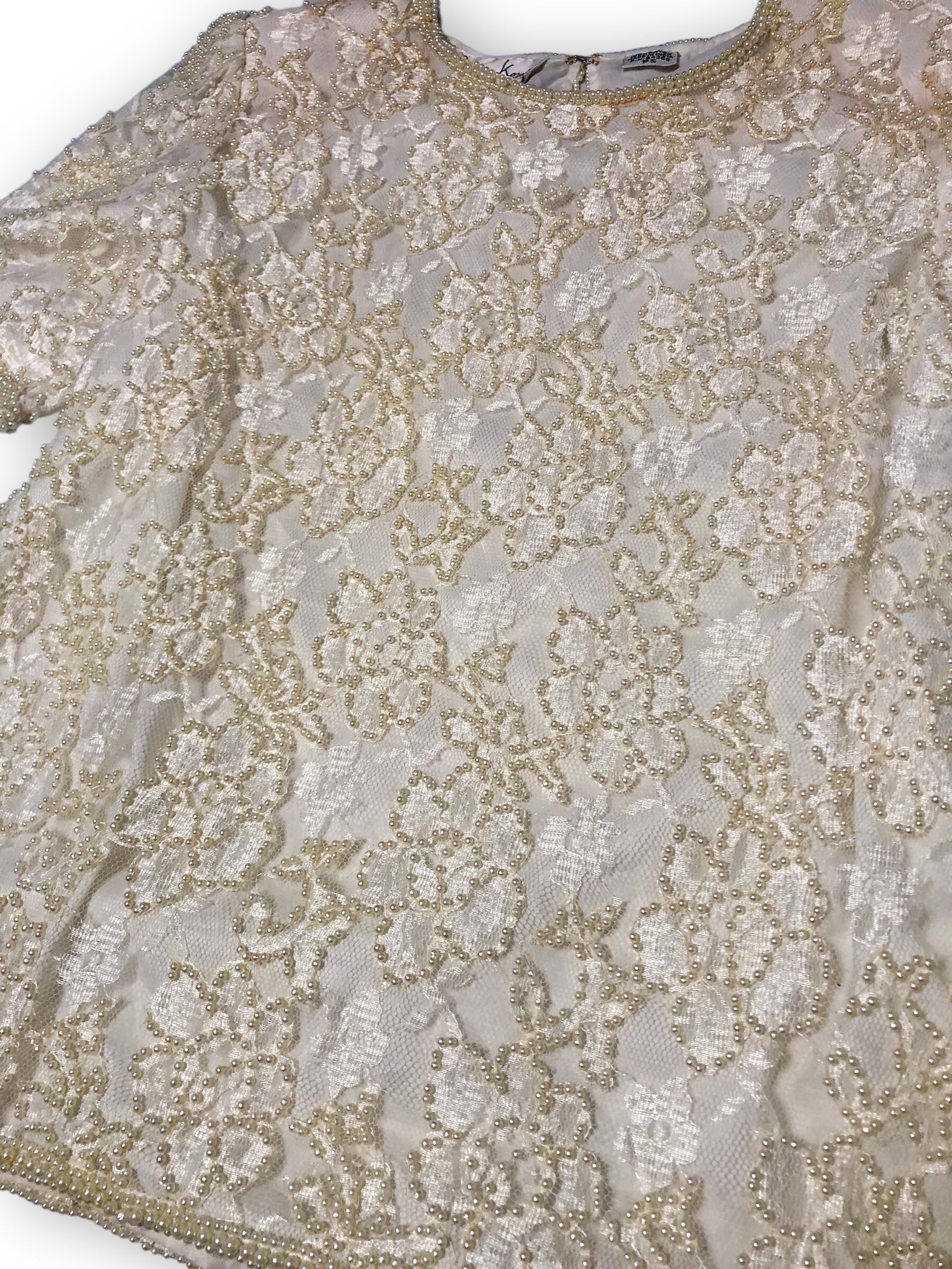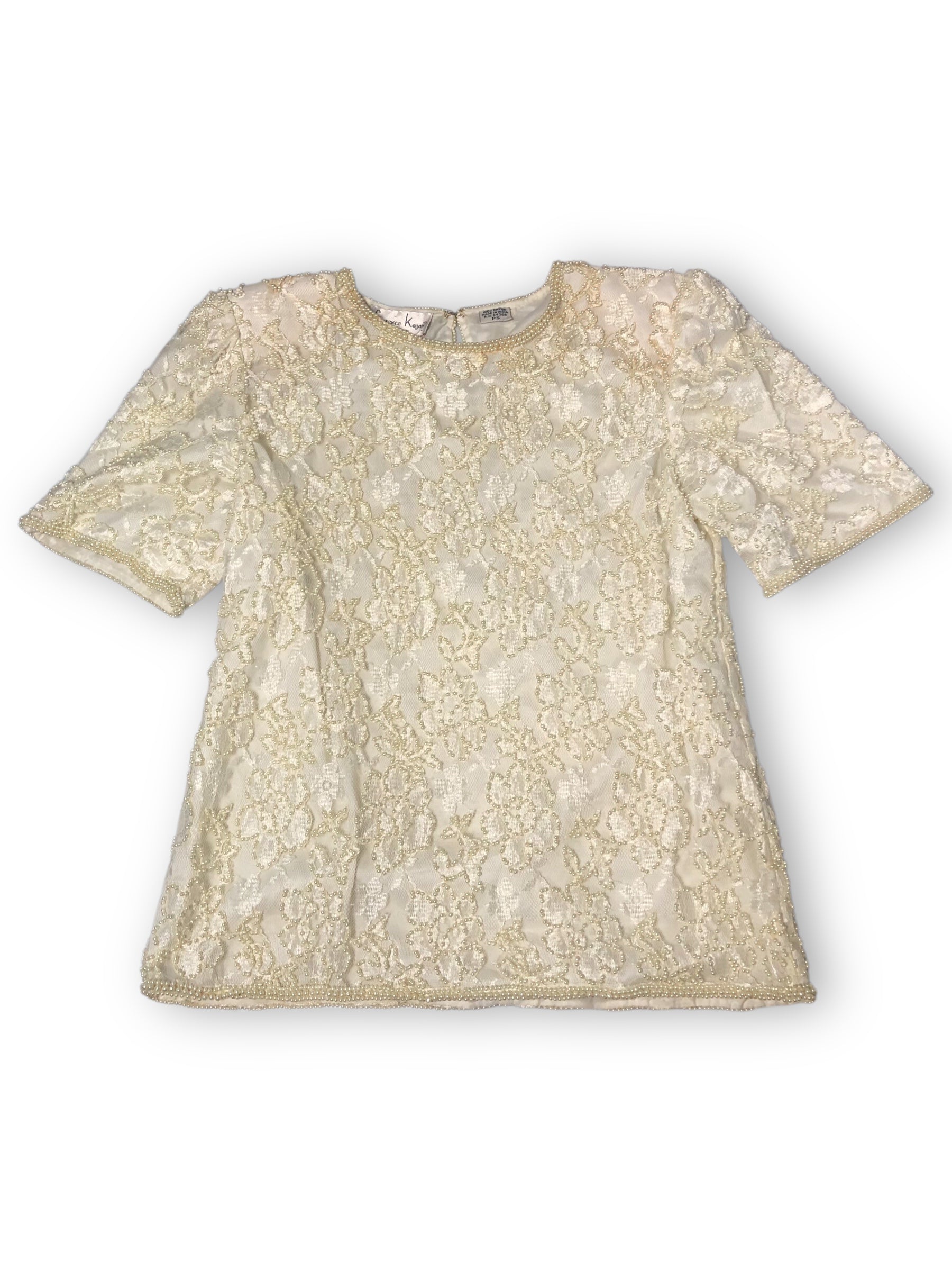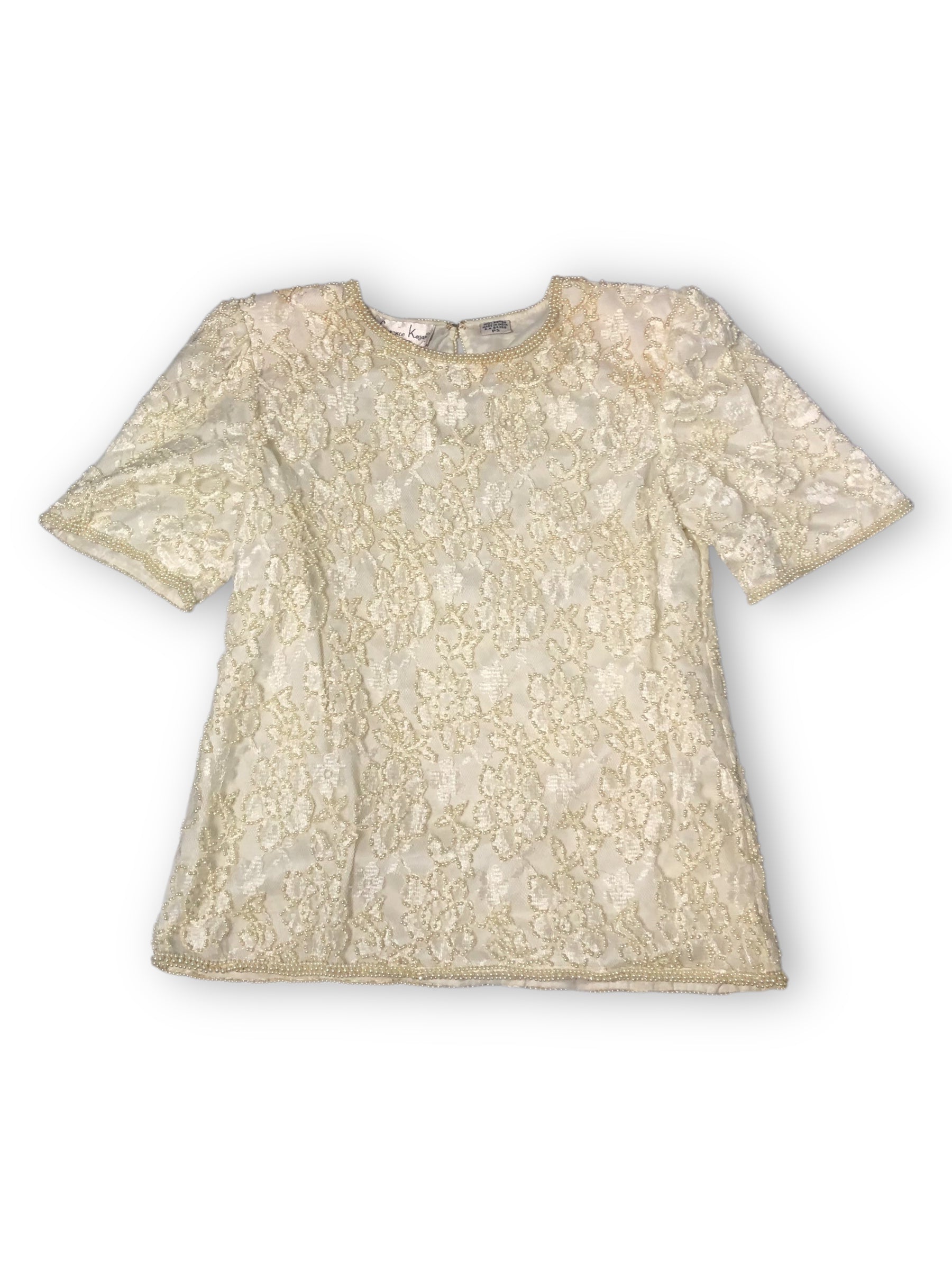 80’s/90’s Laurence Kazan White Floral Beaded Shirt (S)
