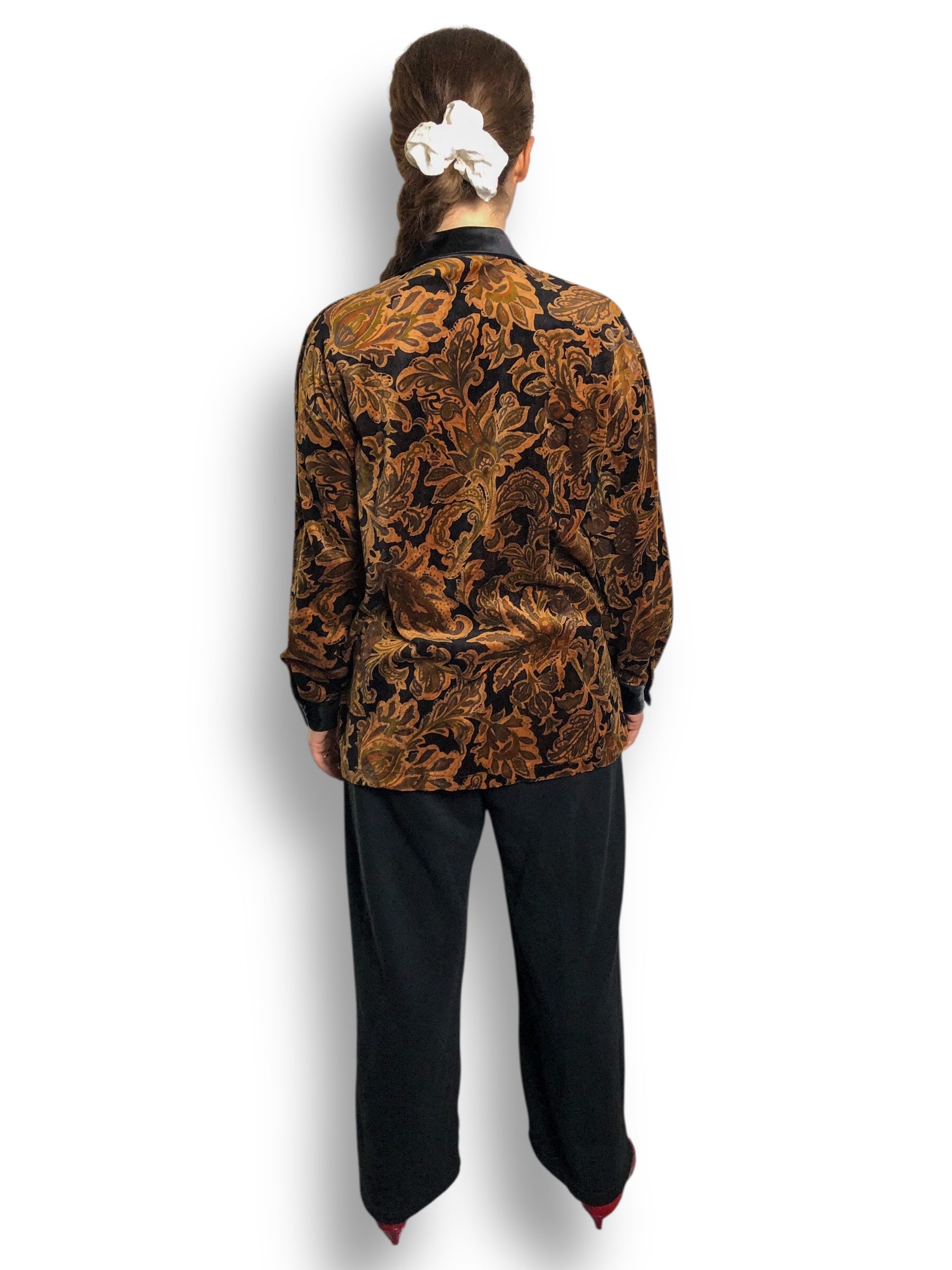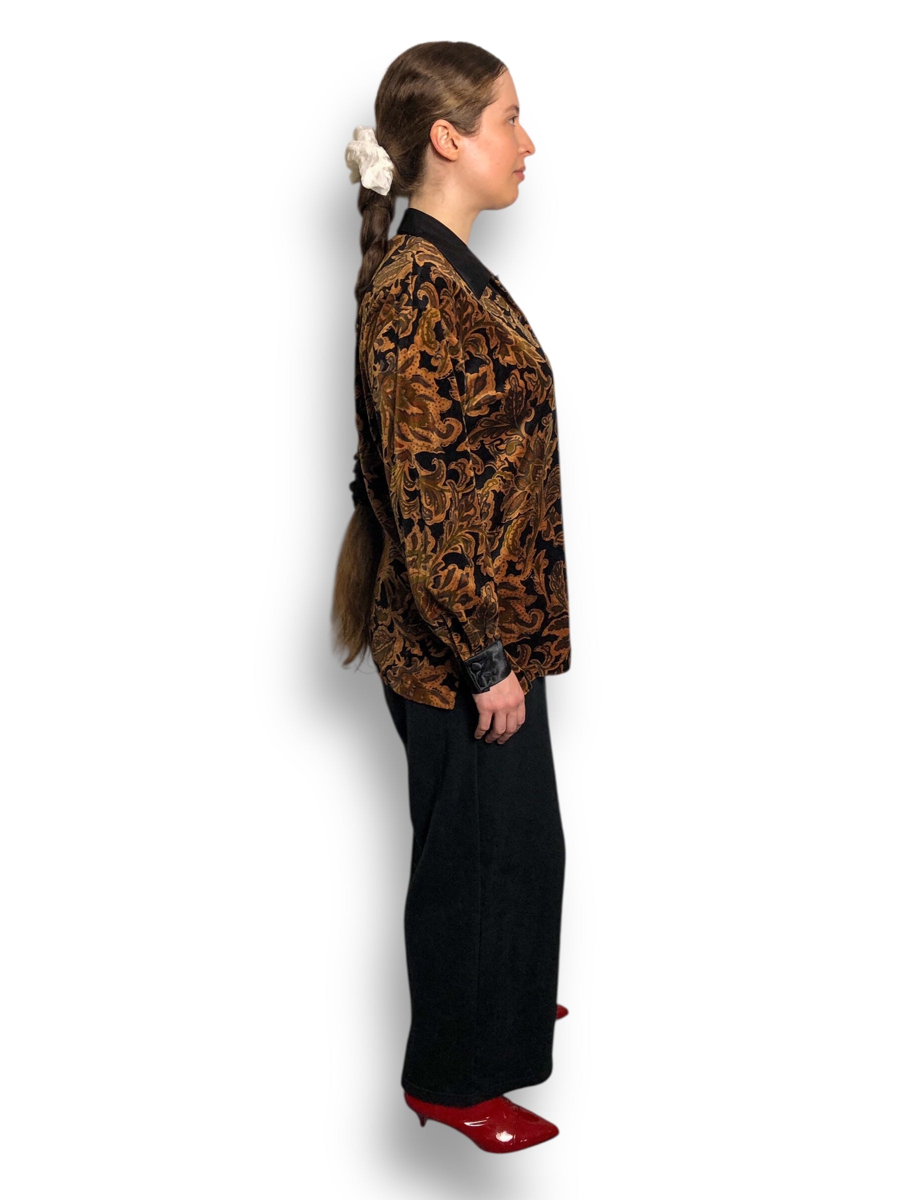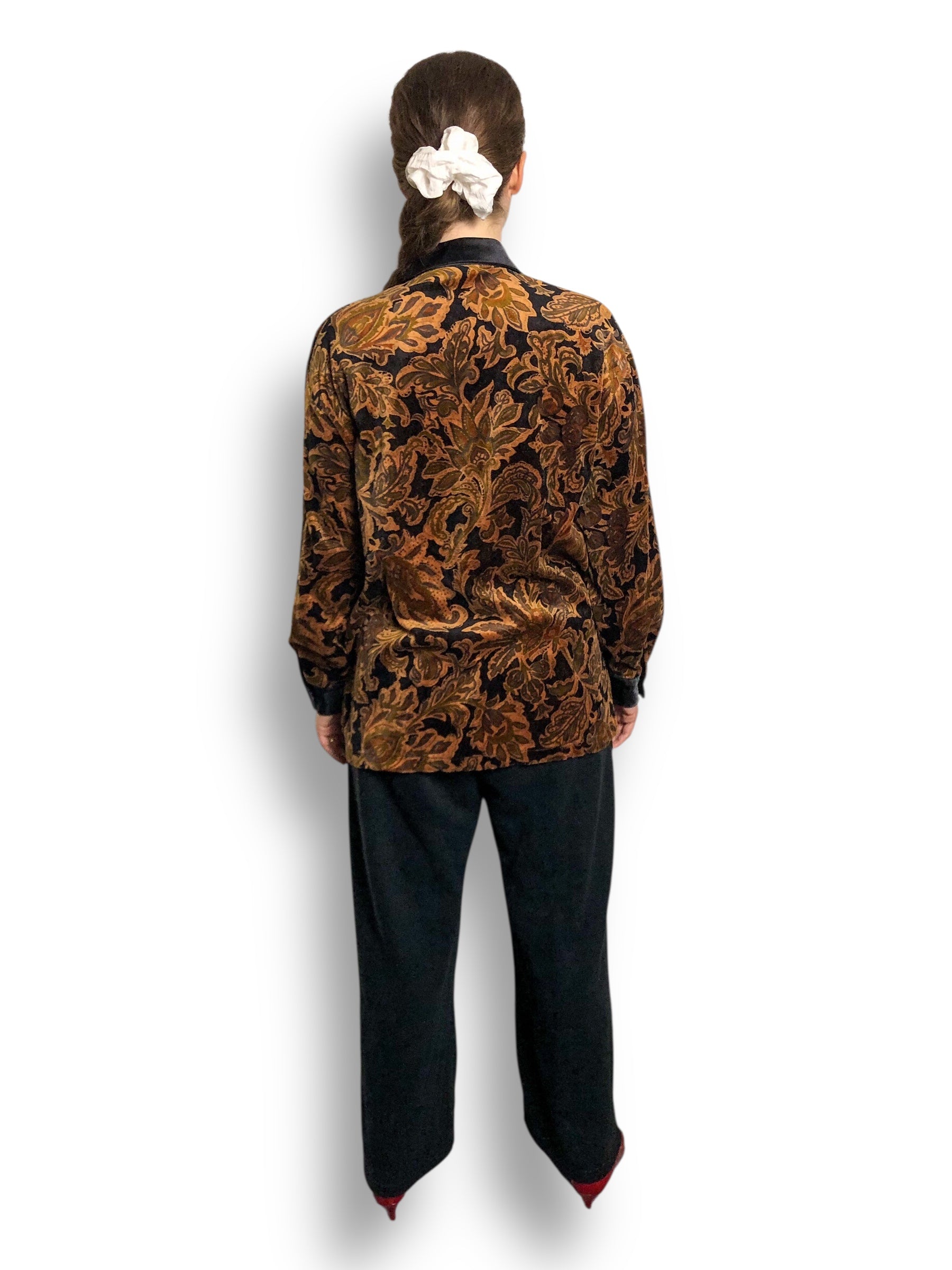 80’s/90’s Lizsport Black and Brown Paisley Velour Shirt (M/L)