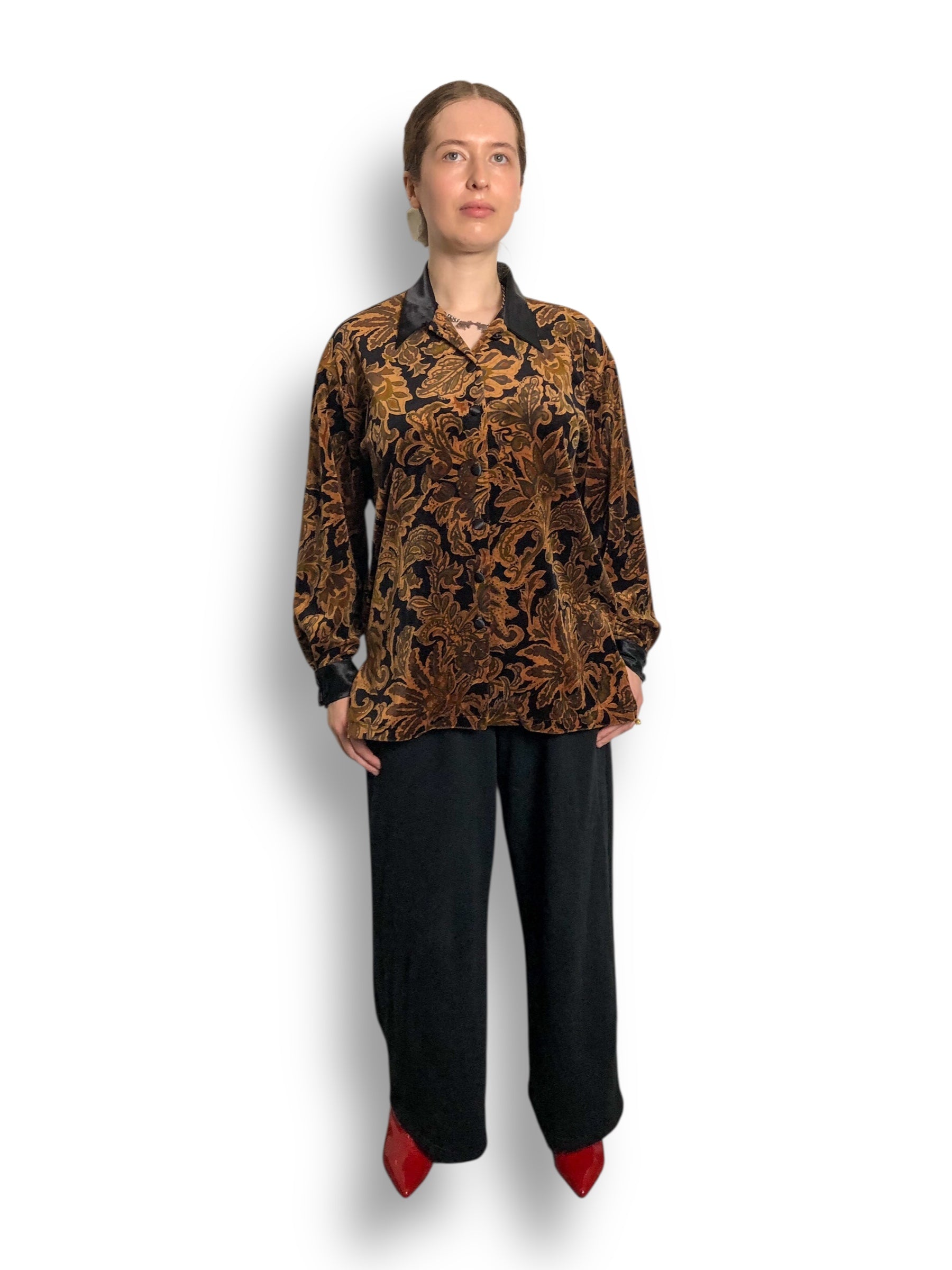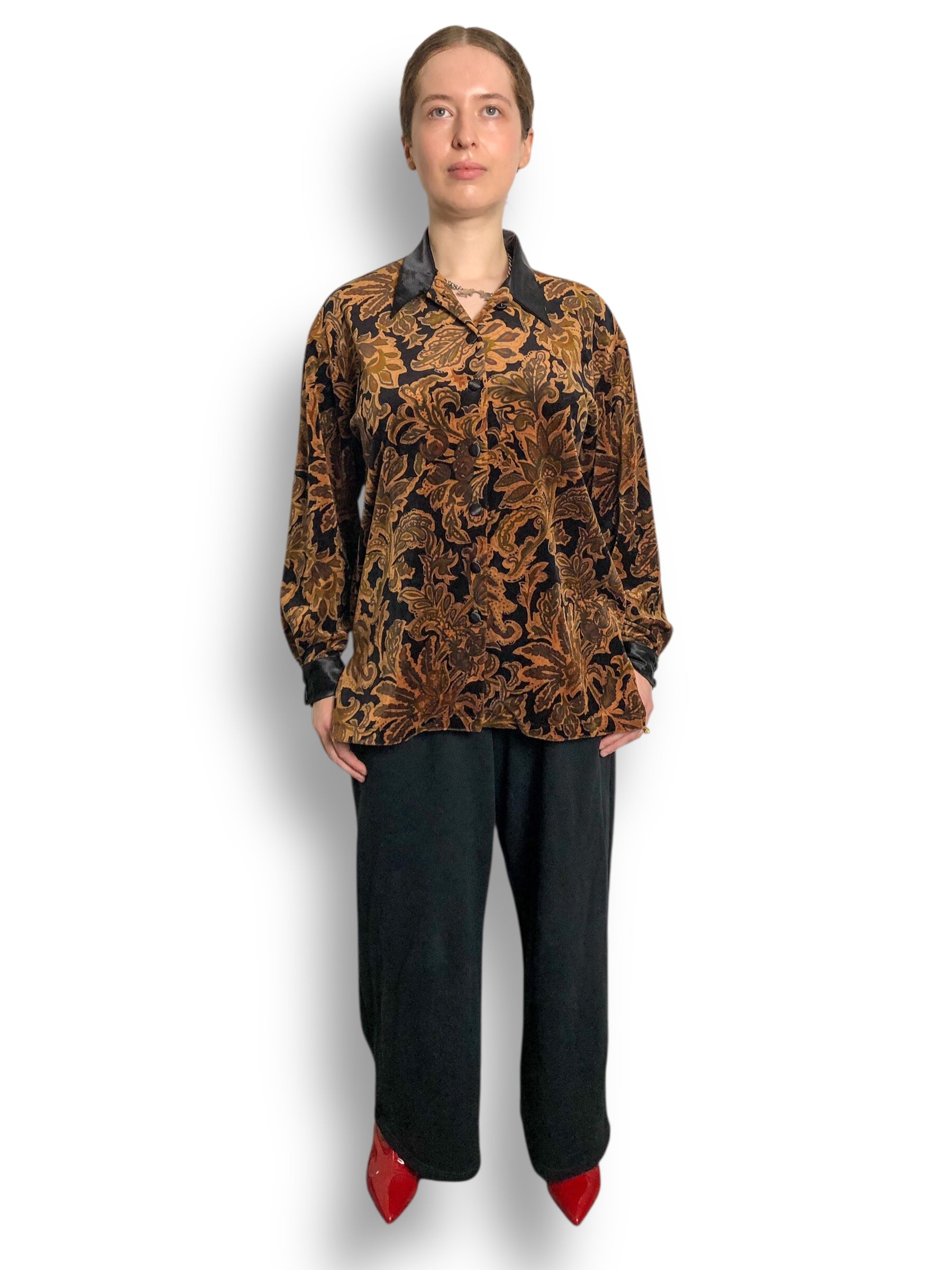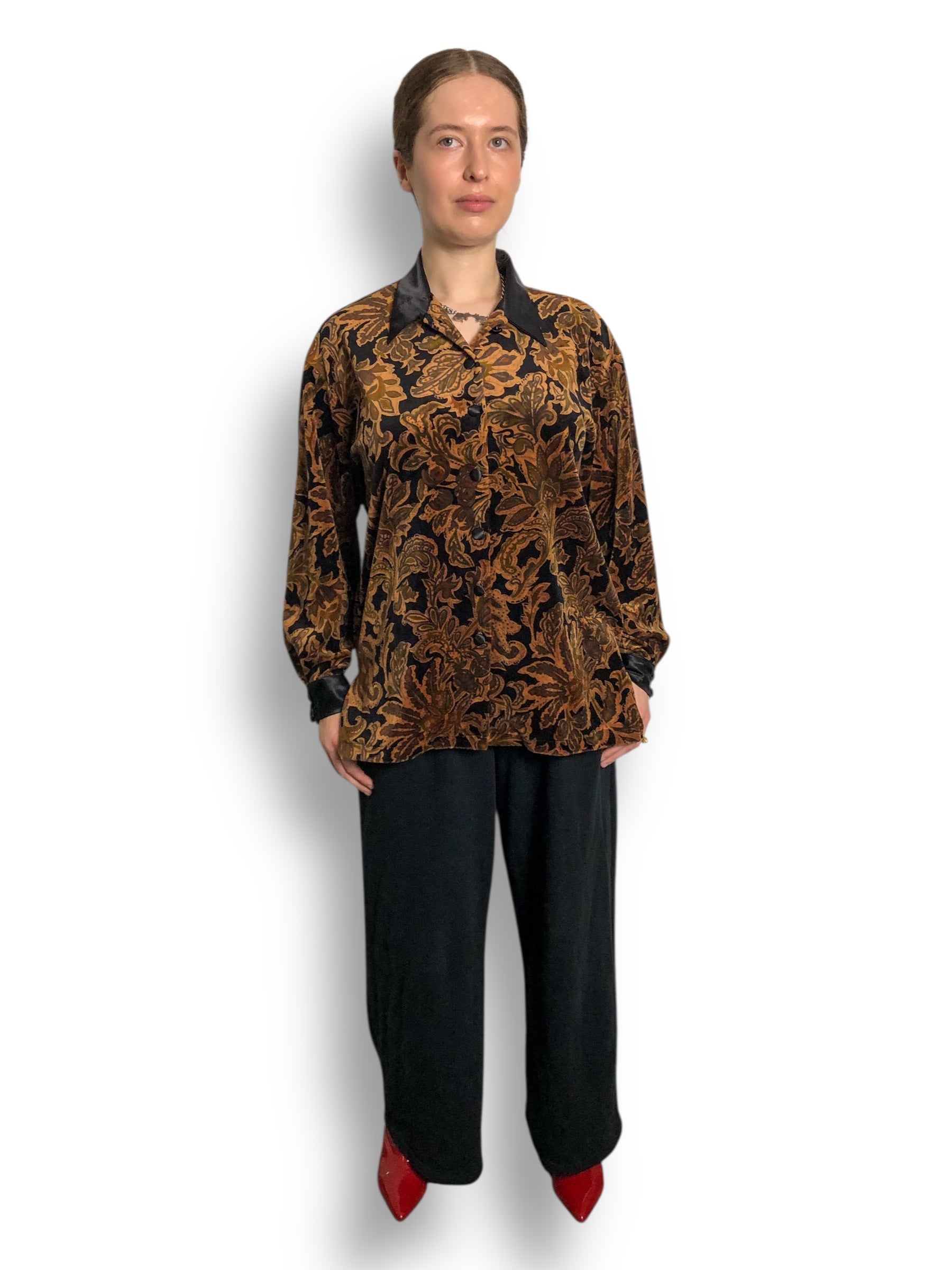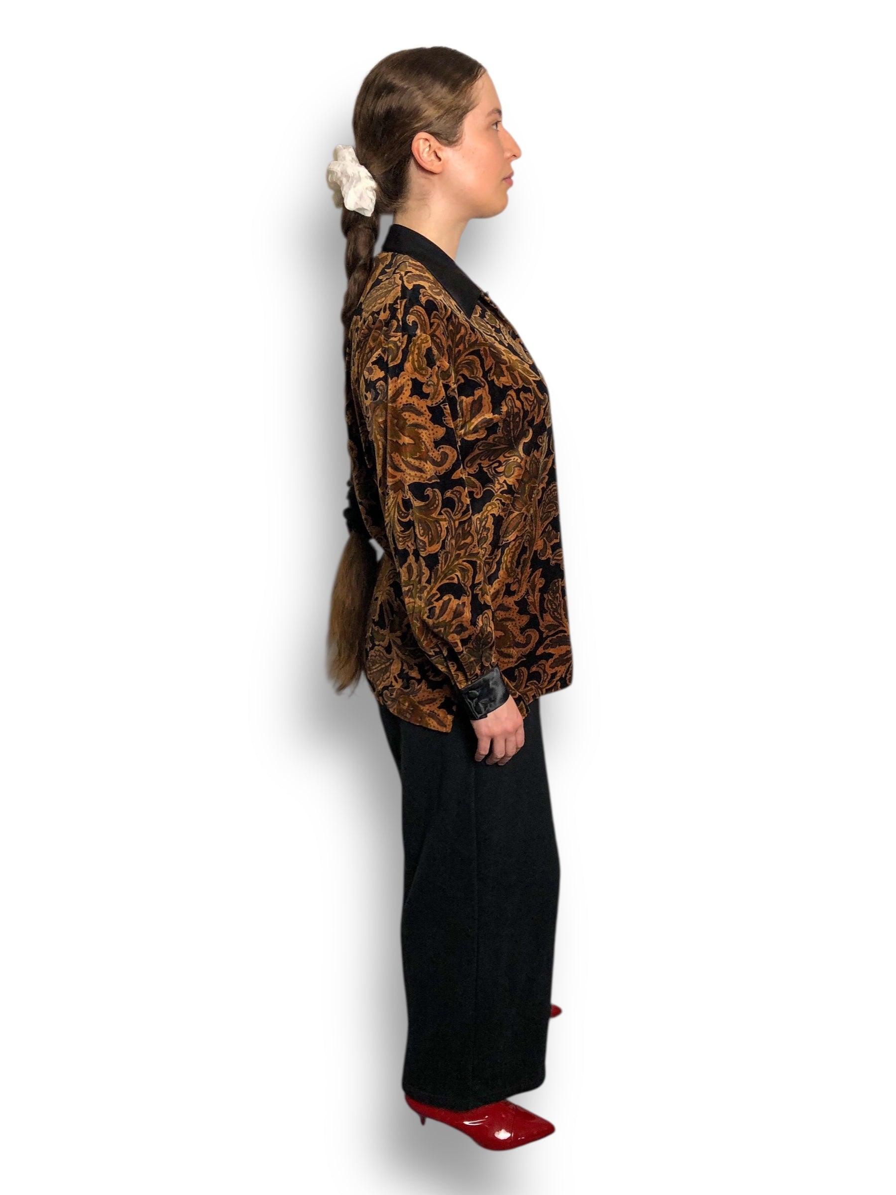 80’s/90’s Lizsport Black and Brown Paisley Velour Shirt (M/L)