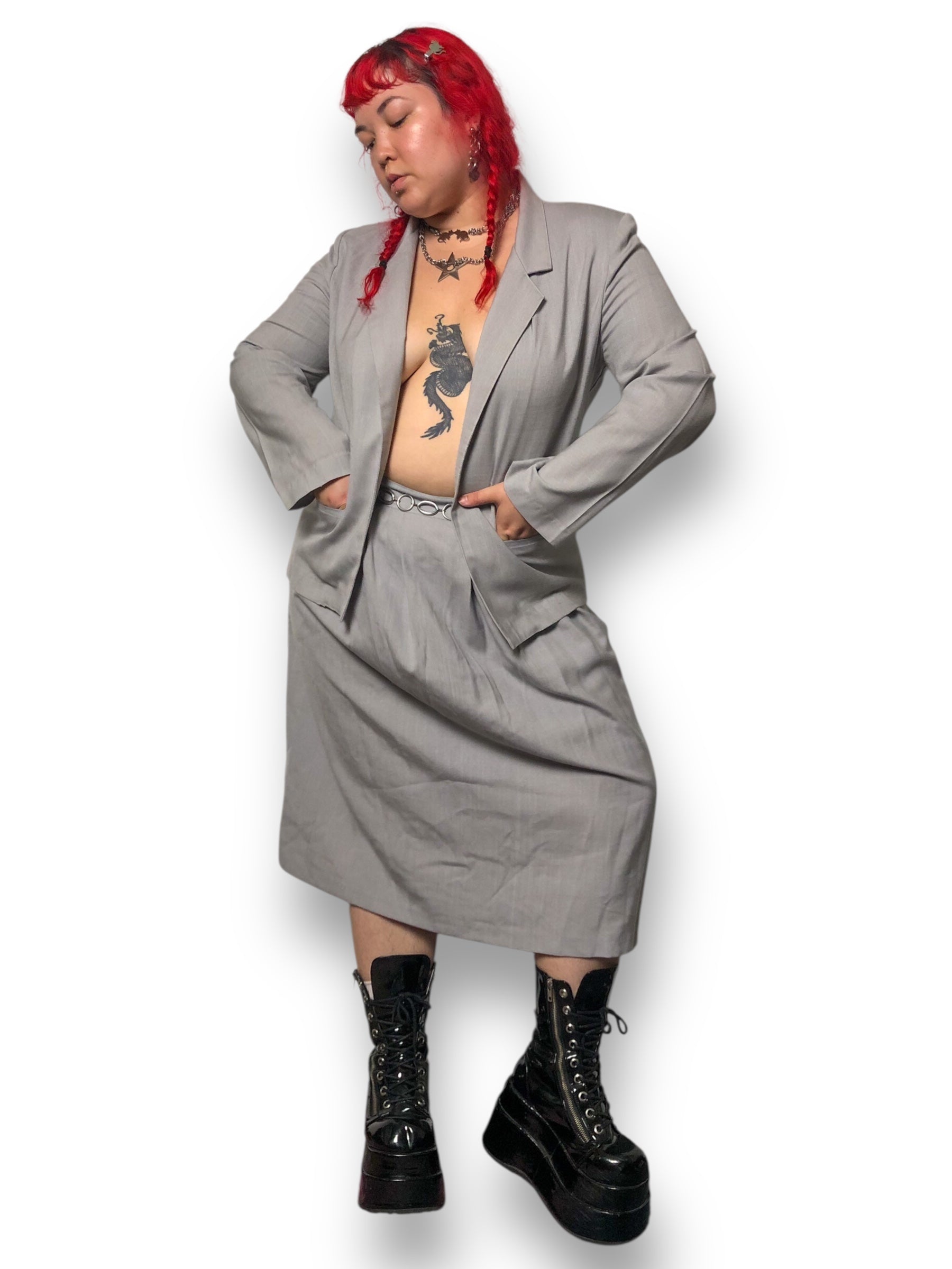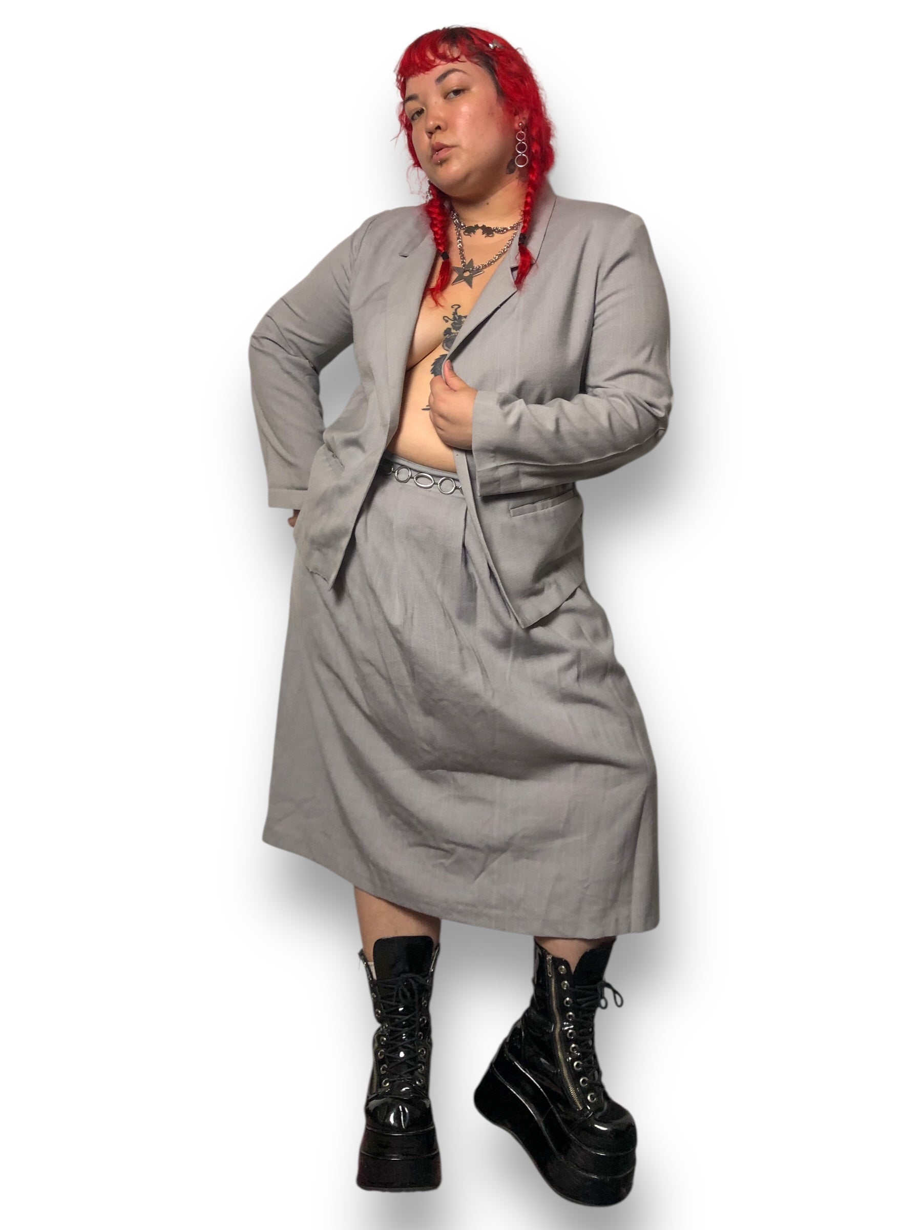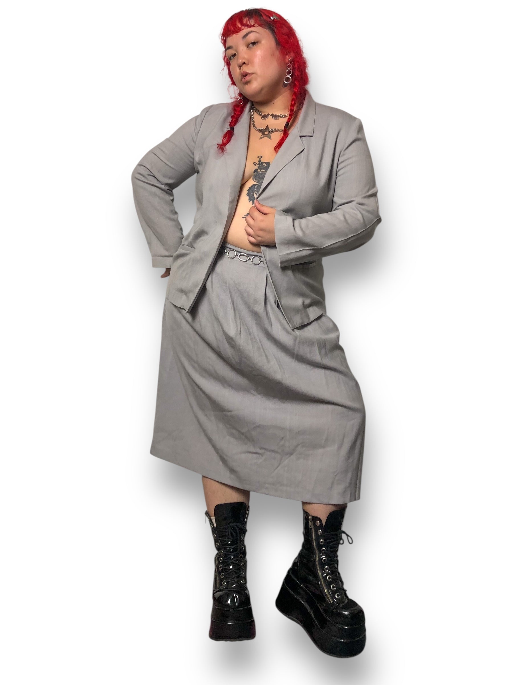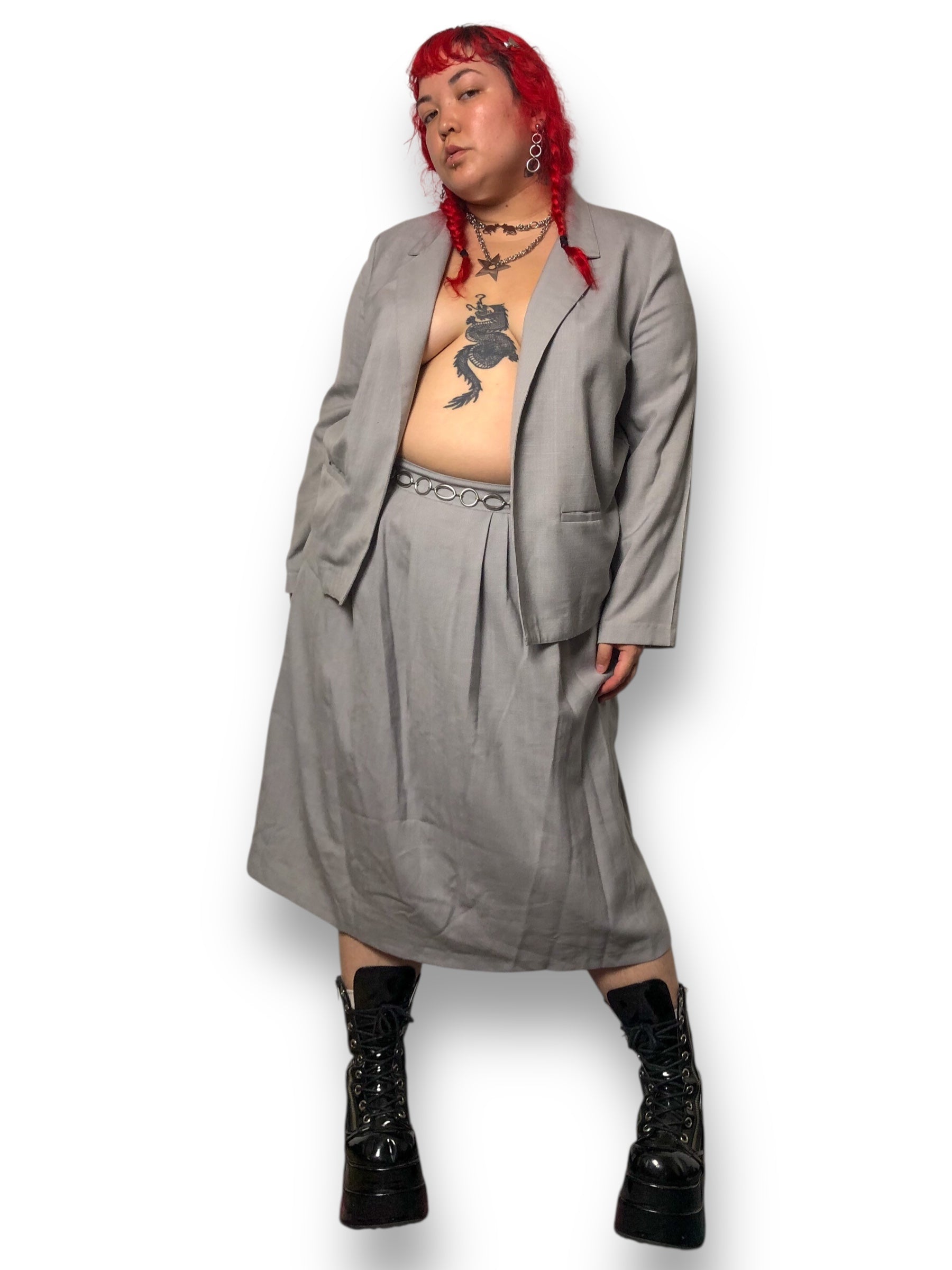 80’s/90’s Punch-Line Gray Skirt Suit (XL)
