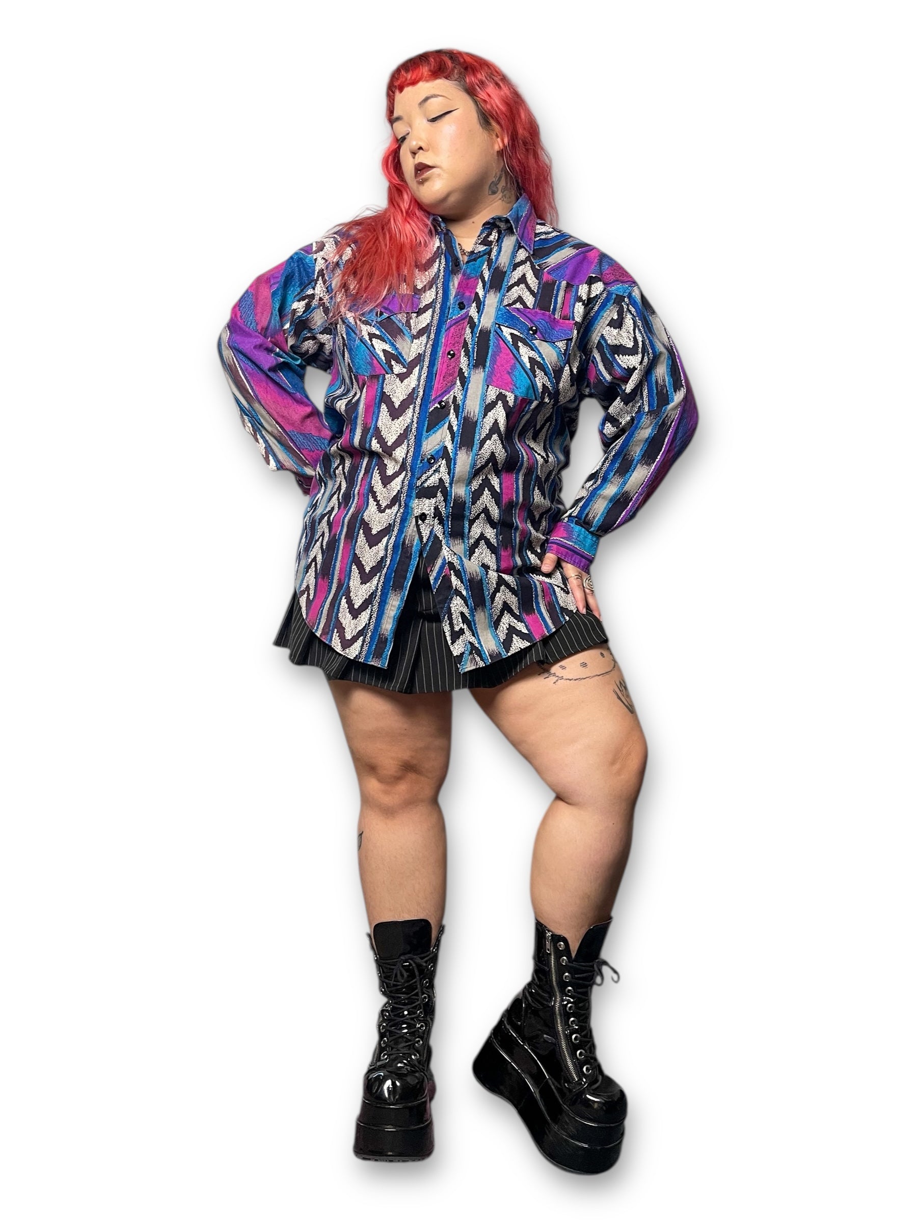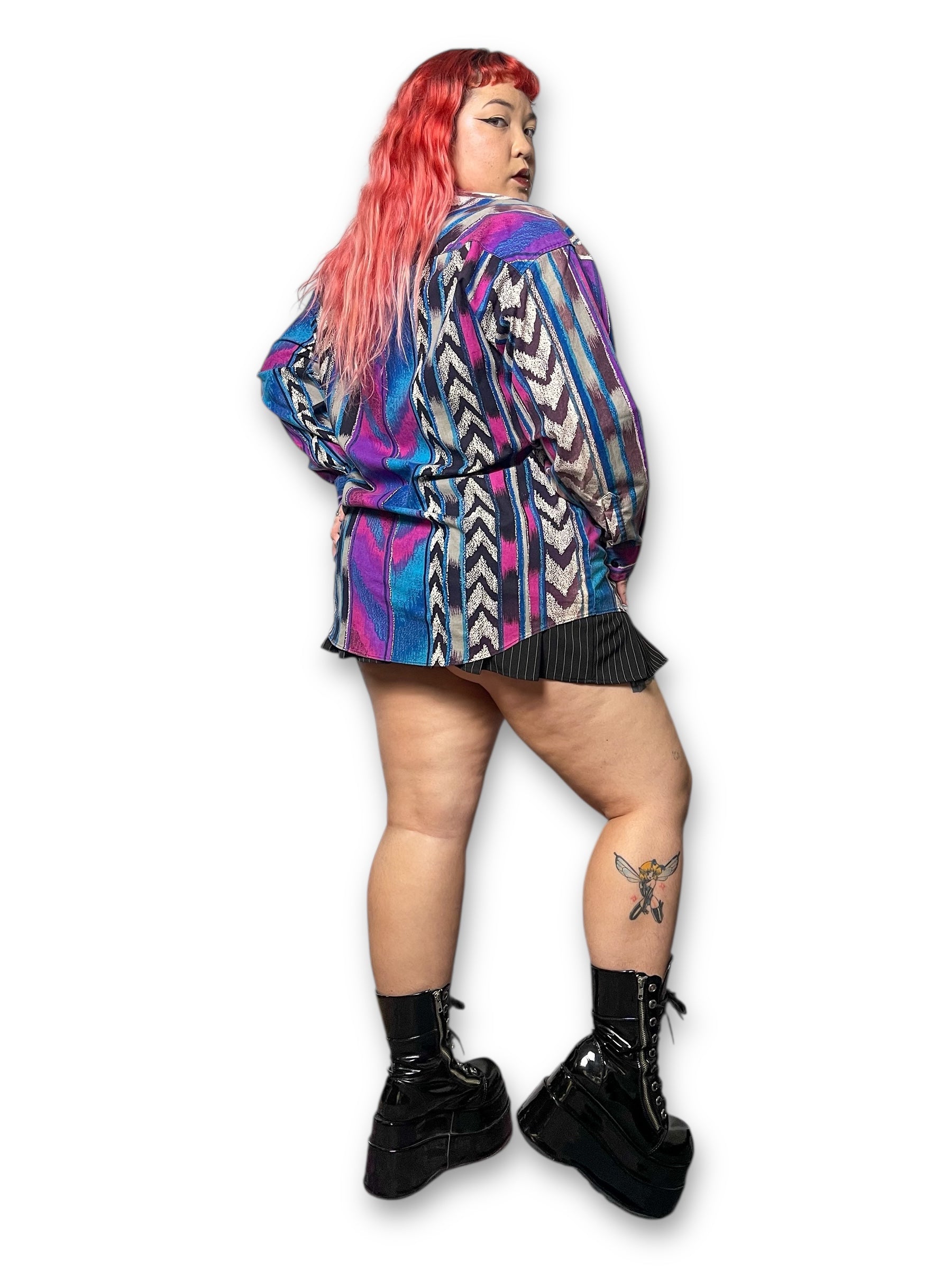 super sick purple and blue retro print throughout! barely worn vintage, 100% cotton