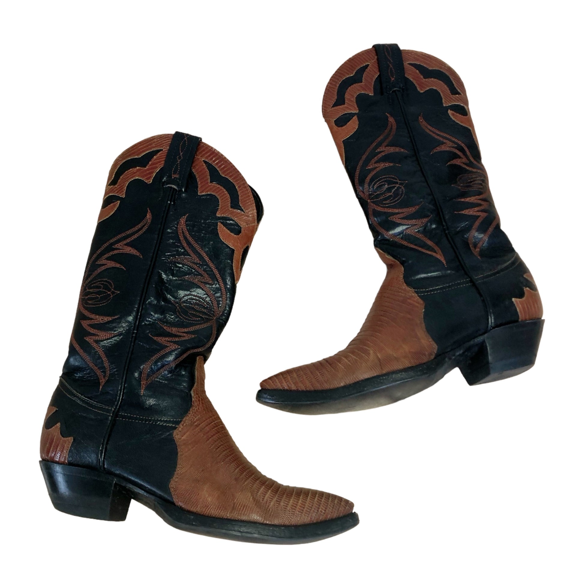 80’s/90’s Tony Lama Black and Brown Cowboy Boots (5.5)