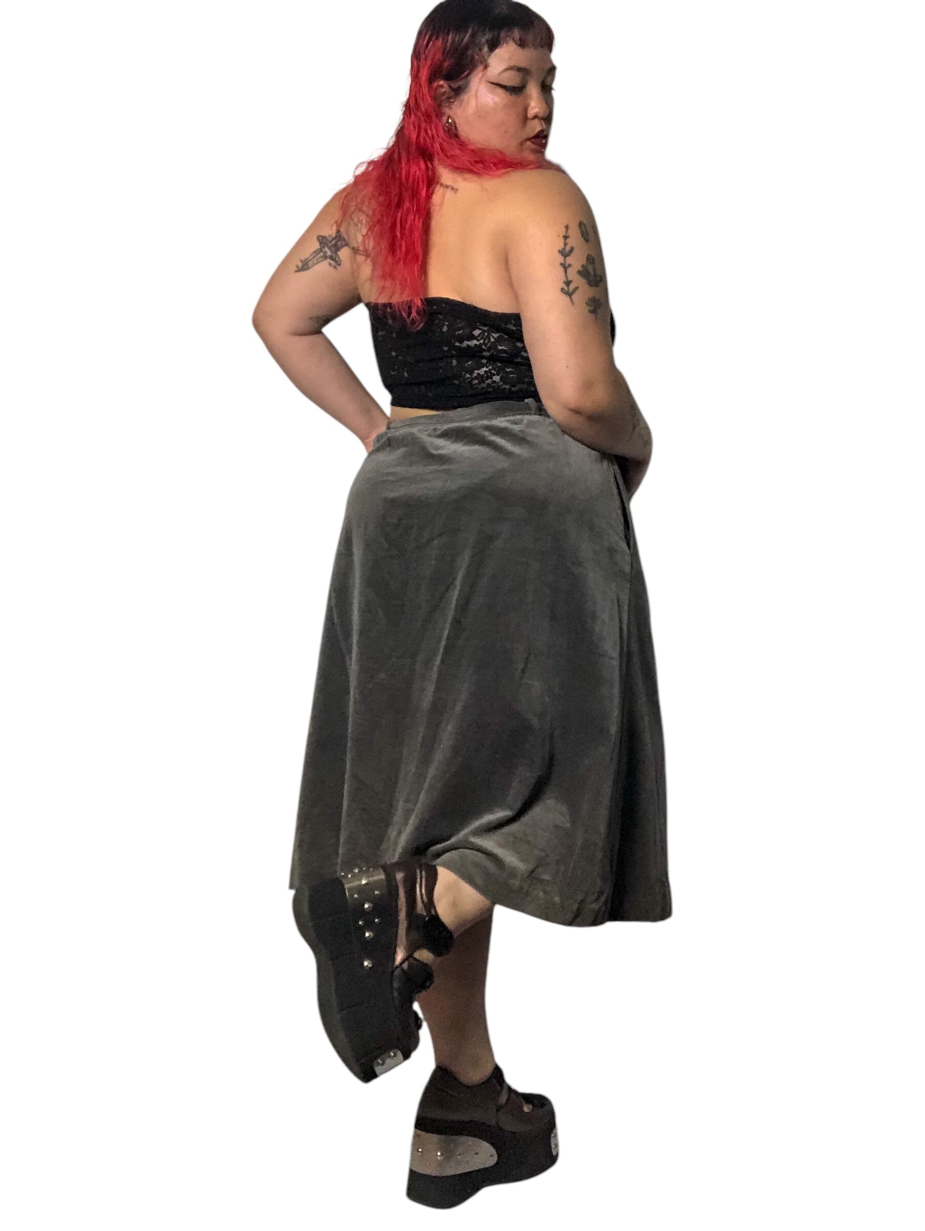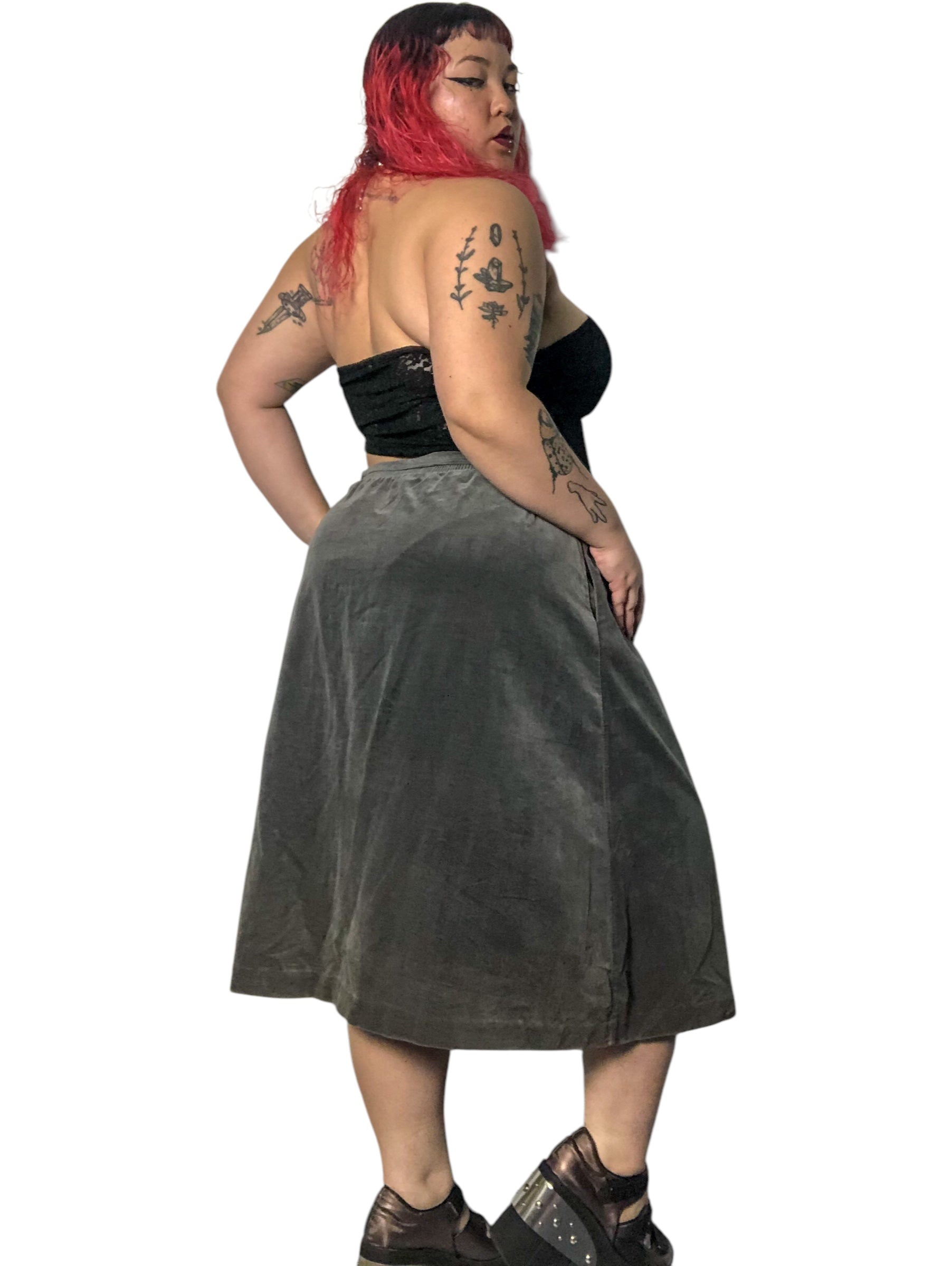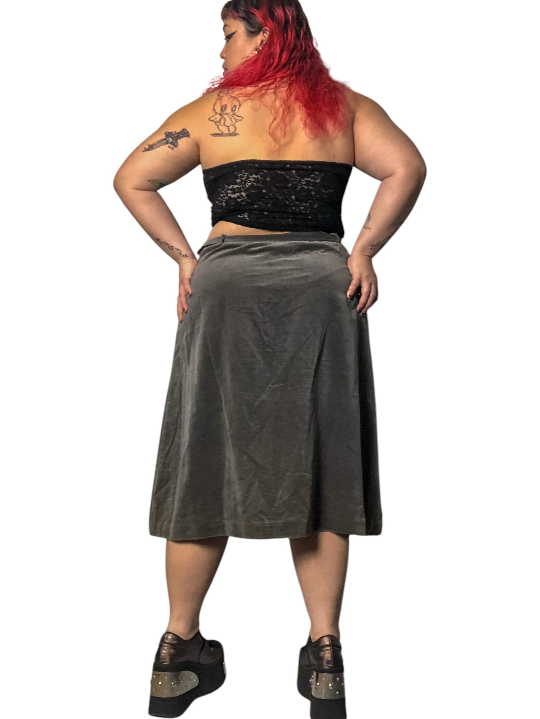 80’s/90’s Tumbleweeds Gray Velvet Skirt (XL/2X/3X)
