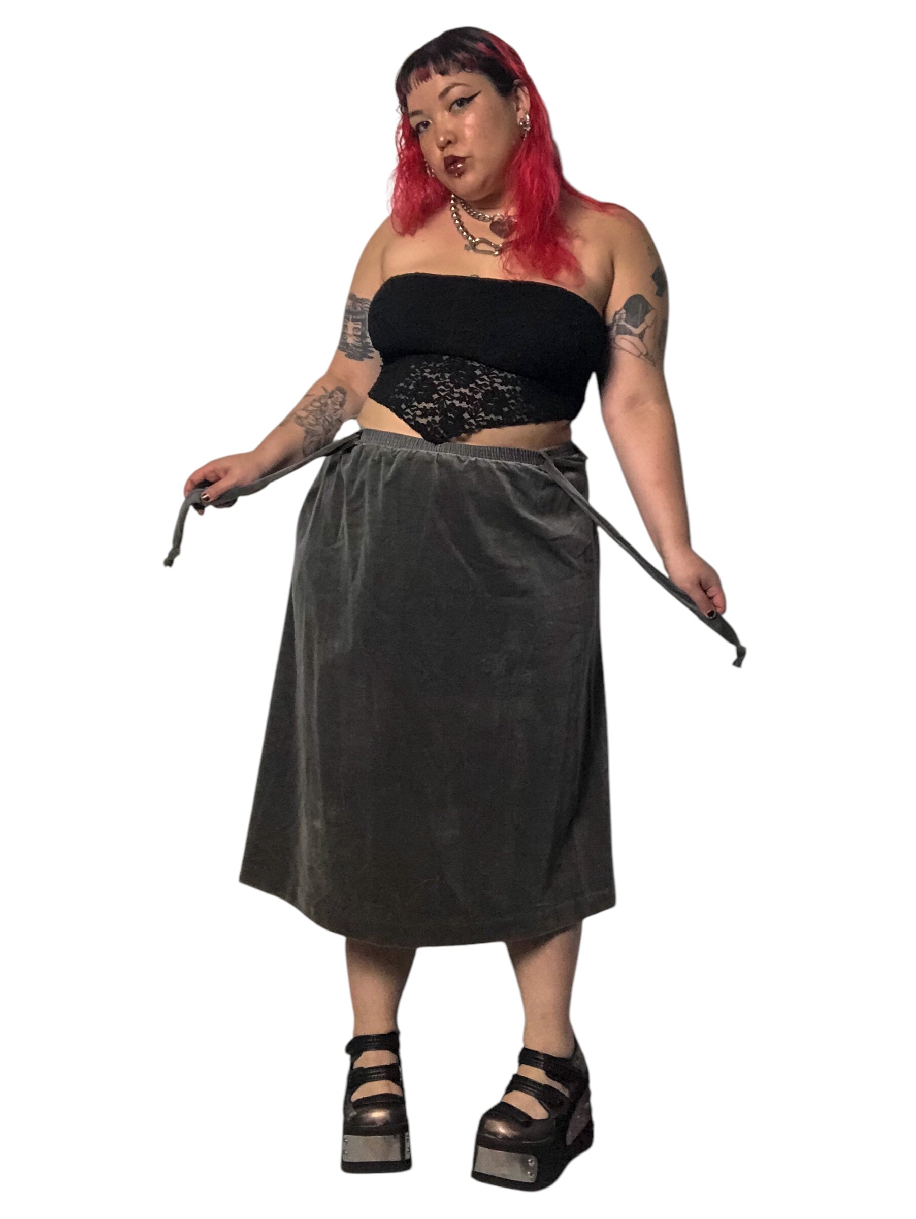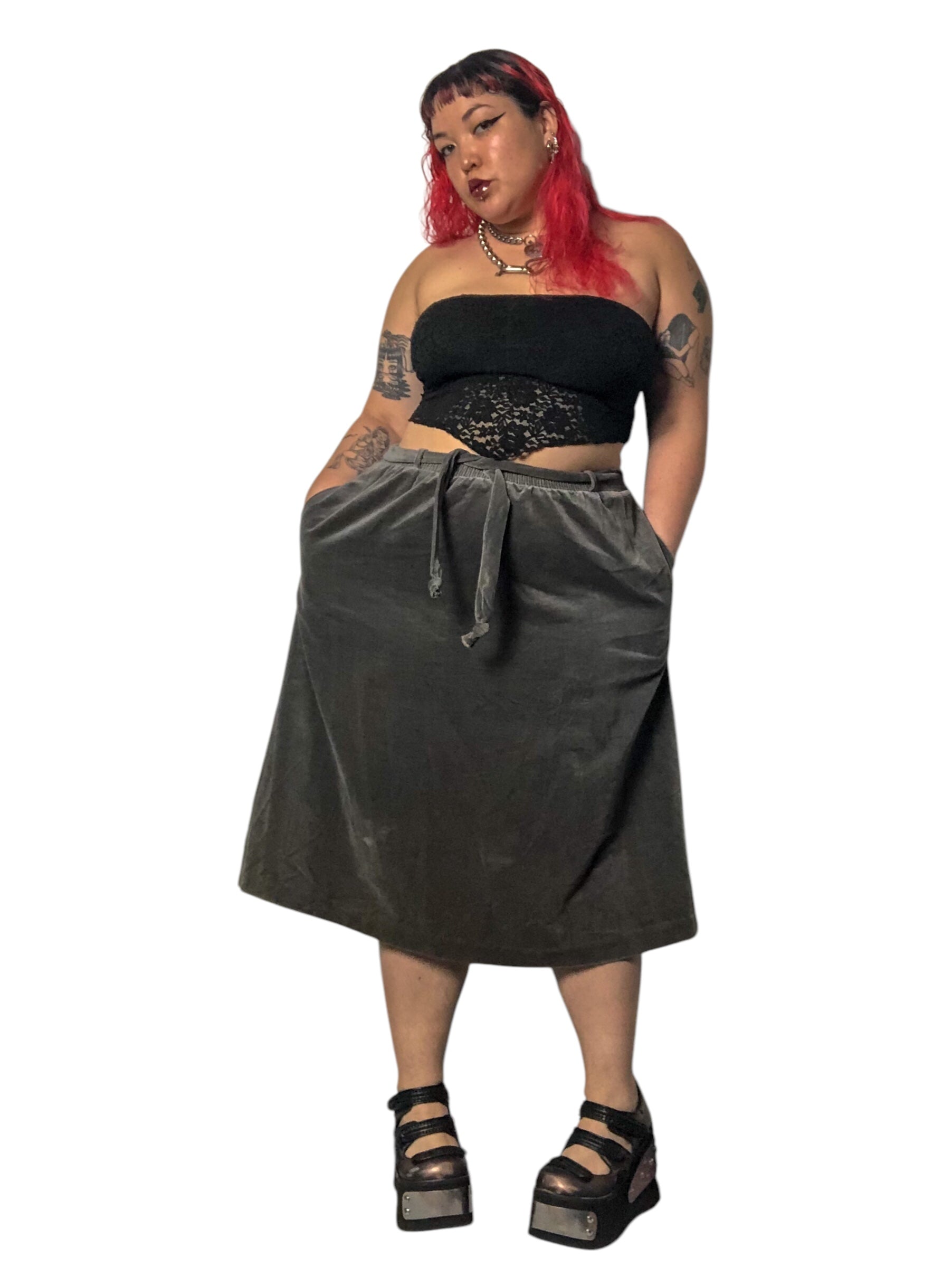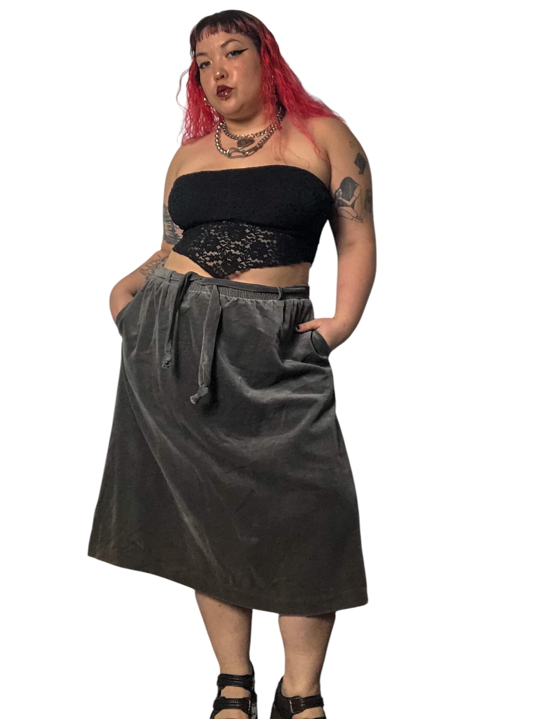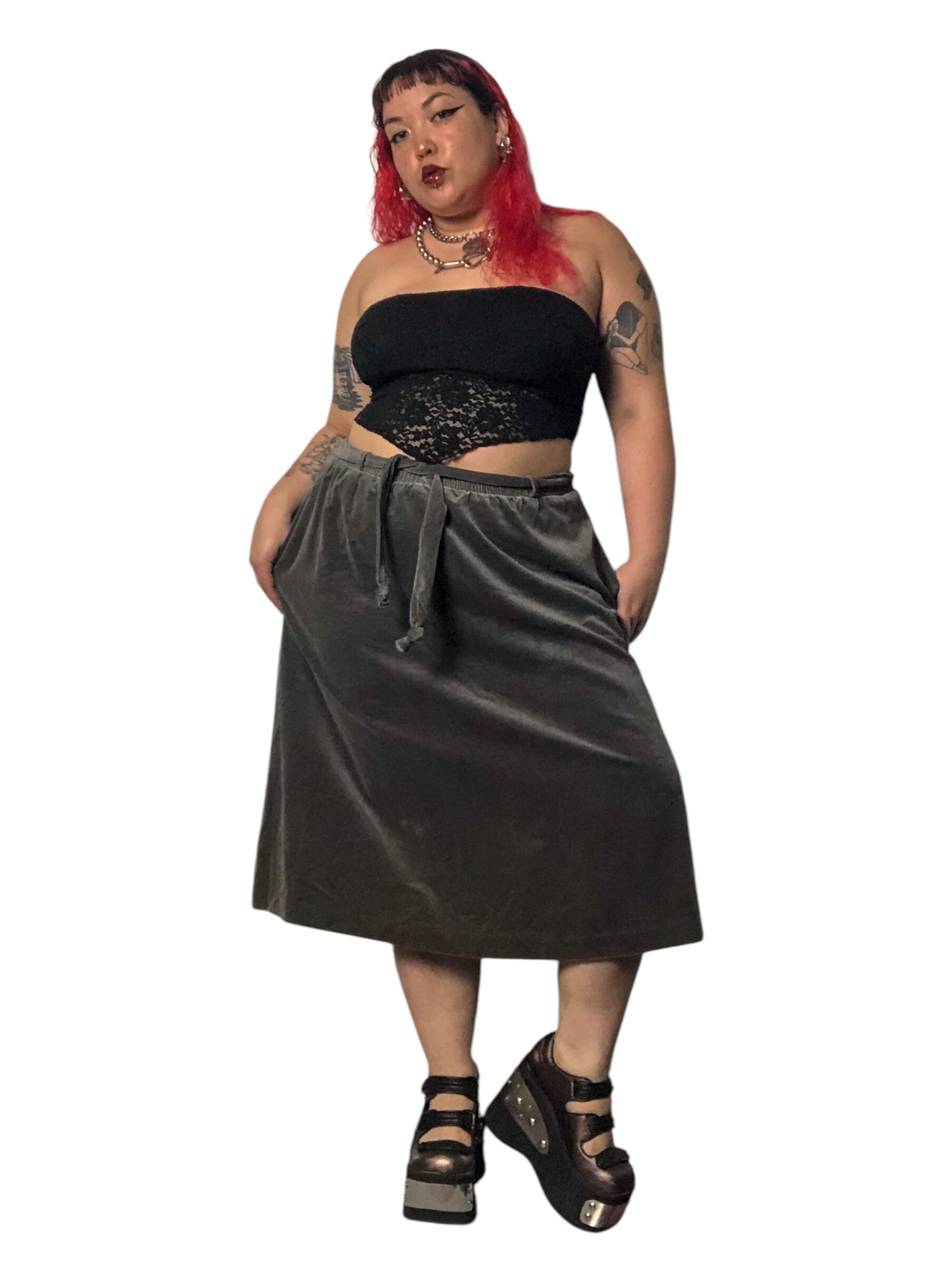 80’s/90’s Tumbleweeds Gray Velvet Skirt (XL/2X/3X)