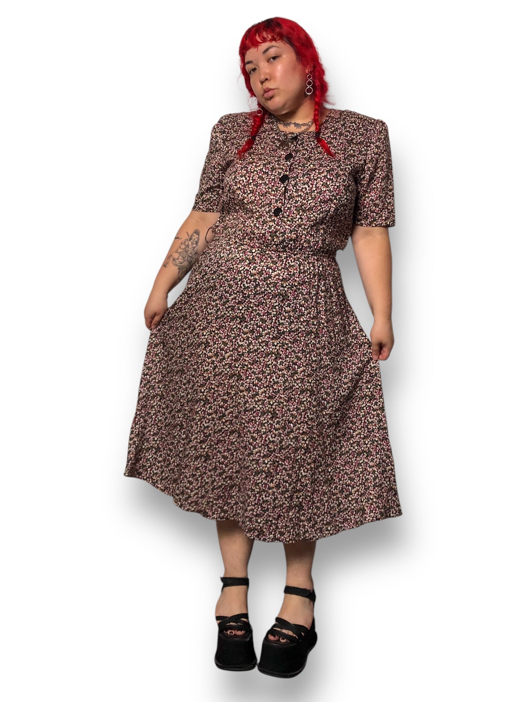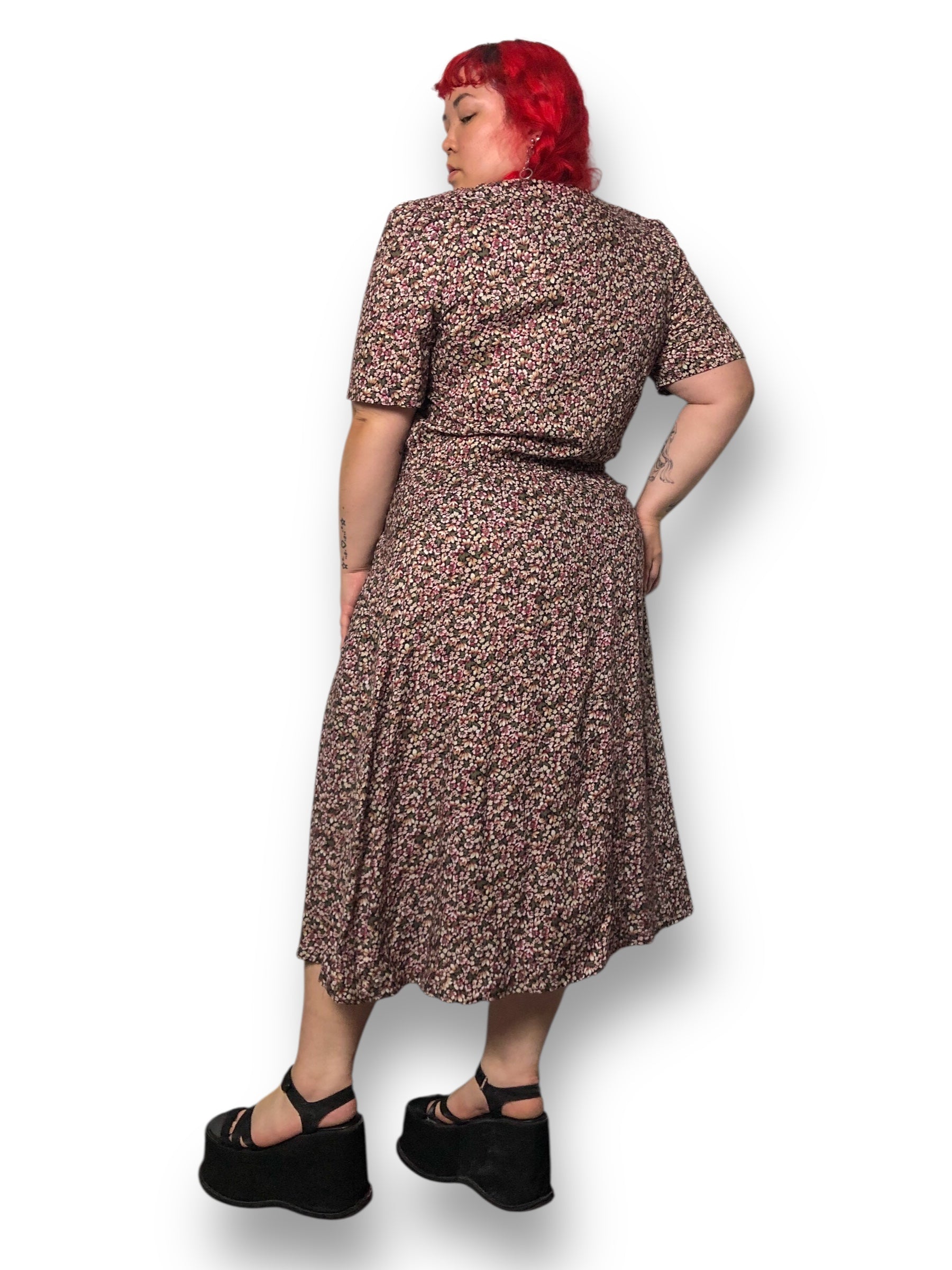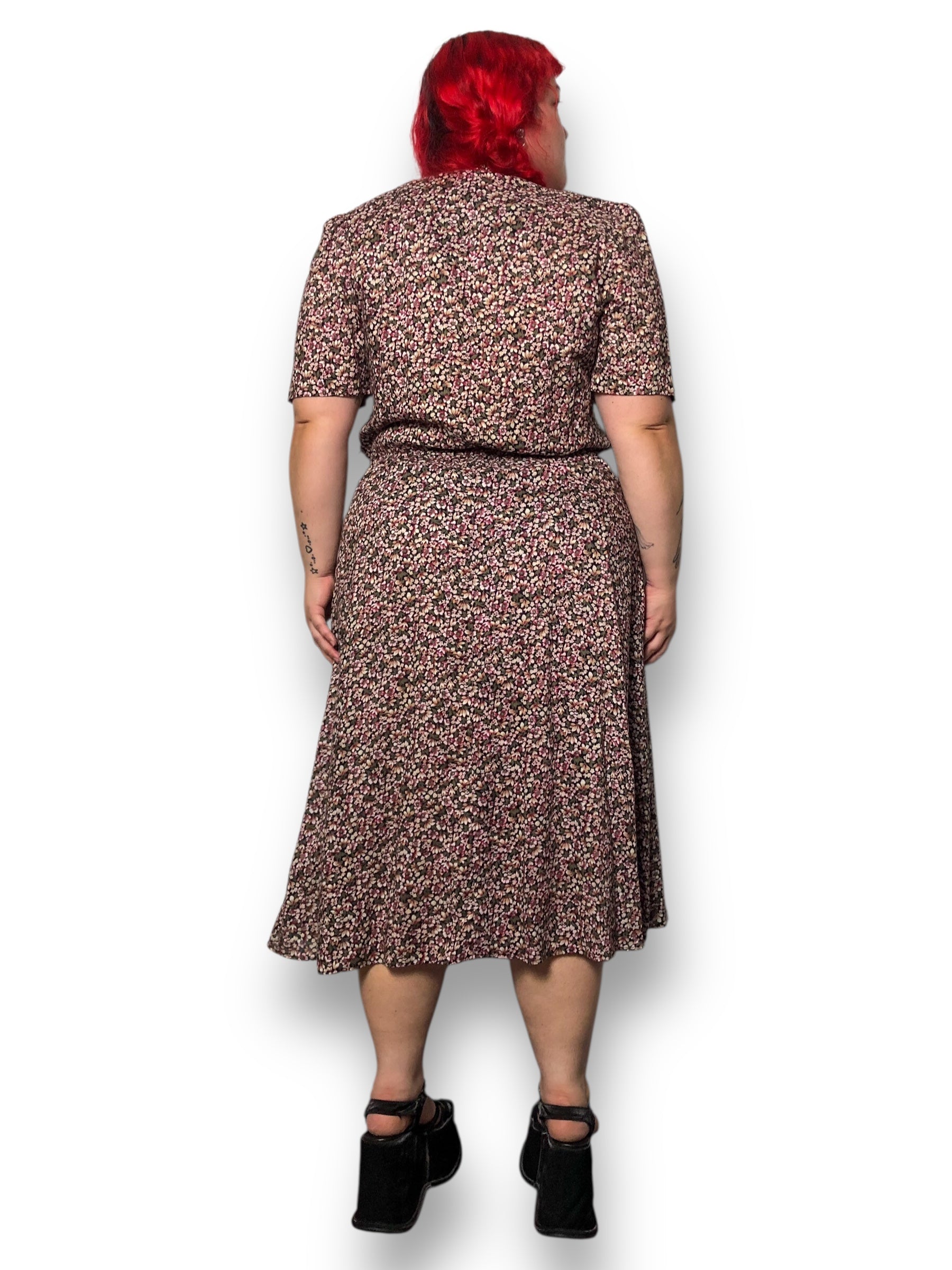 80’s Ms. Basia California Purple Floral Print A-Line Dress (XL)