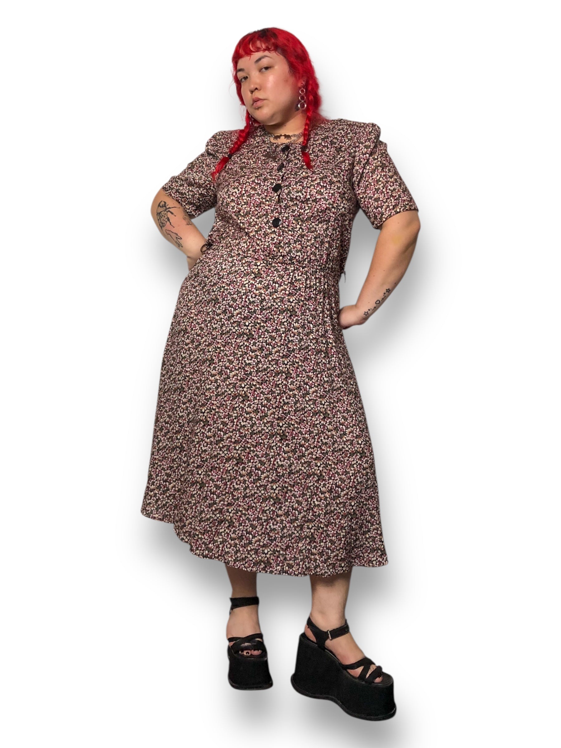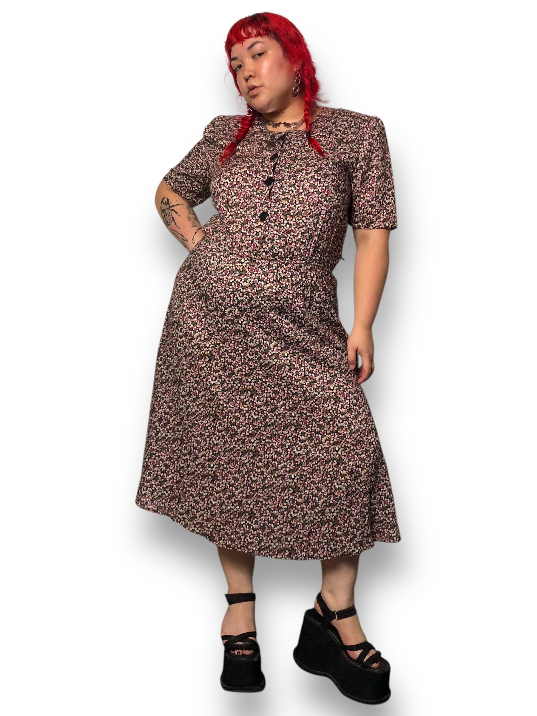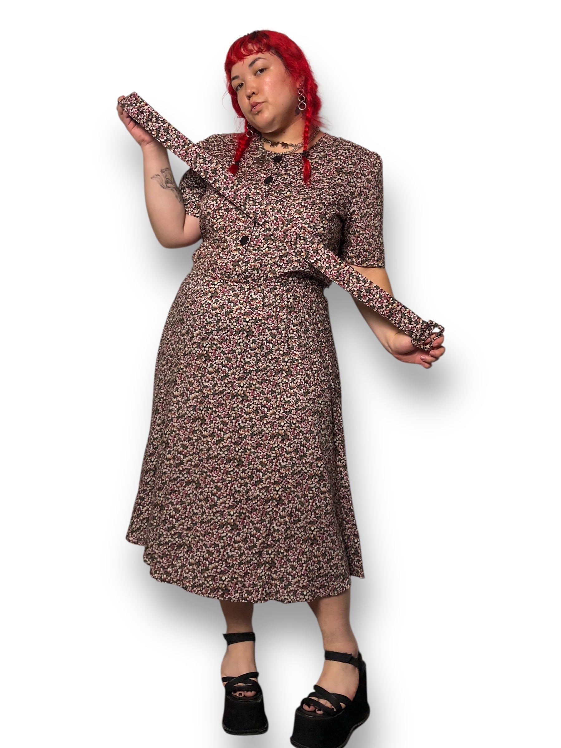 80’s Ms. Basia California Purple Floral Print A-Line Dress (XL)