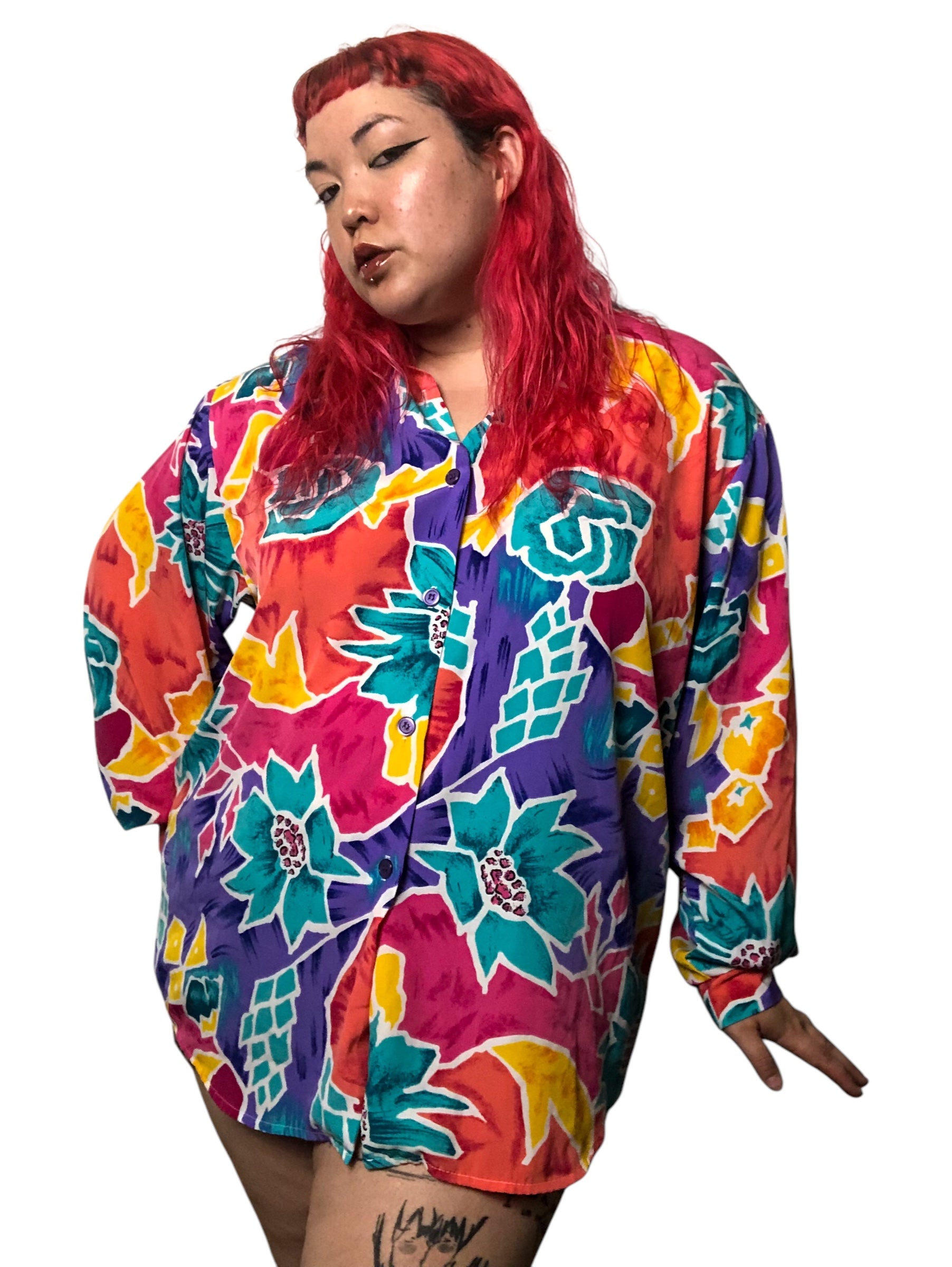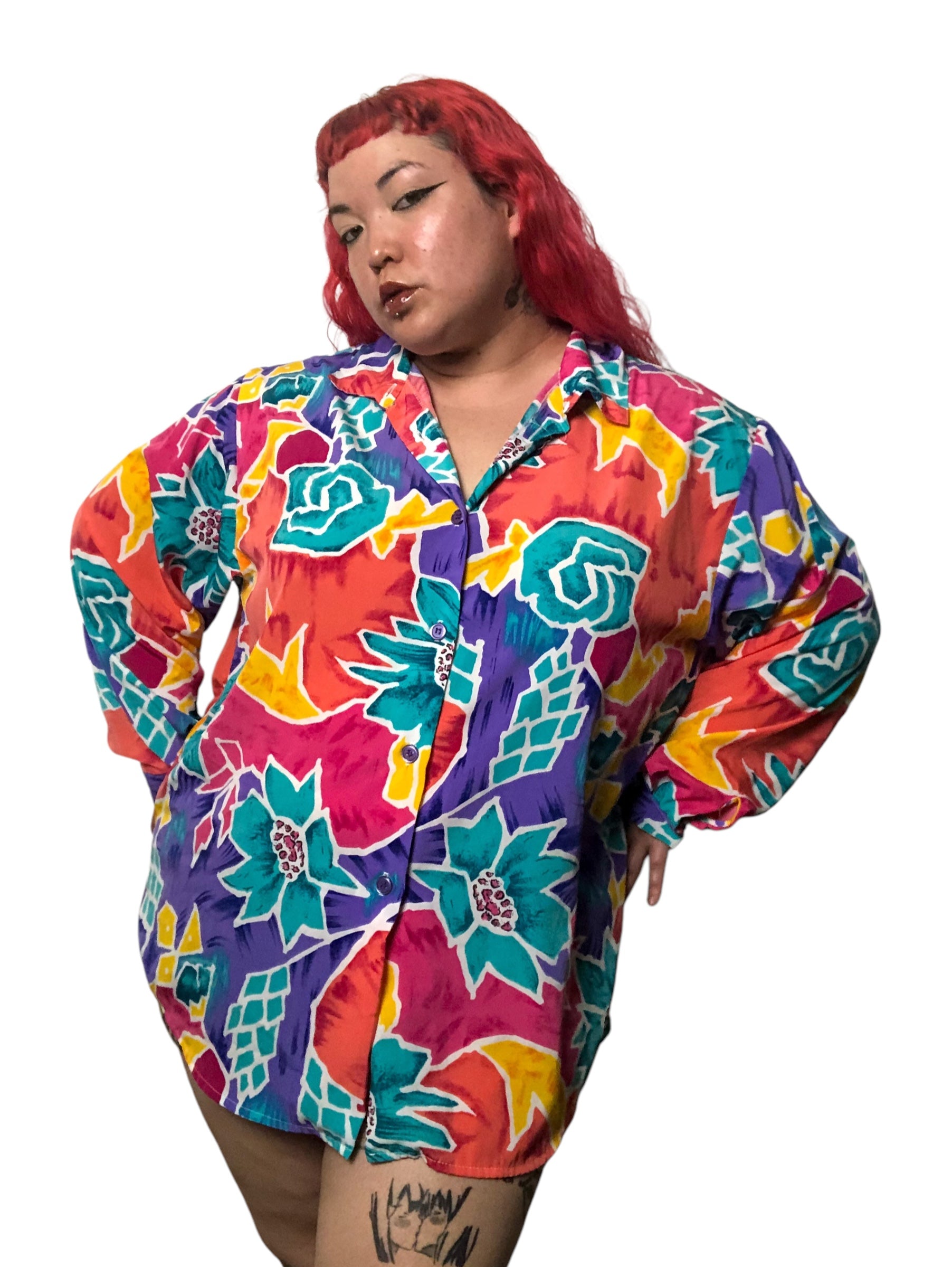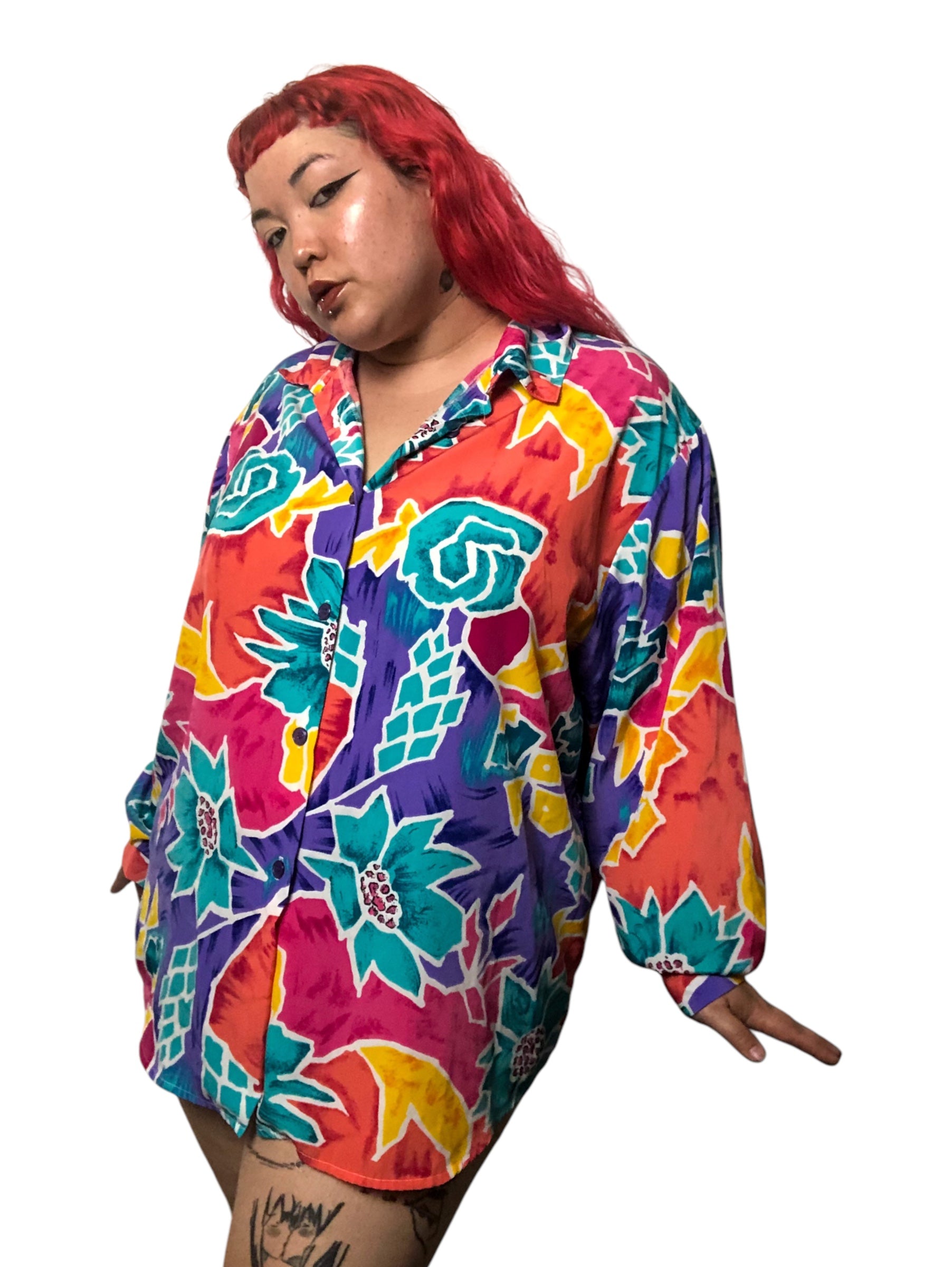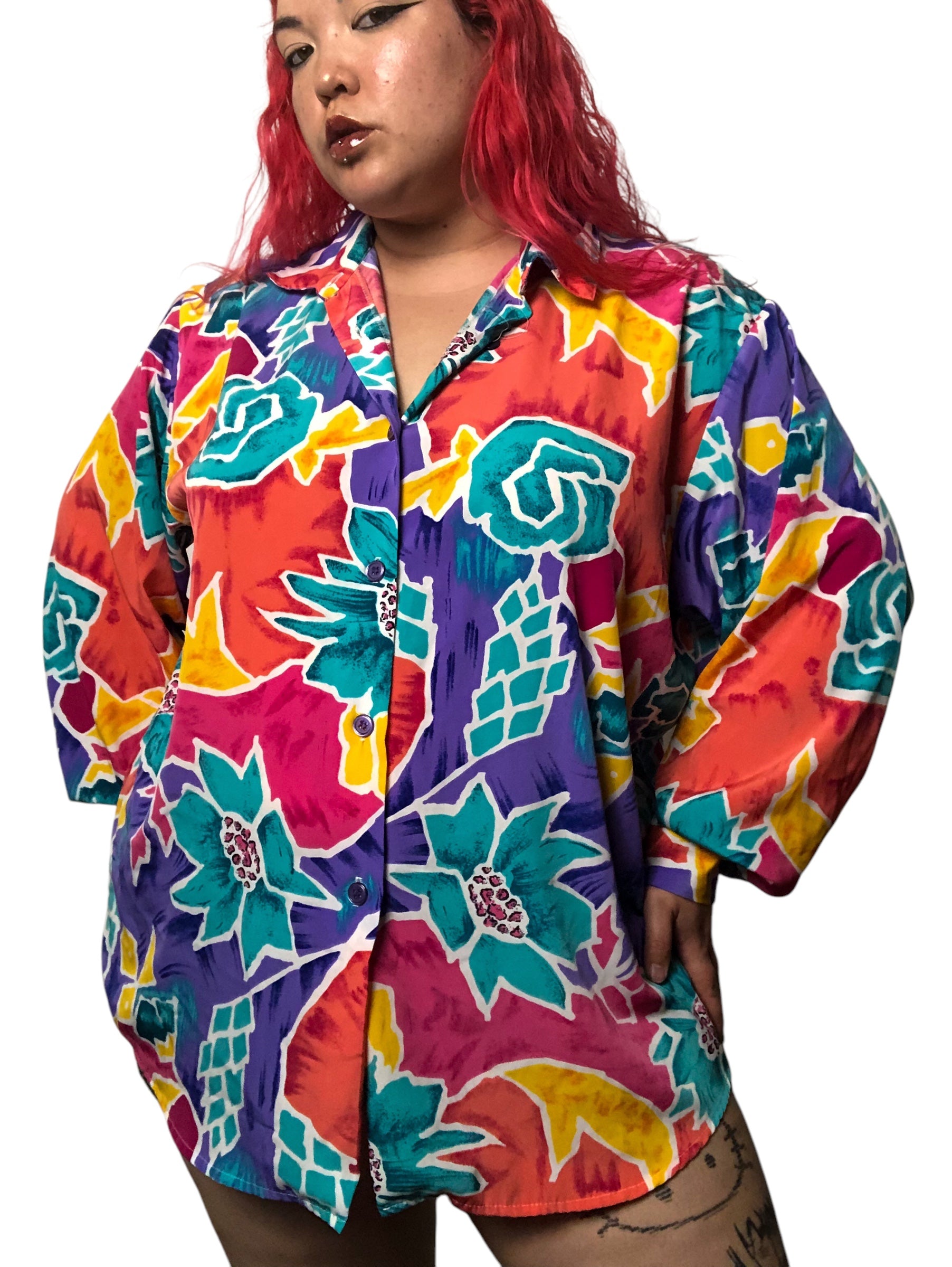 80’s S.G. Sport Colorful Retro Print Blouse (3X)