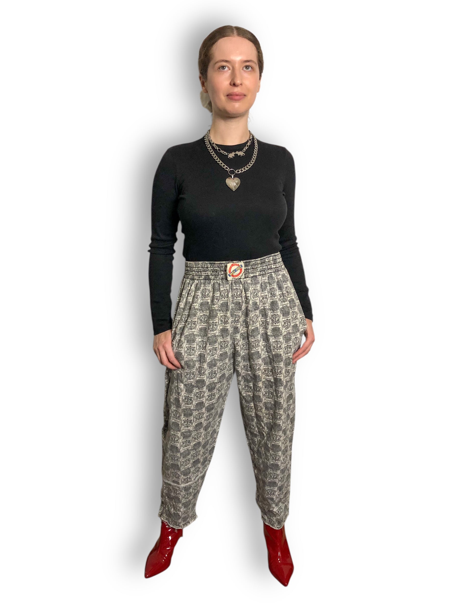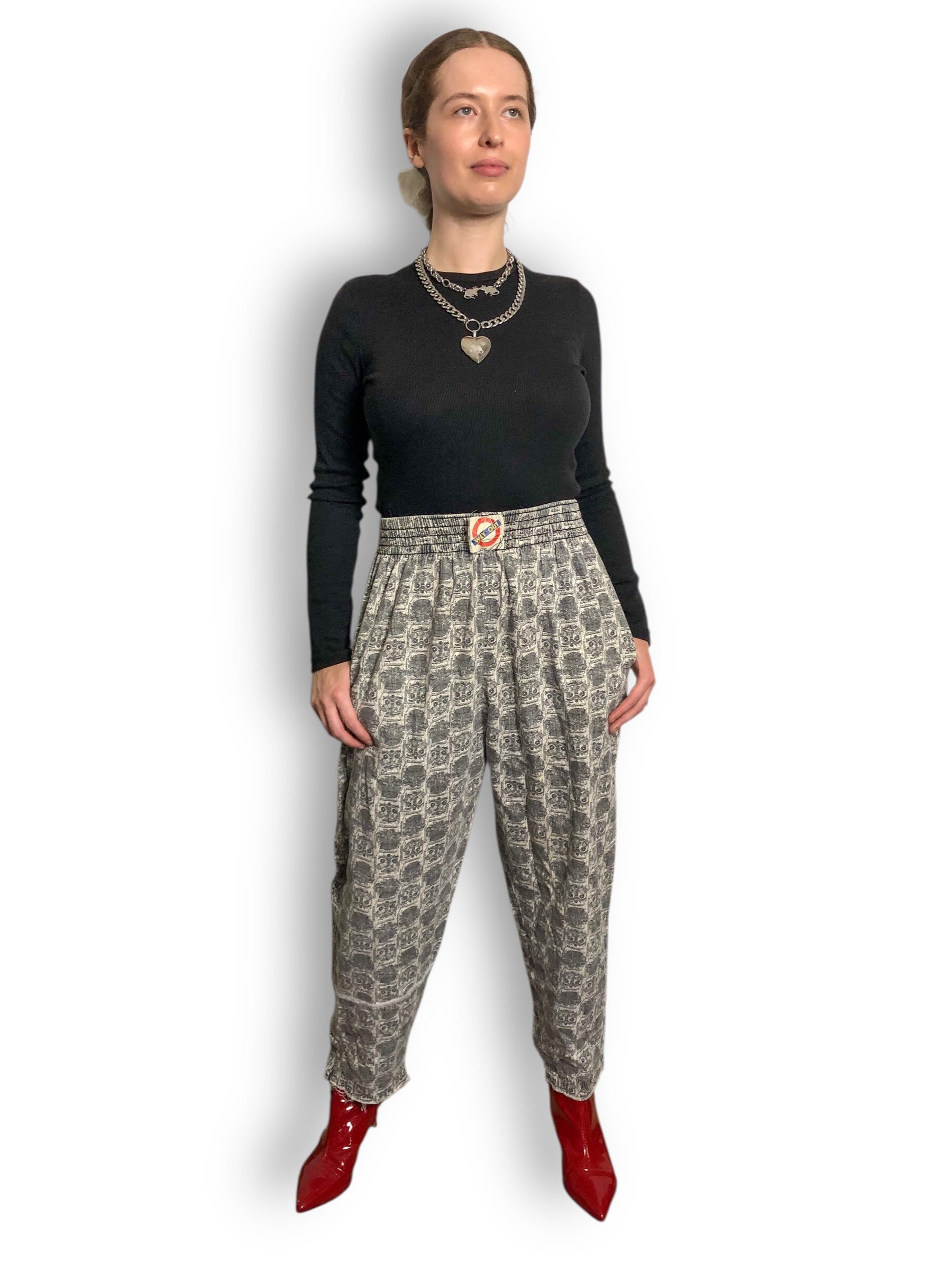 80’s Way Out Gray and White Patterned Pants (M/L)