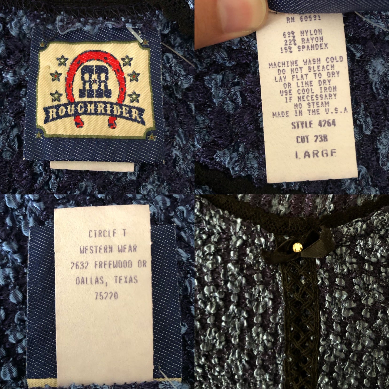 80’s/90’s Rough Rider Midnight Blue Textured Long Sleeve Shirt (L)