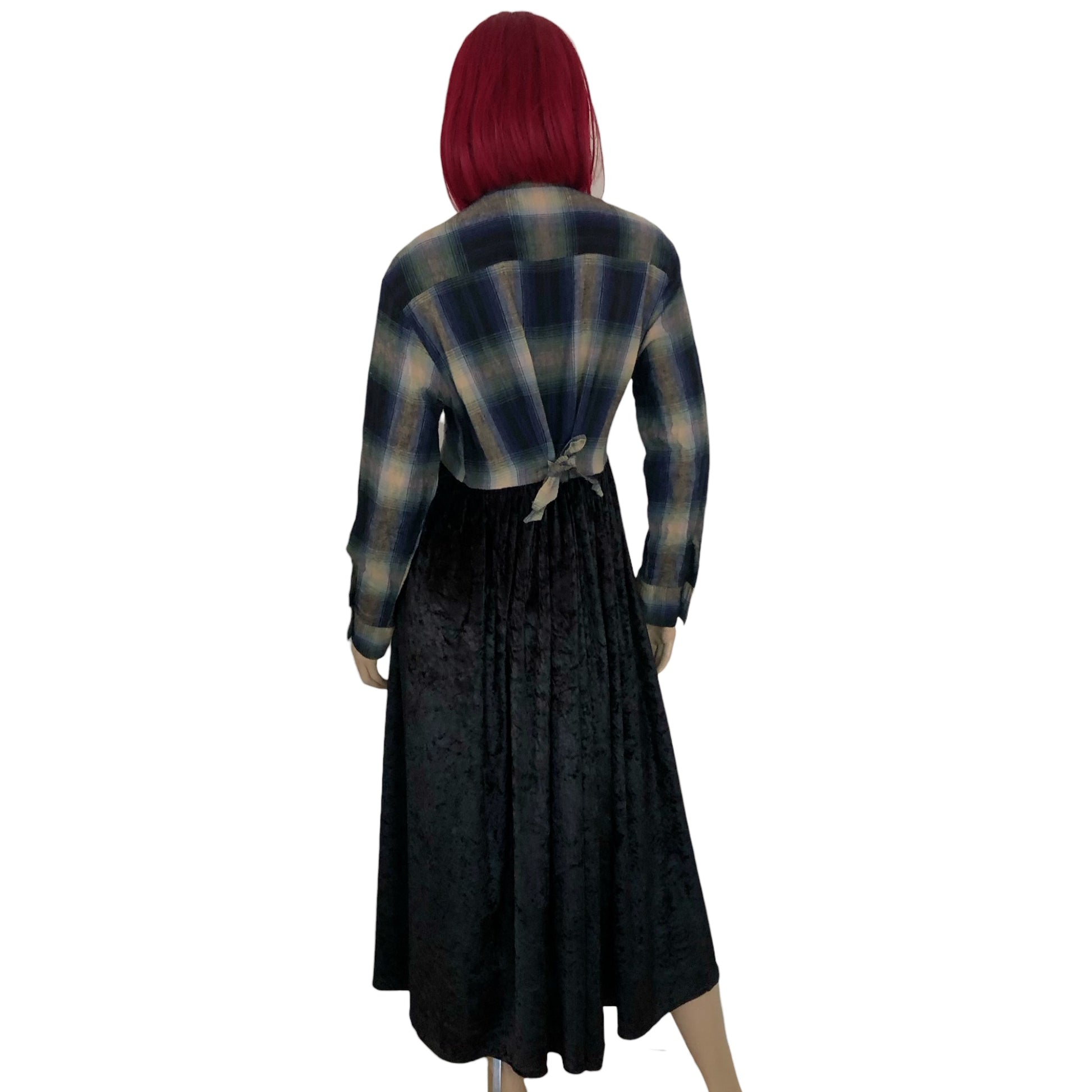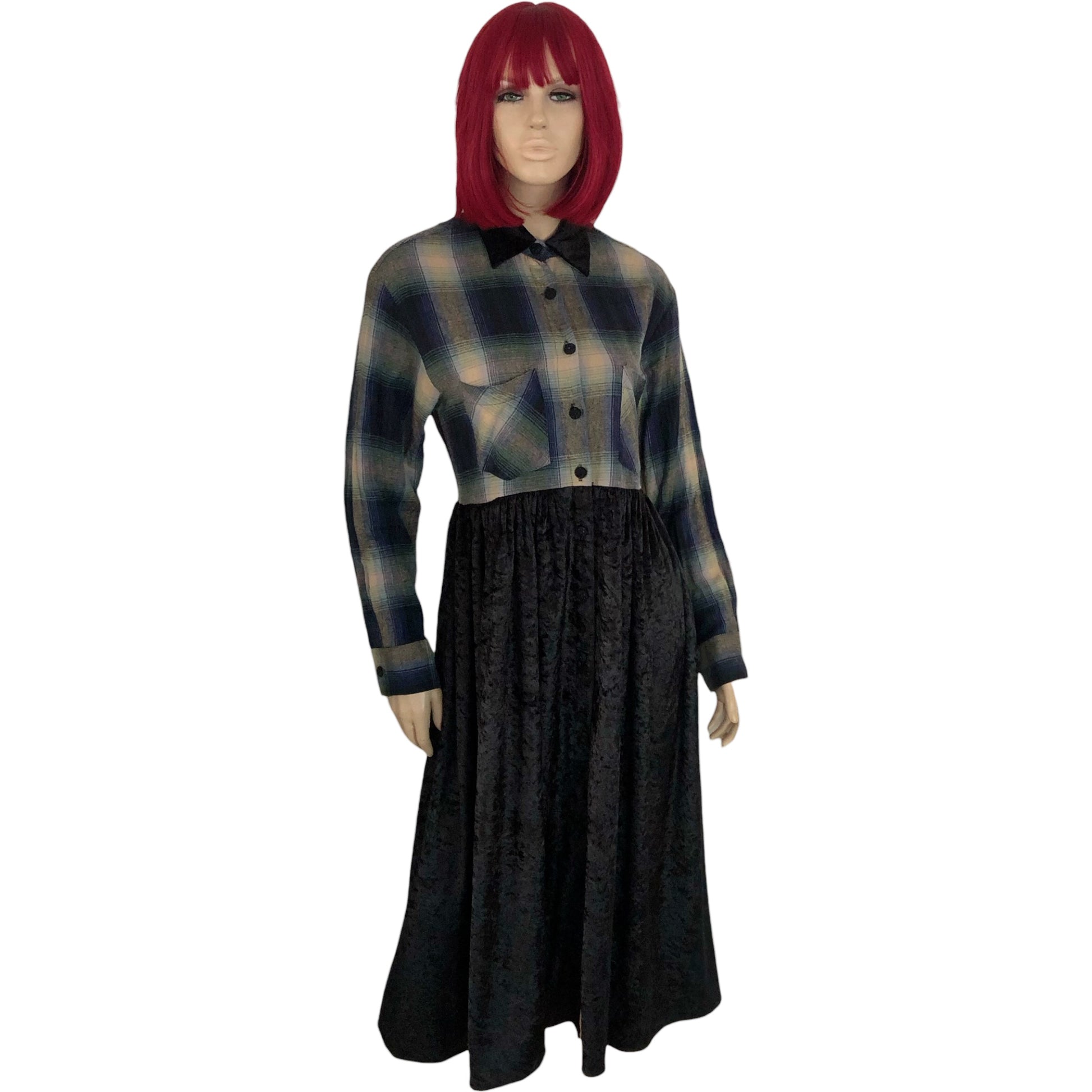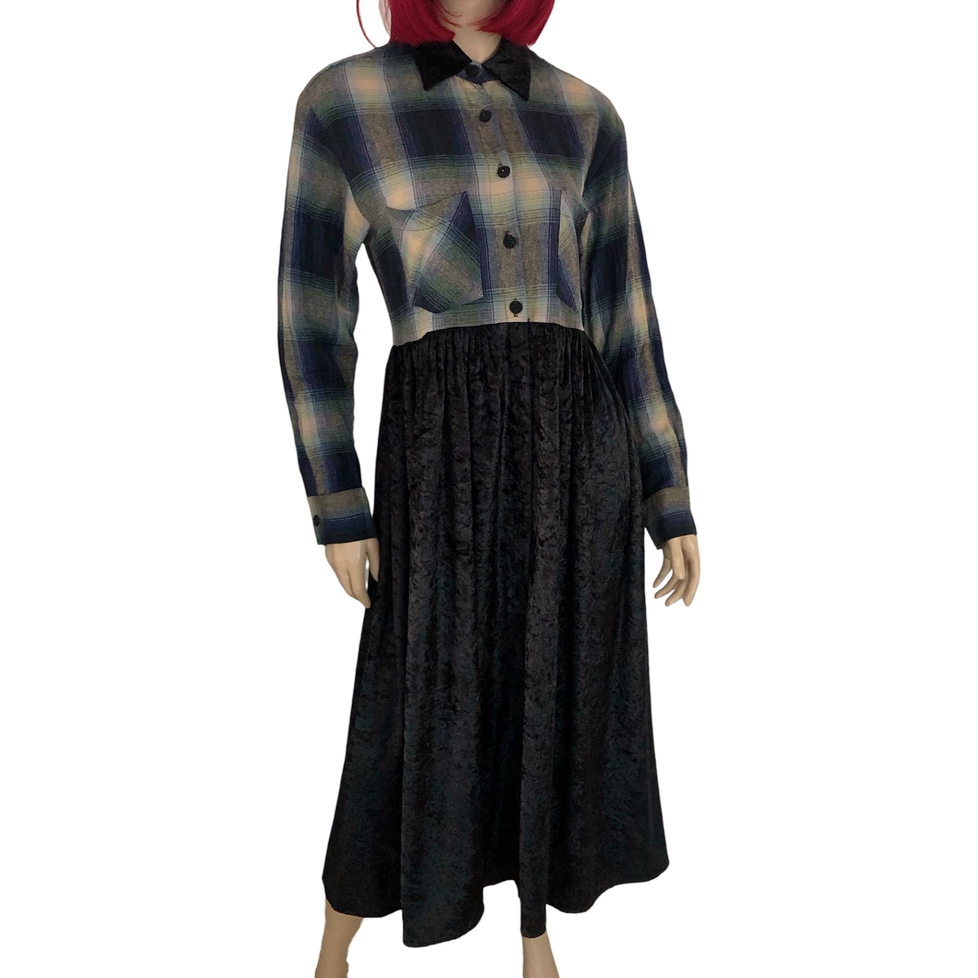 80’s John Roberts Flannel Velvet Mix Maxi Shirt Dress (M/L)