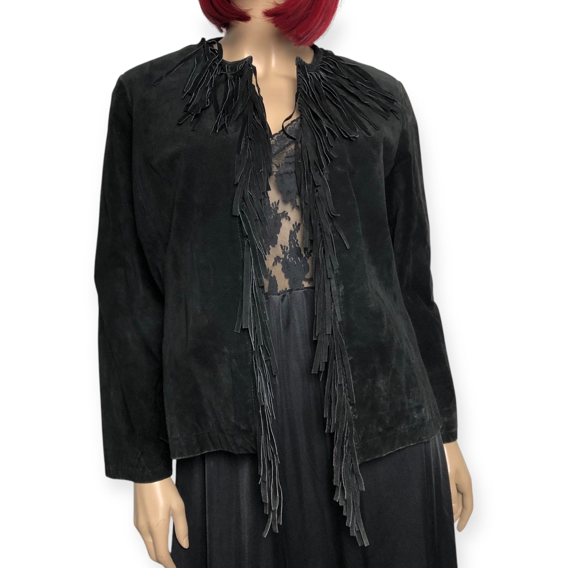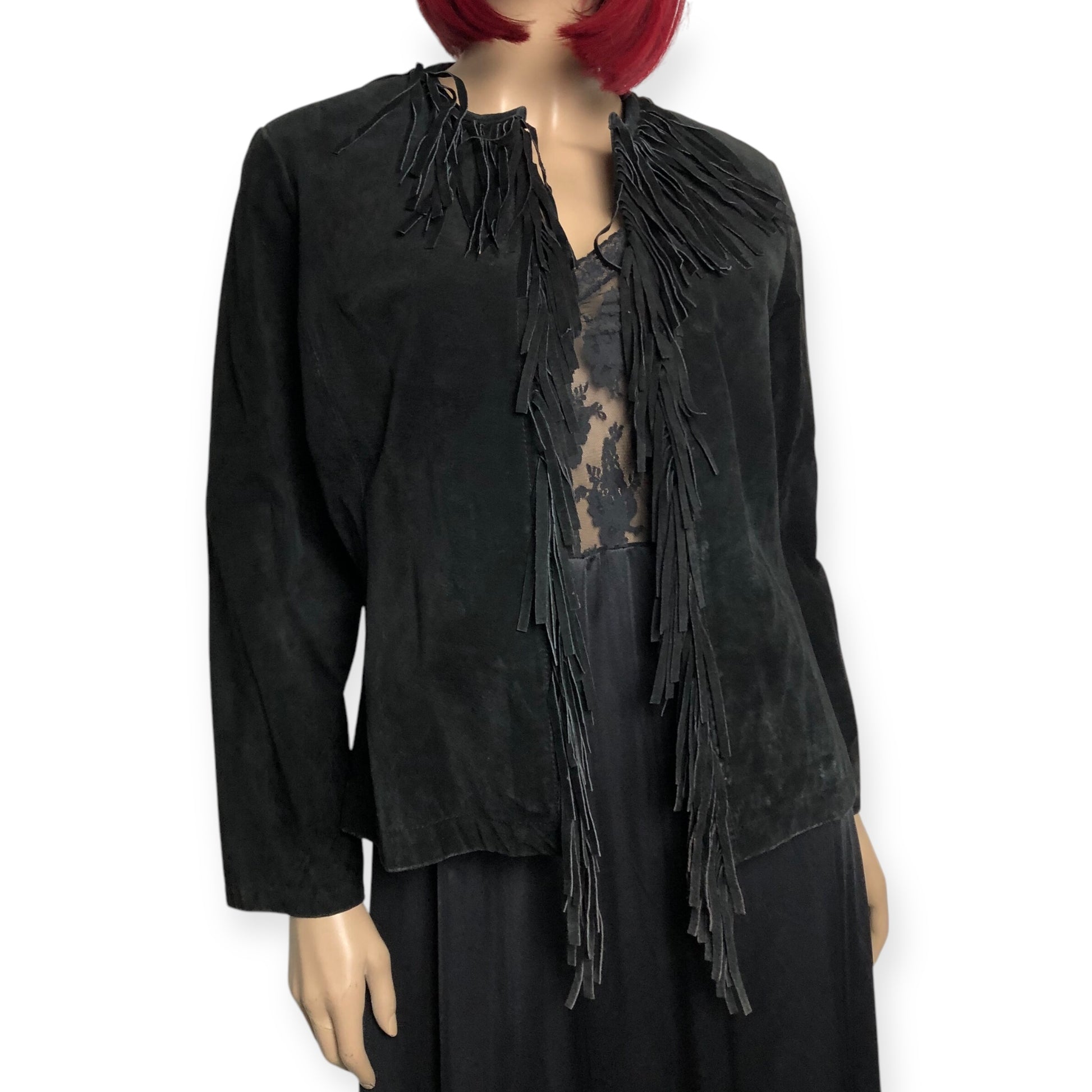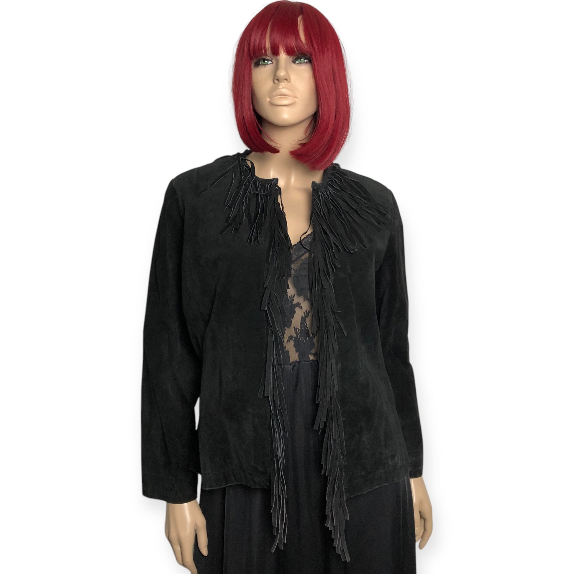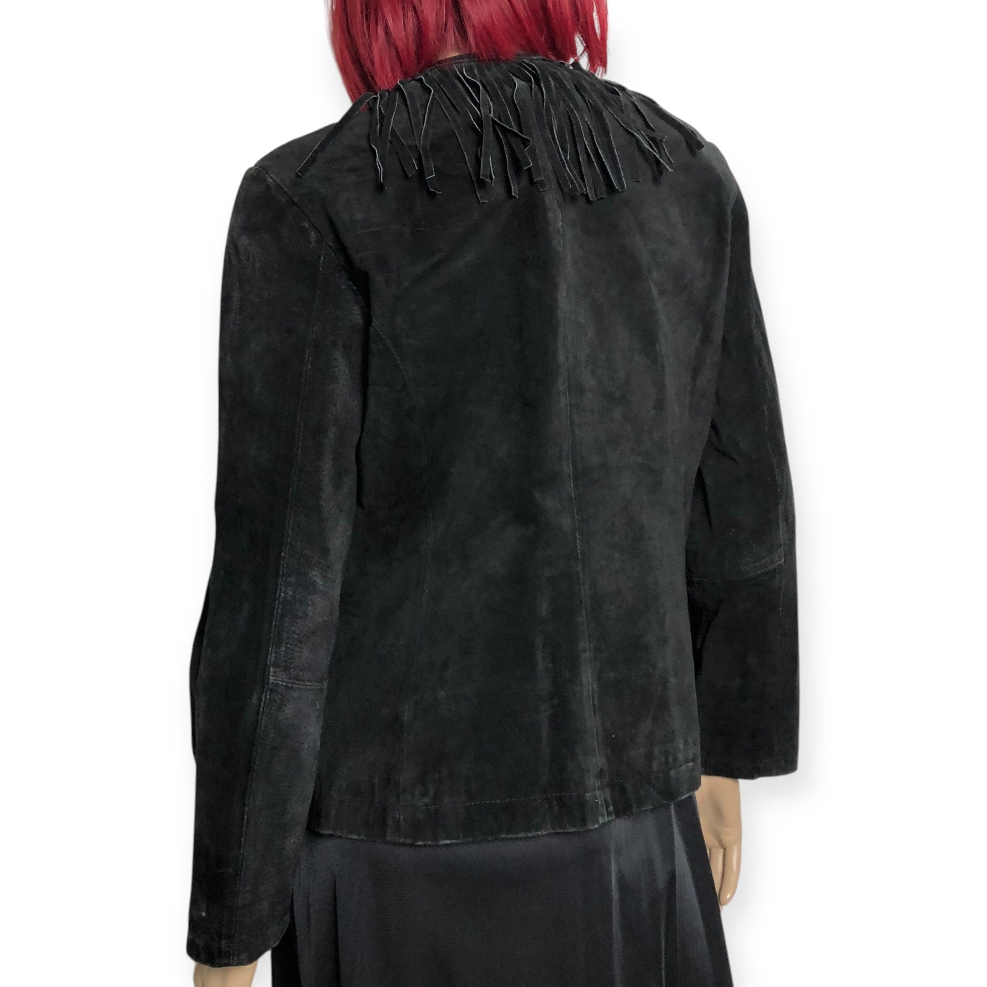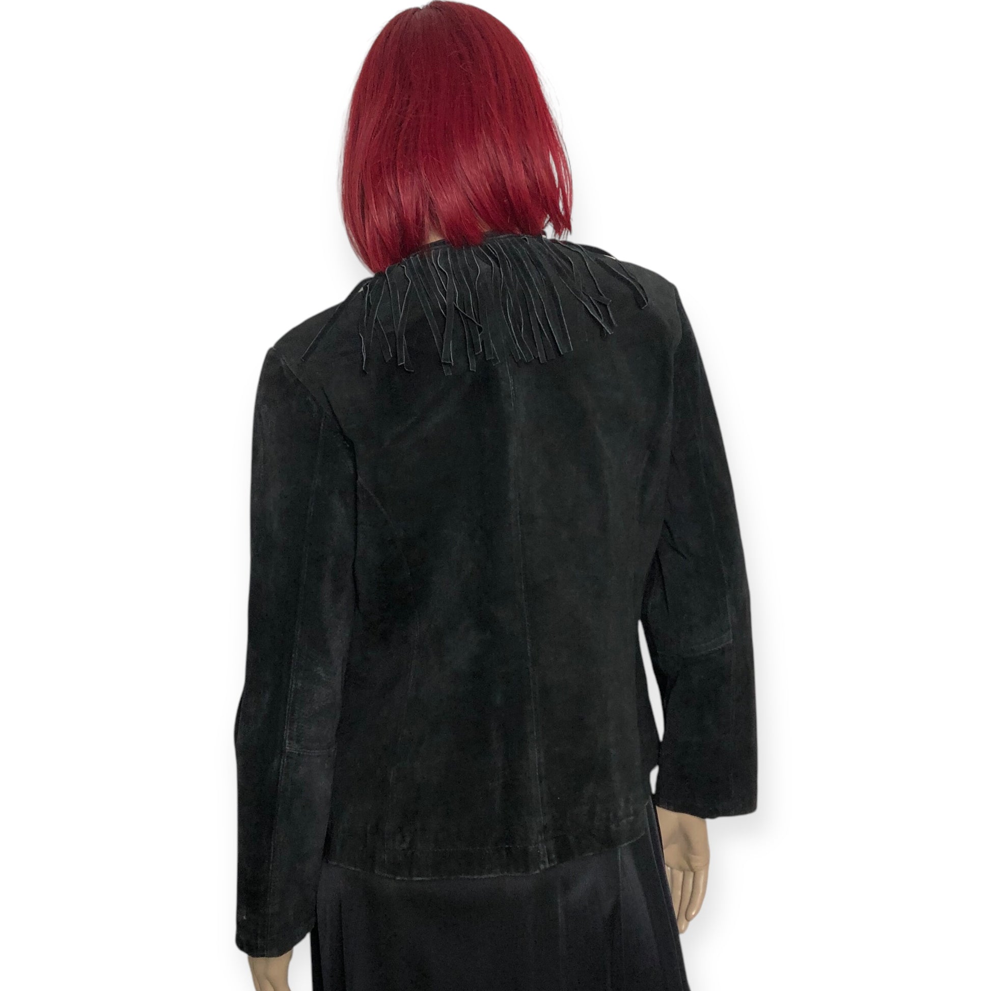 90’s A.M.I. Black Fringe Leather Jacket (L)