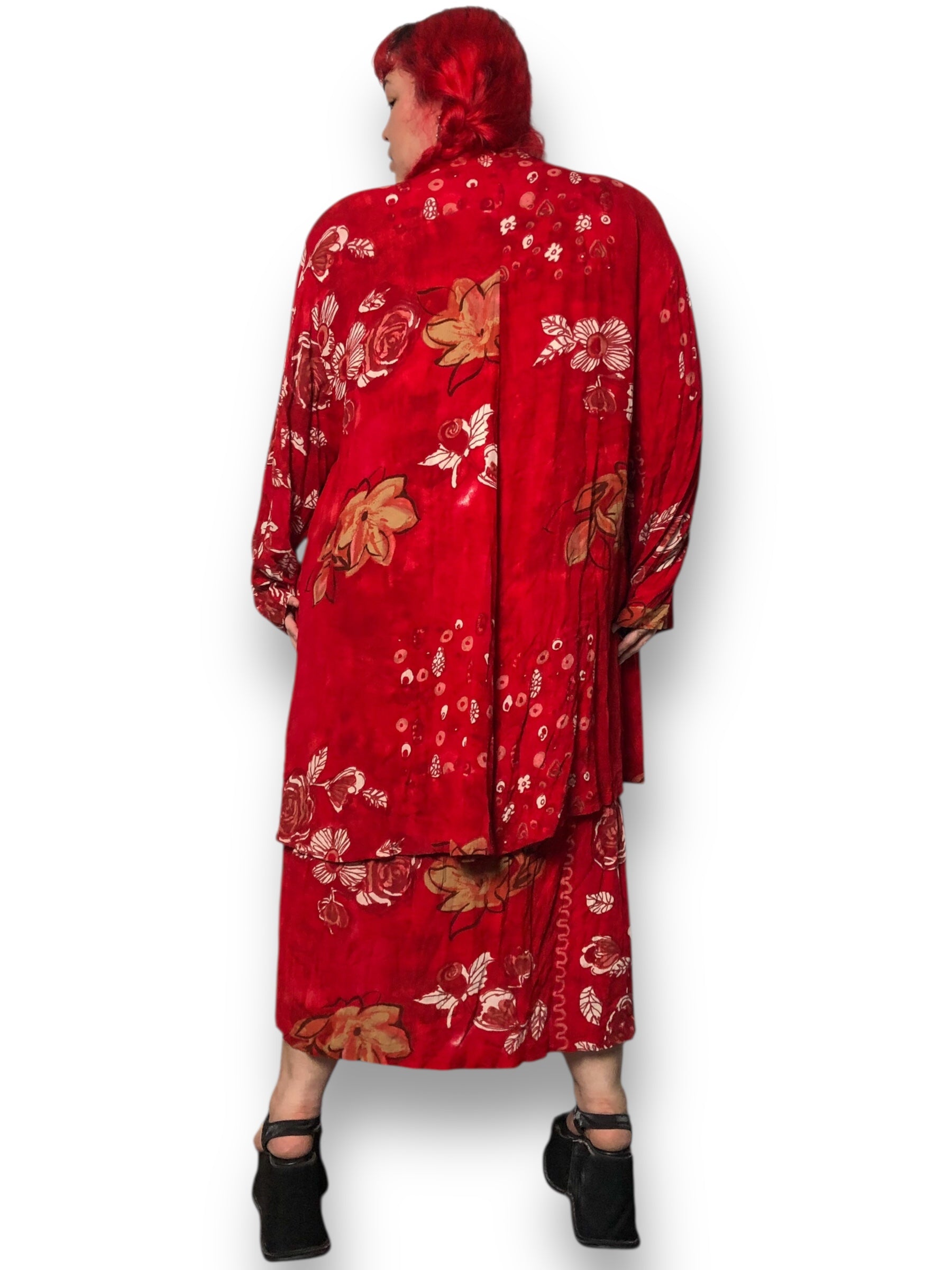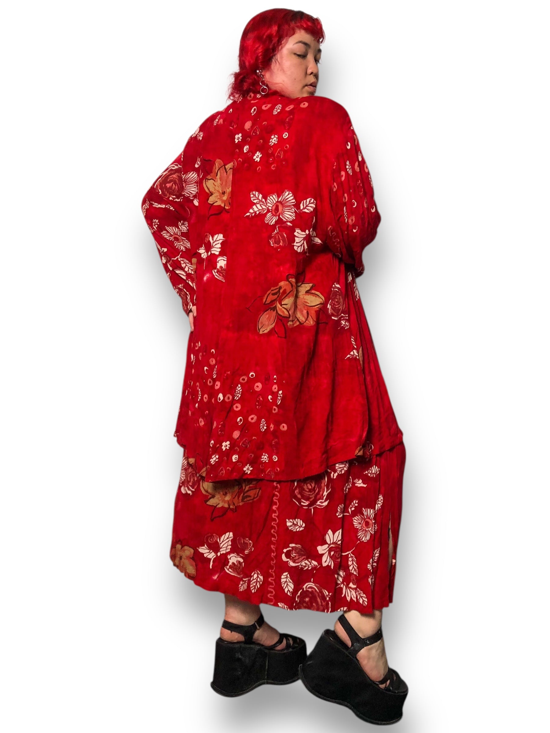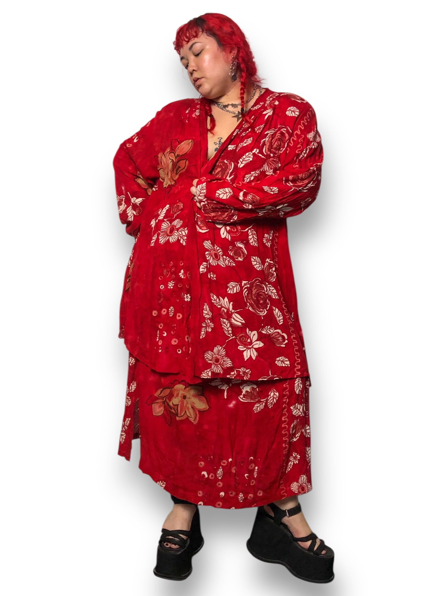90’s August Max Woman Red Floral Print 2-Piece Set (2X)