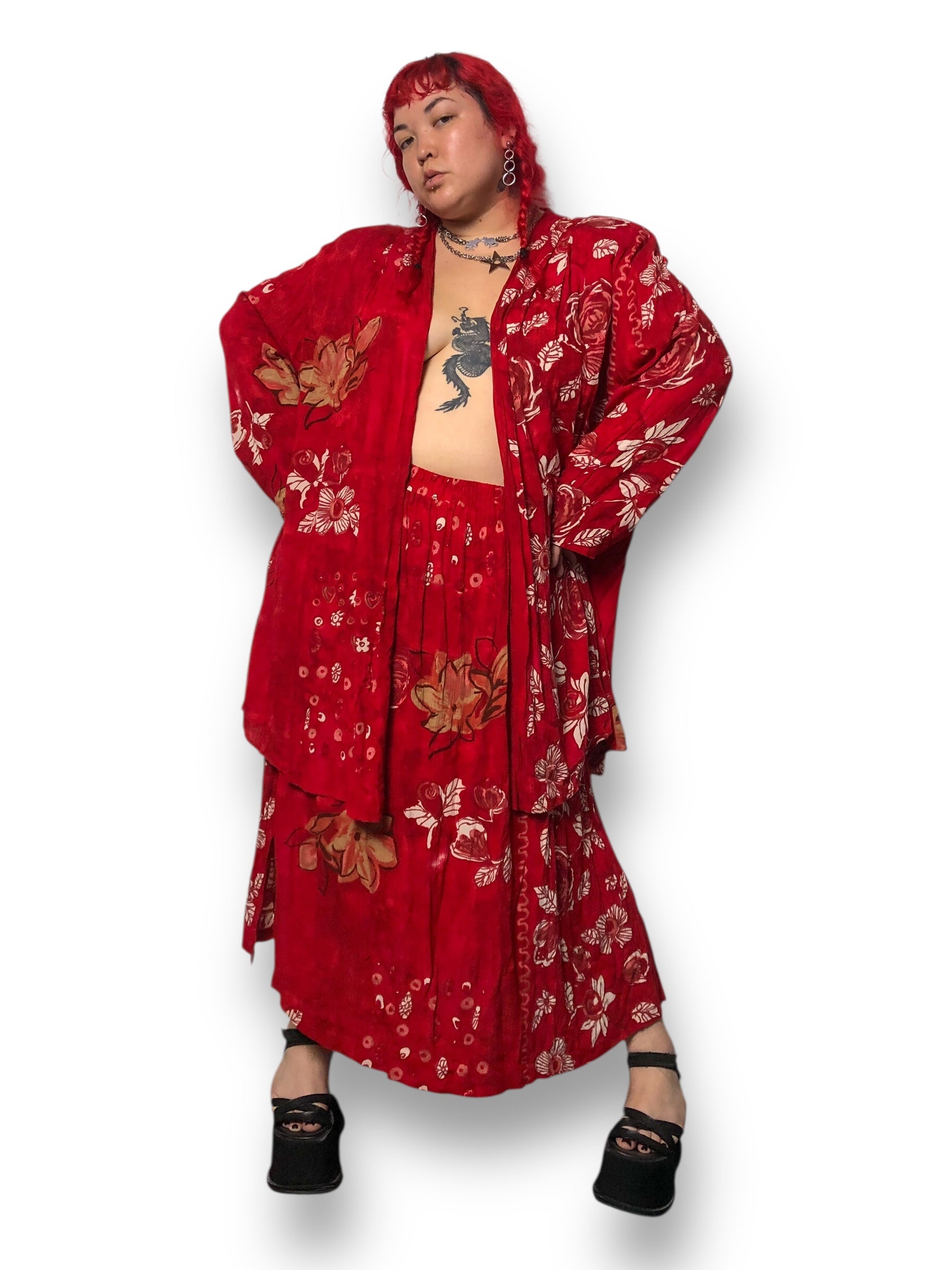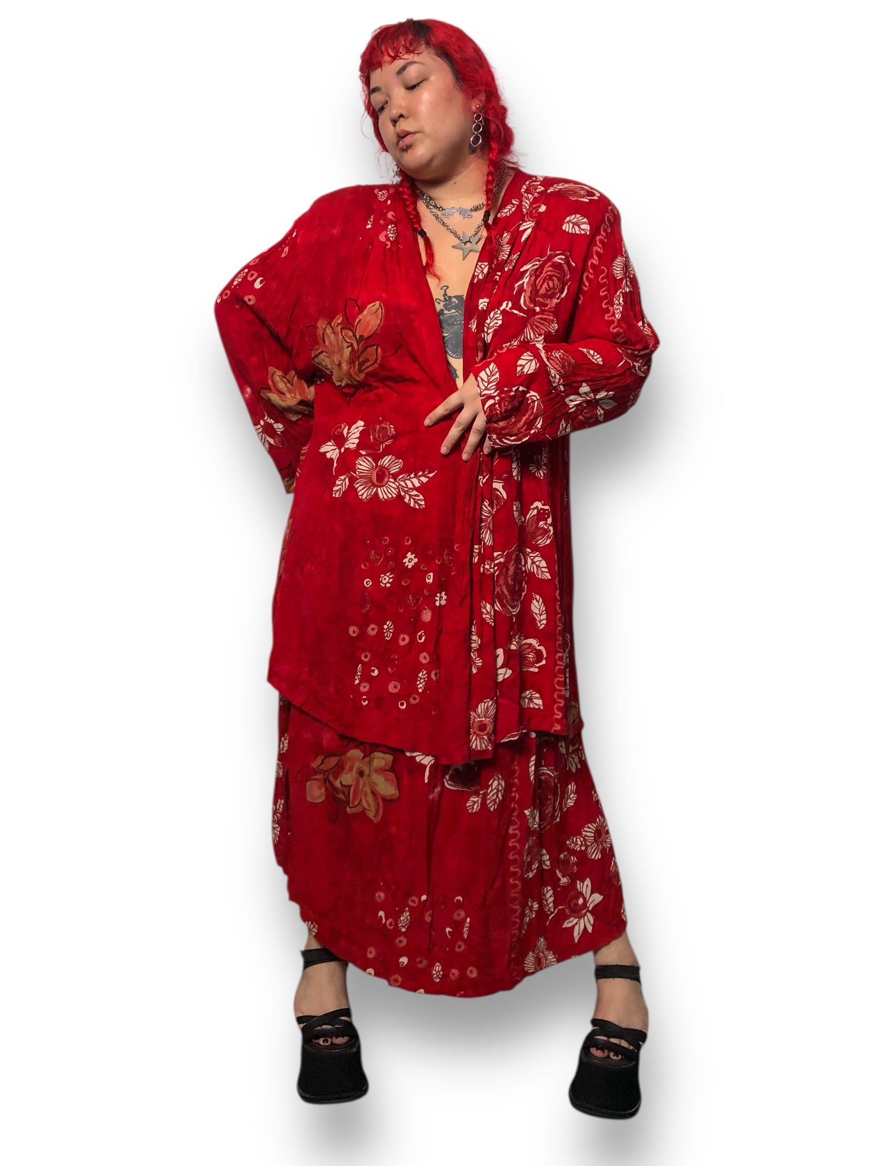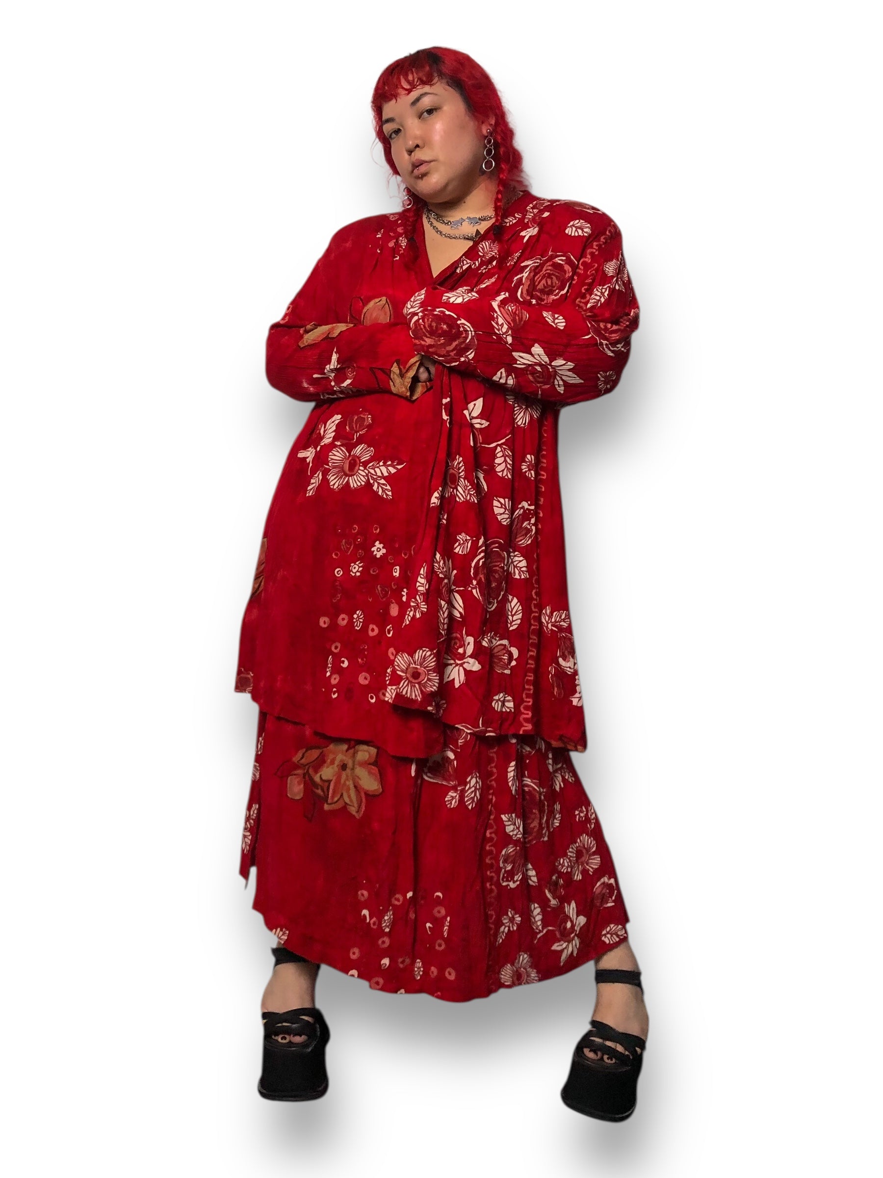 90’s August Max Woman Red Floral Print 2-Piece Set (2X)