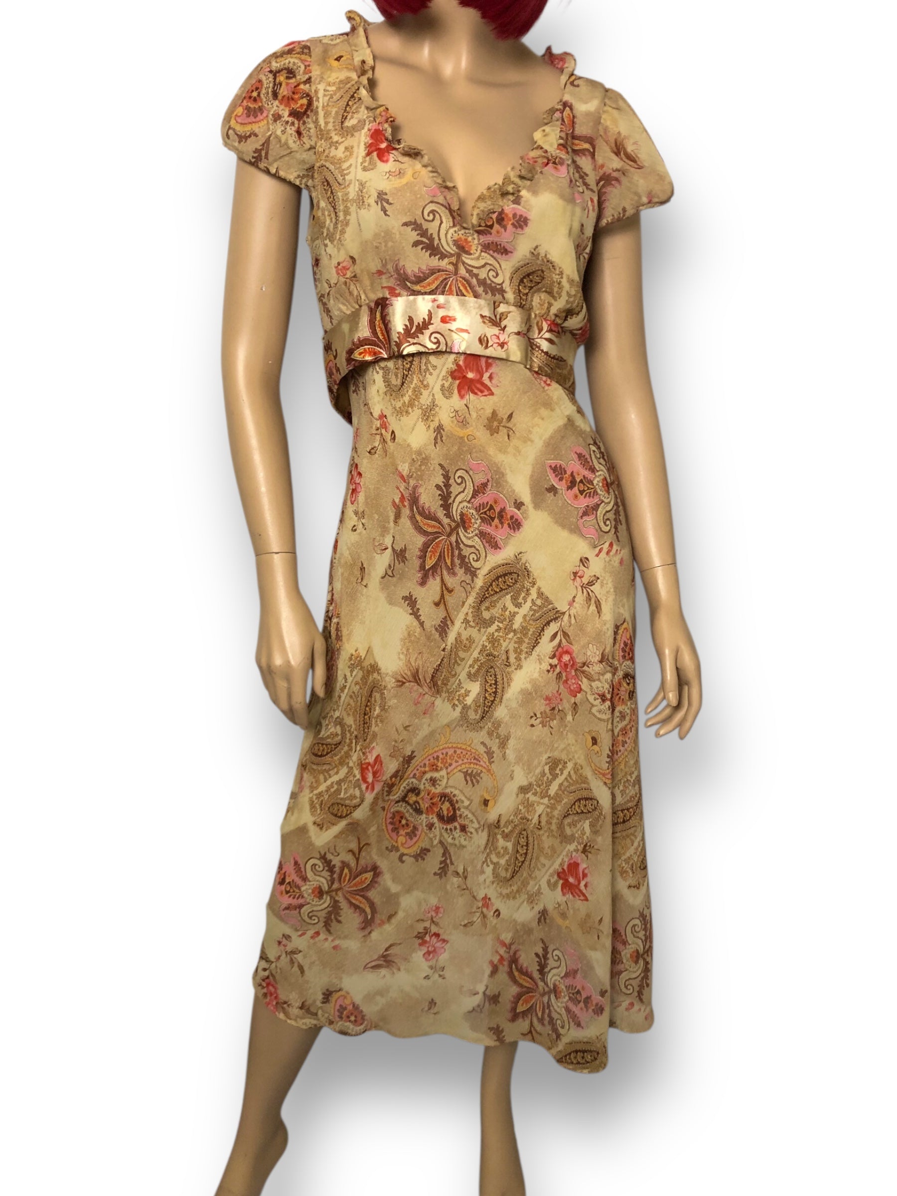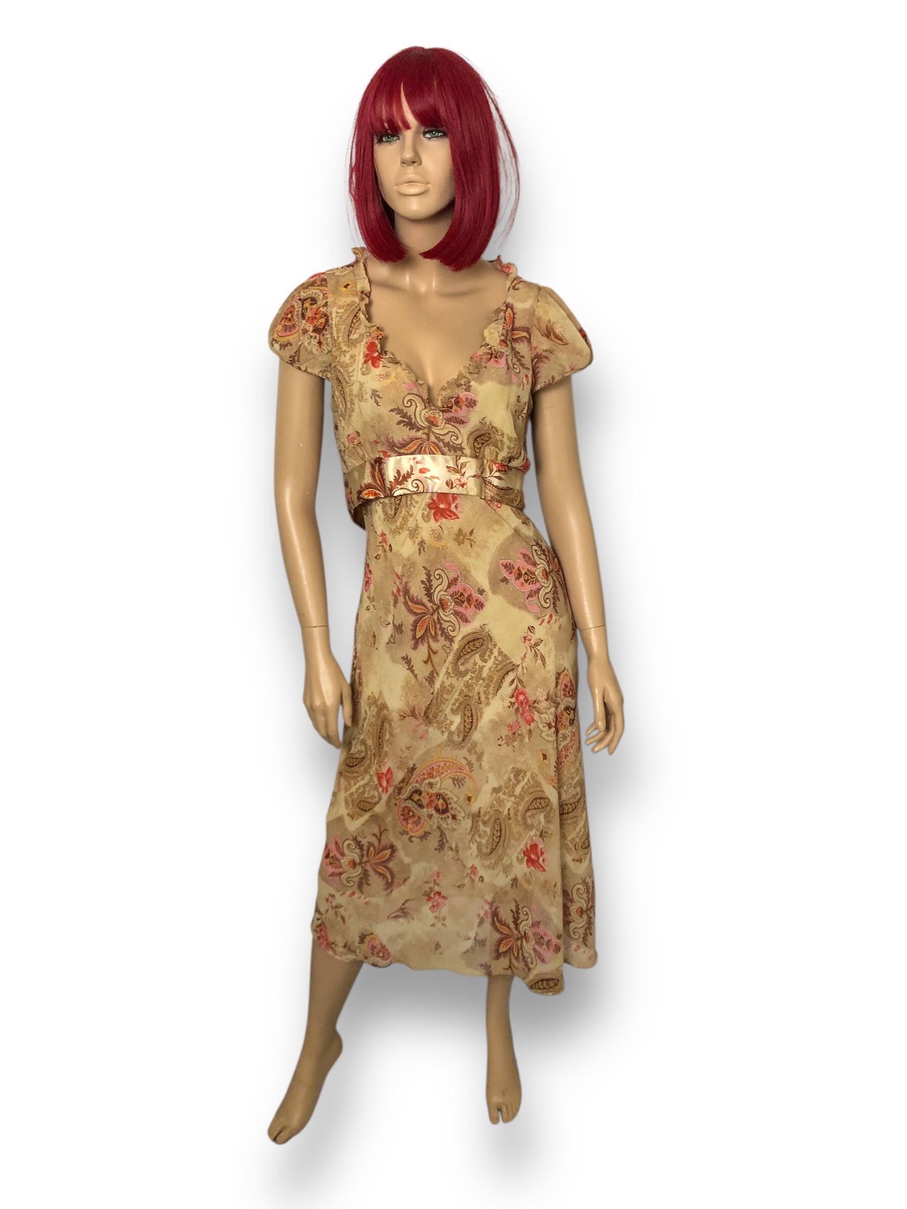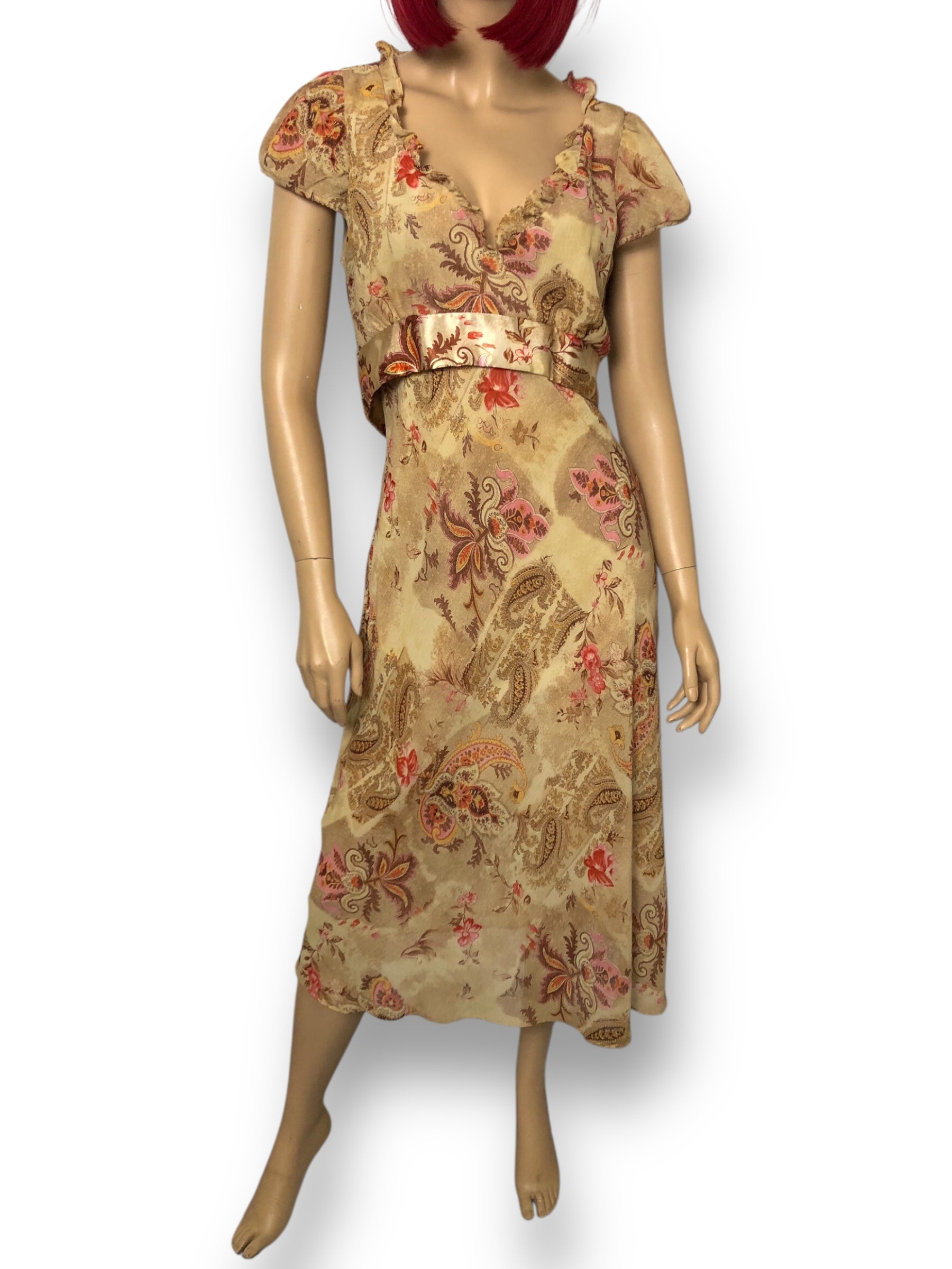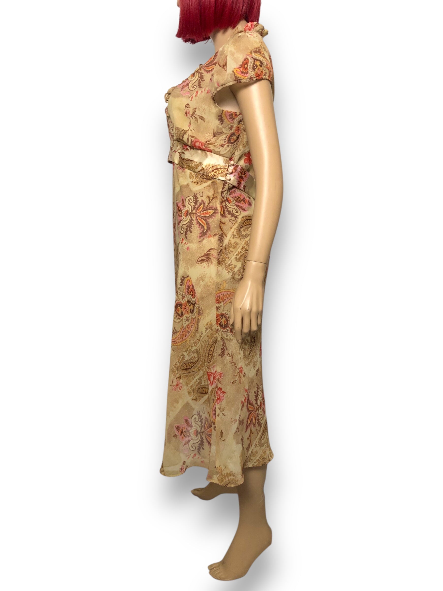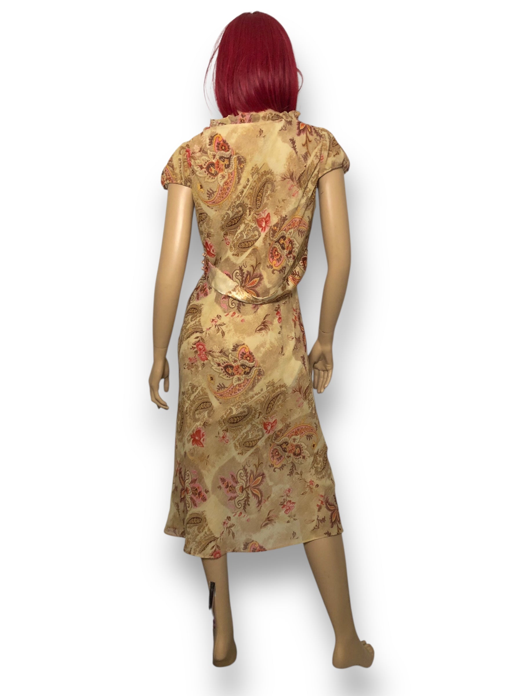 90’s CDC Tan Paisley Floral Midi Dress (XL)
