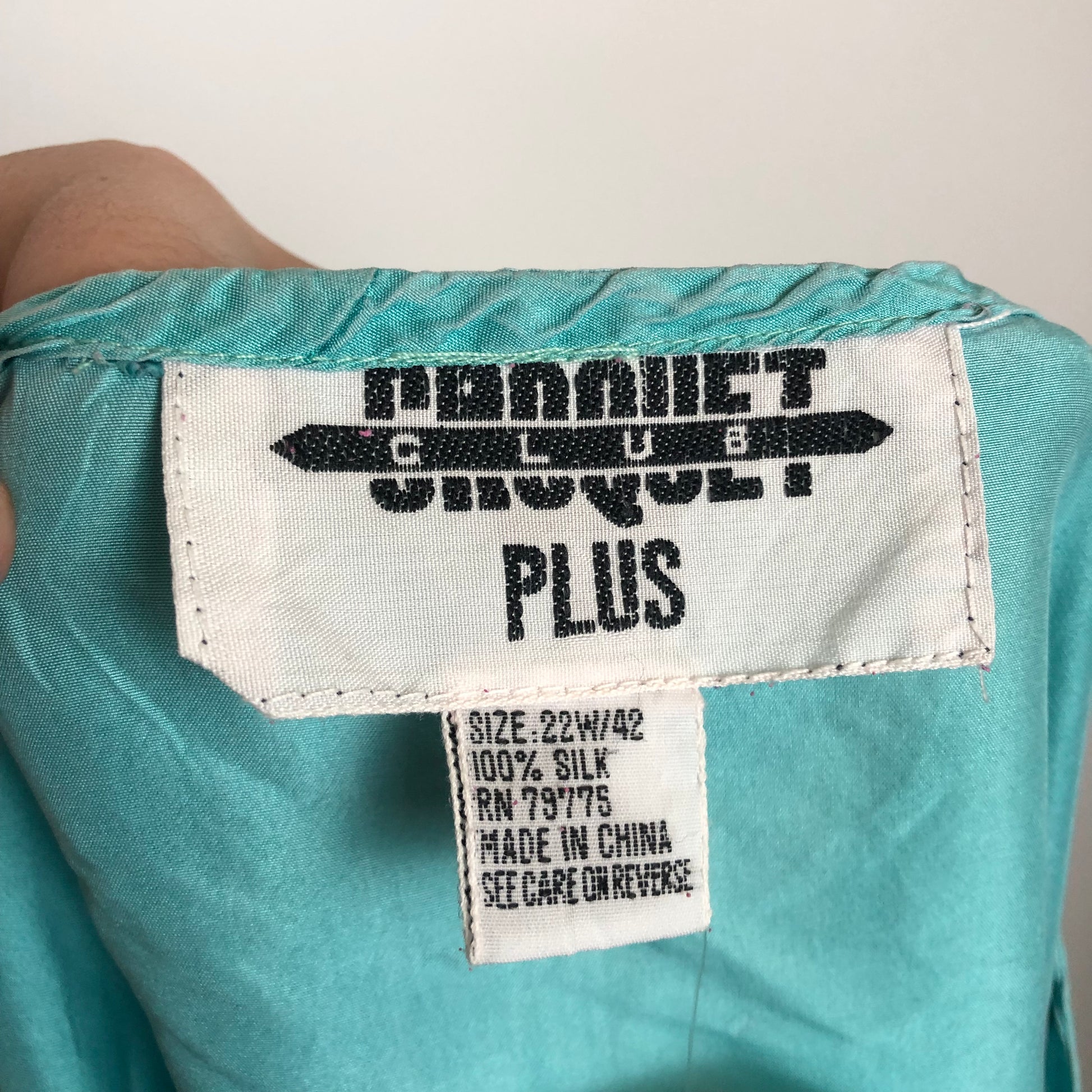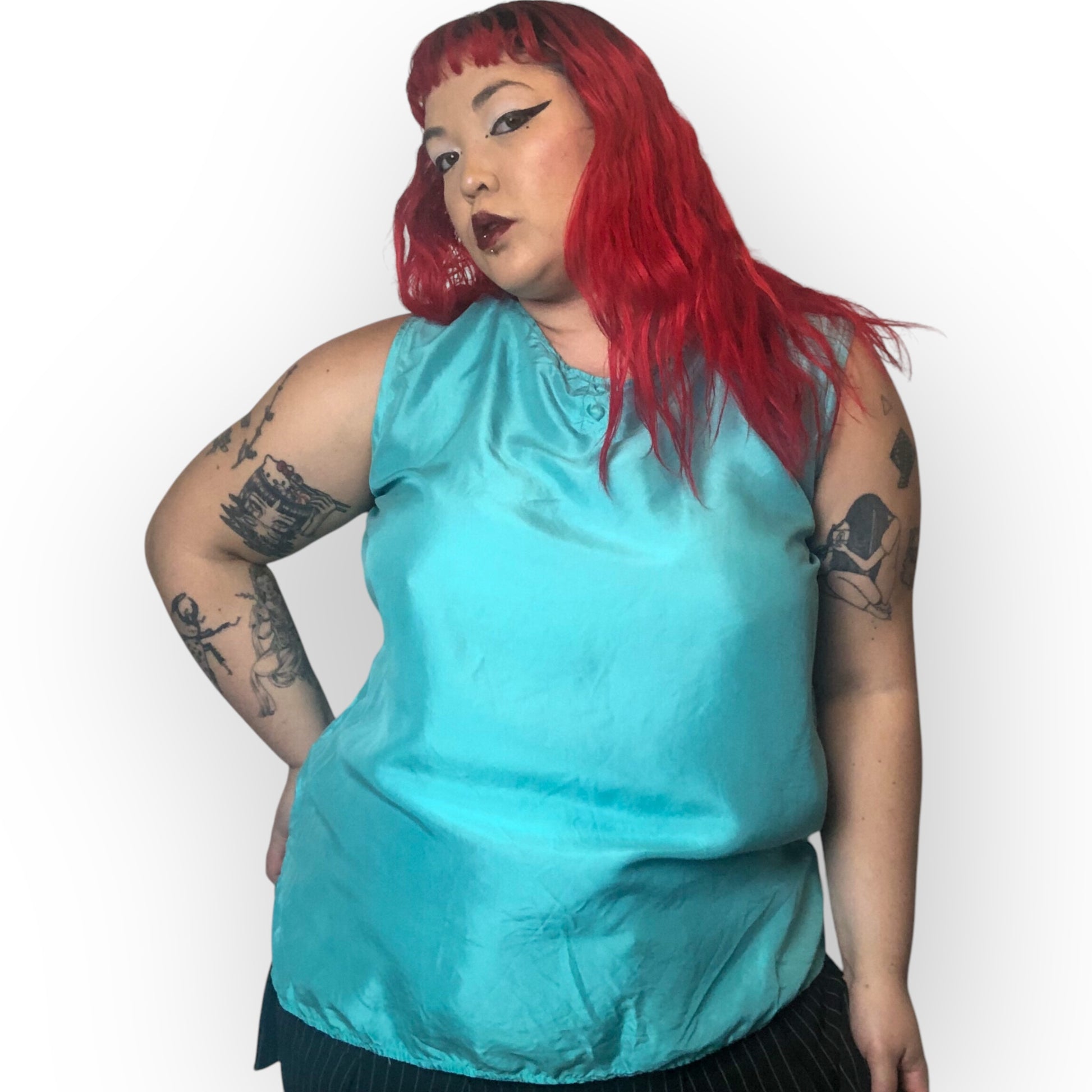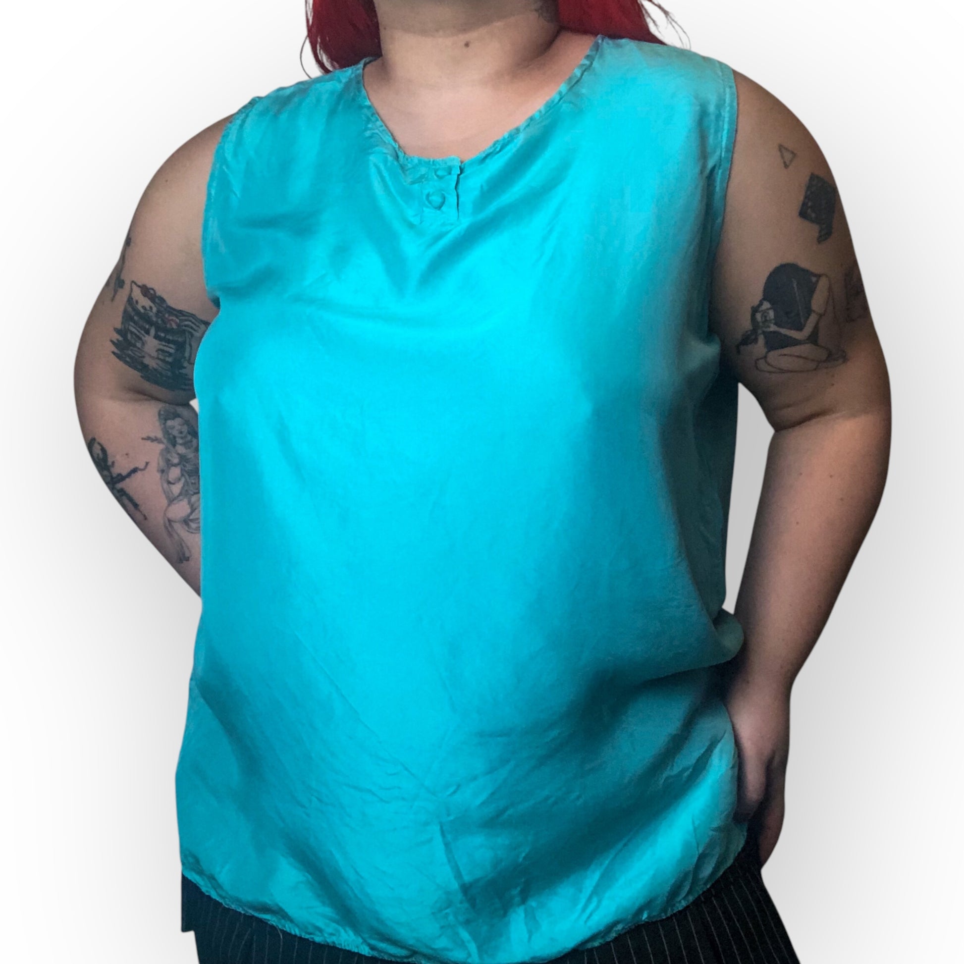 super soft flowy fabric (100% silk), two buttons at the neckline, side slits, single stitching
