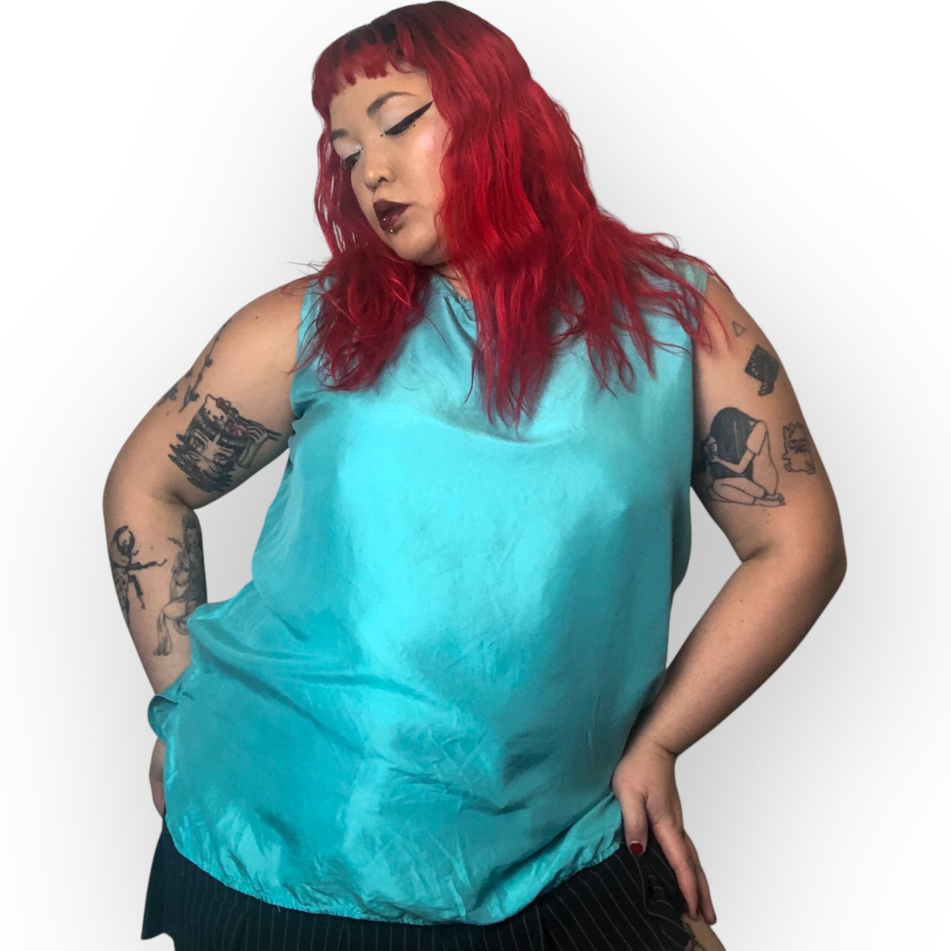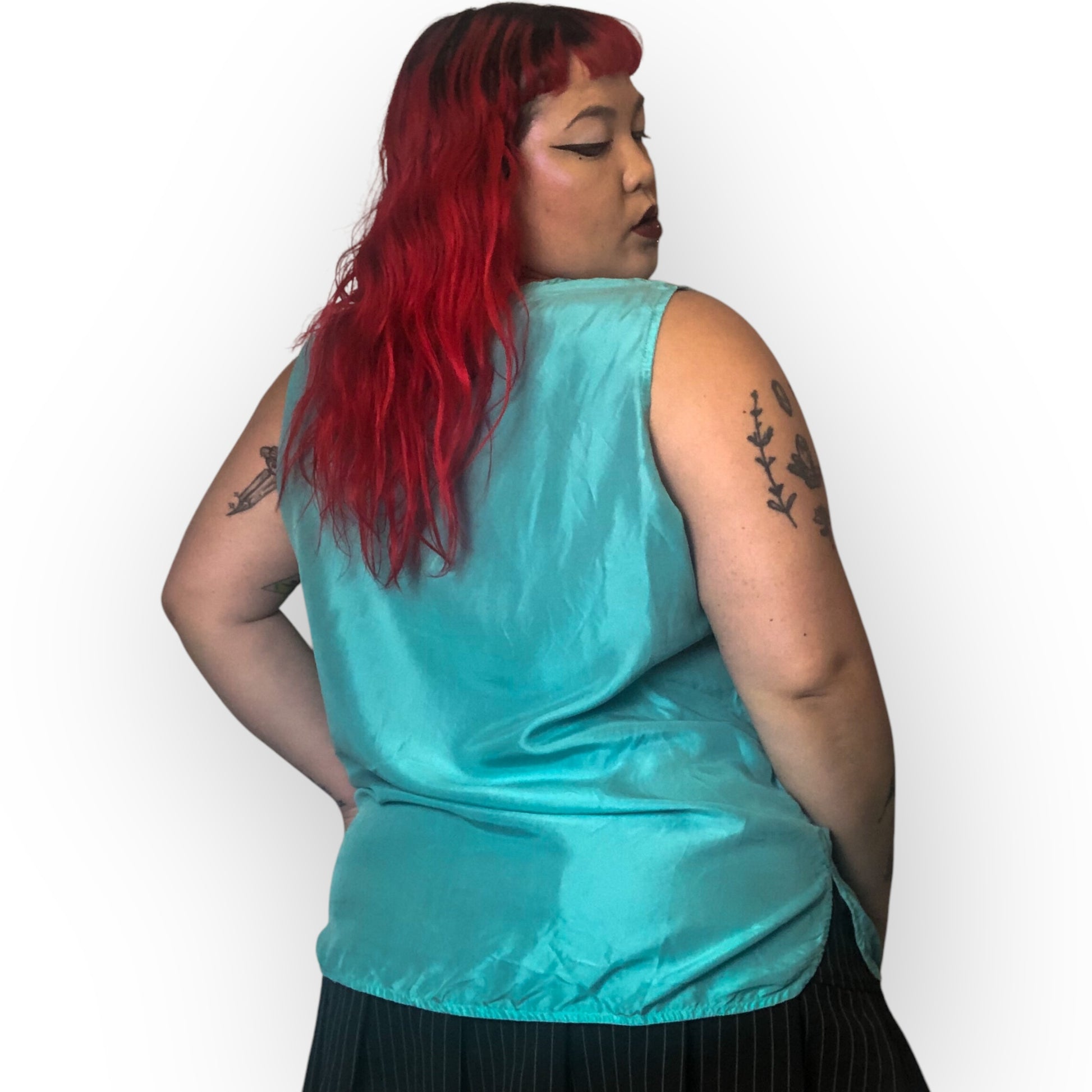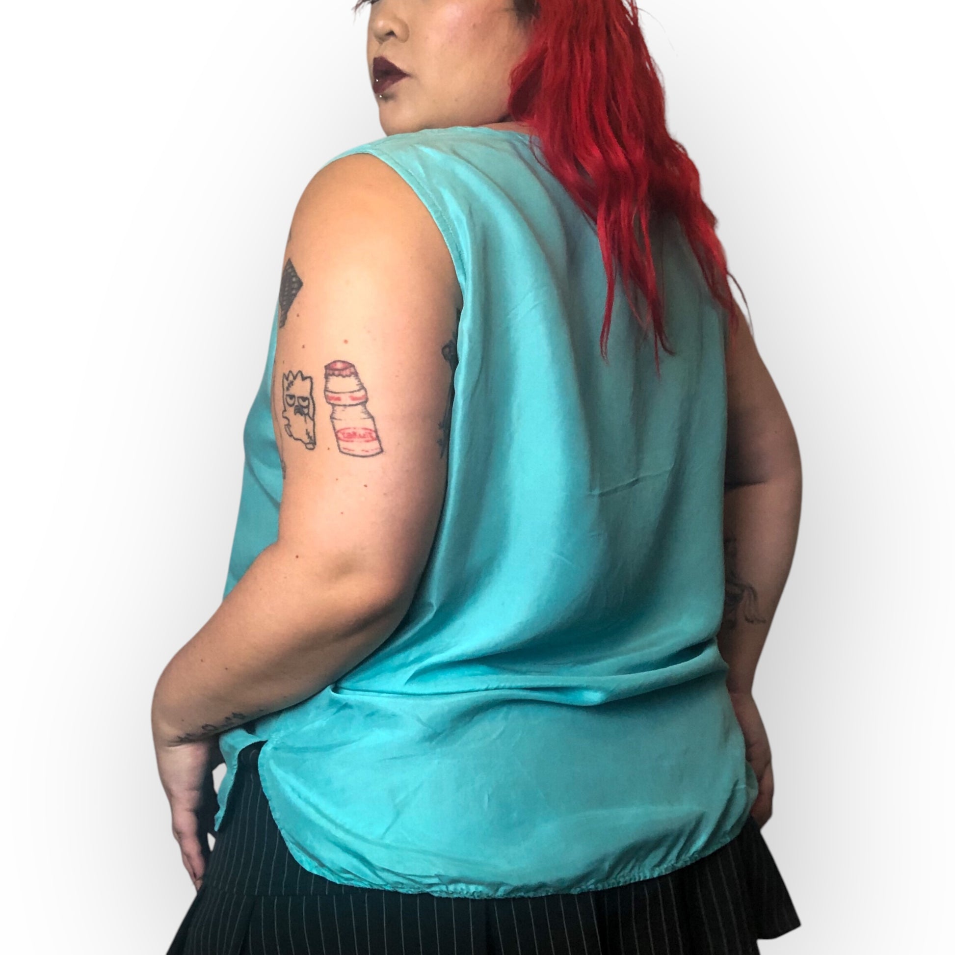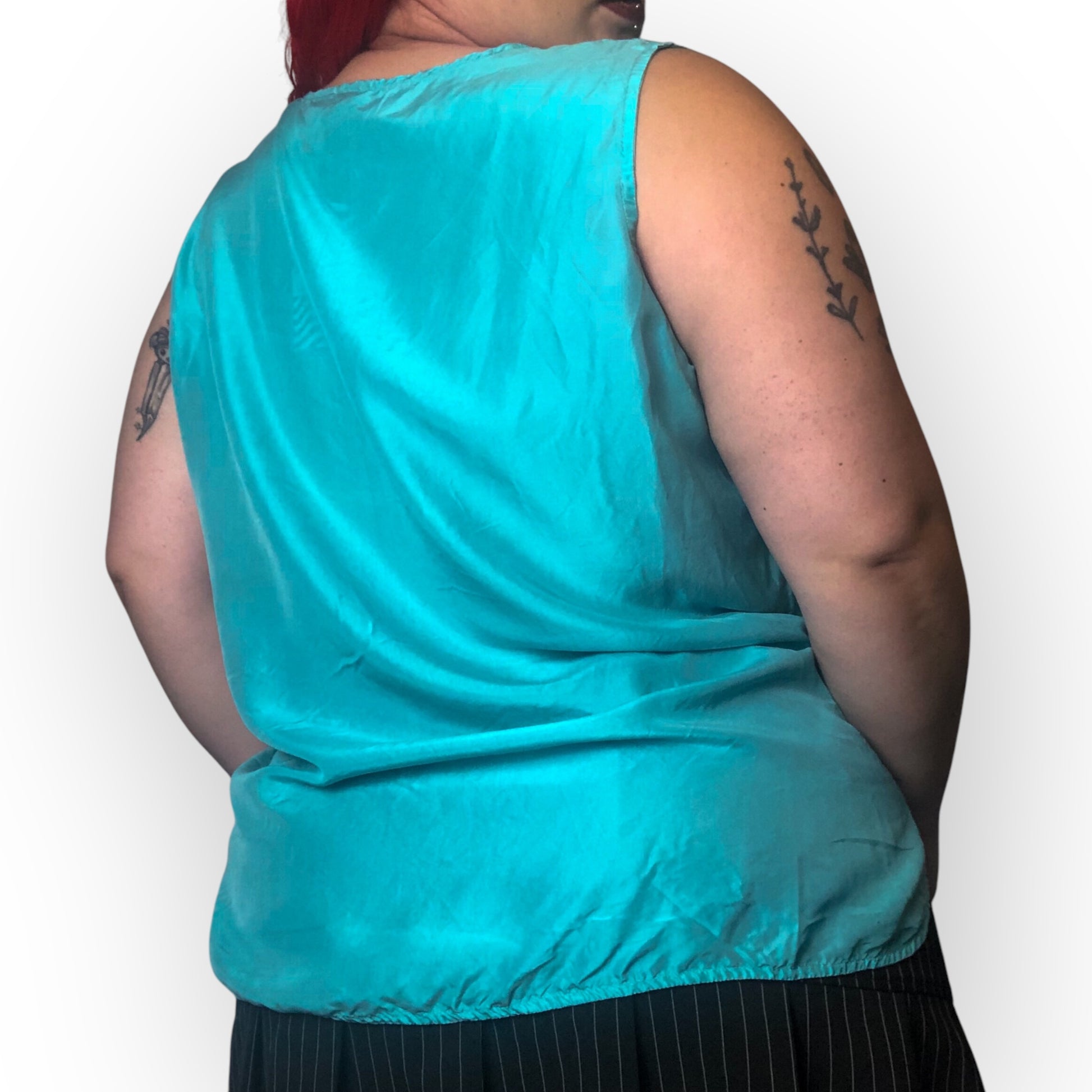 super soft flowy fabric (100% silk), two buttons at the neckline, side slits, single stitching
