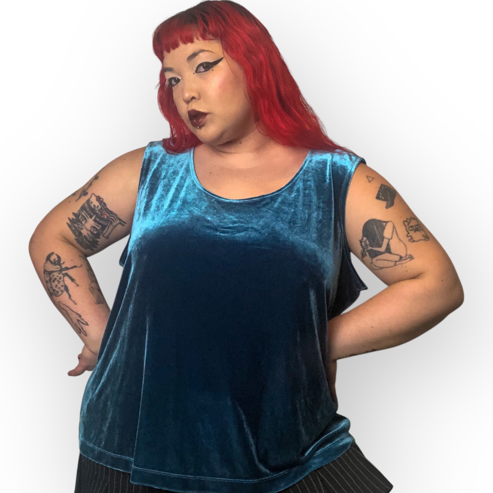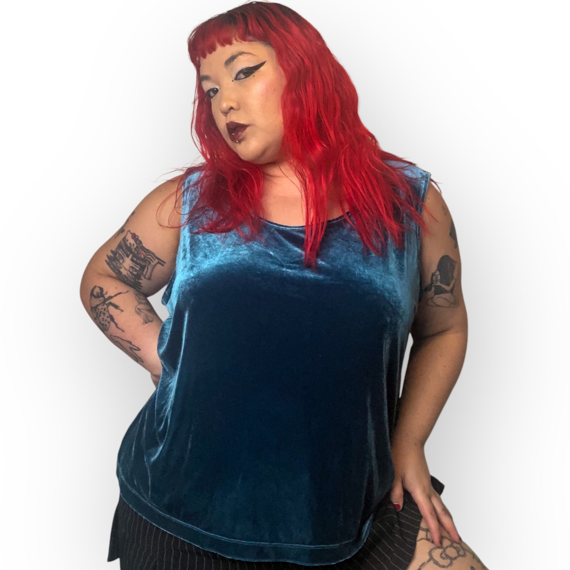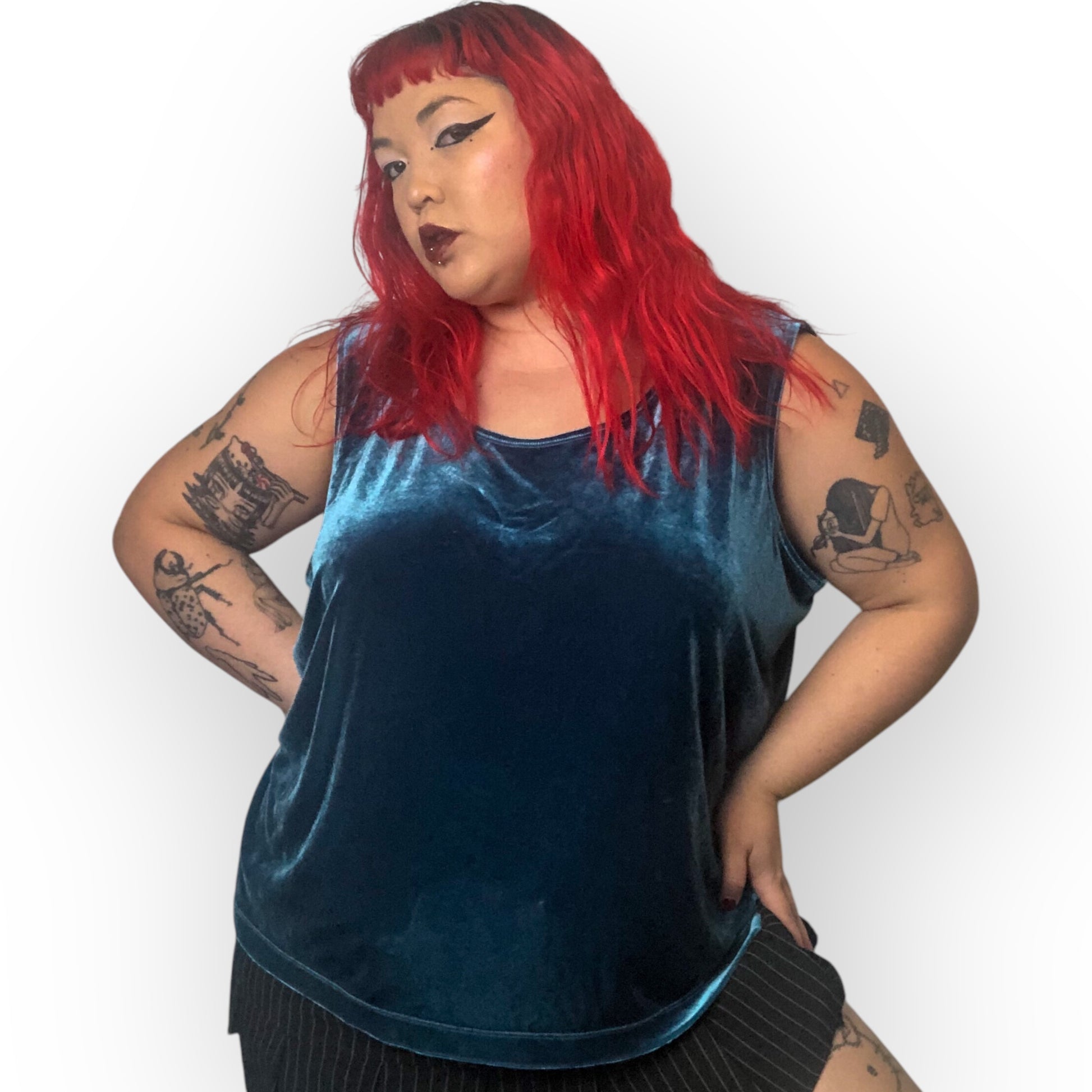 90’s Draper’s & Damon’s Aegean Blue Velvet Tank Top (3X)