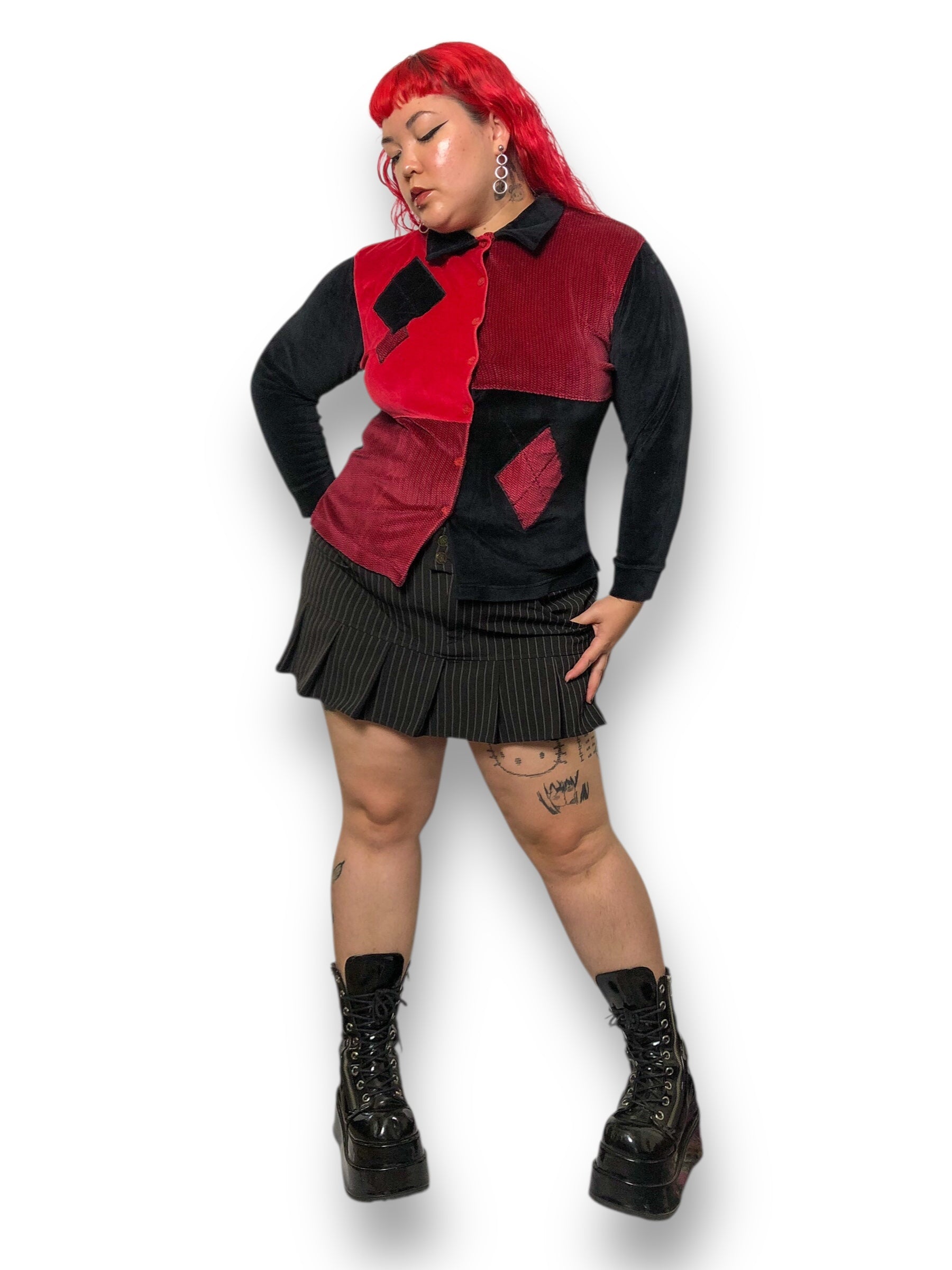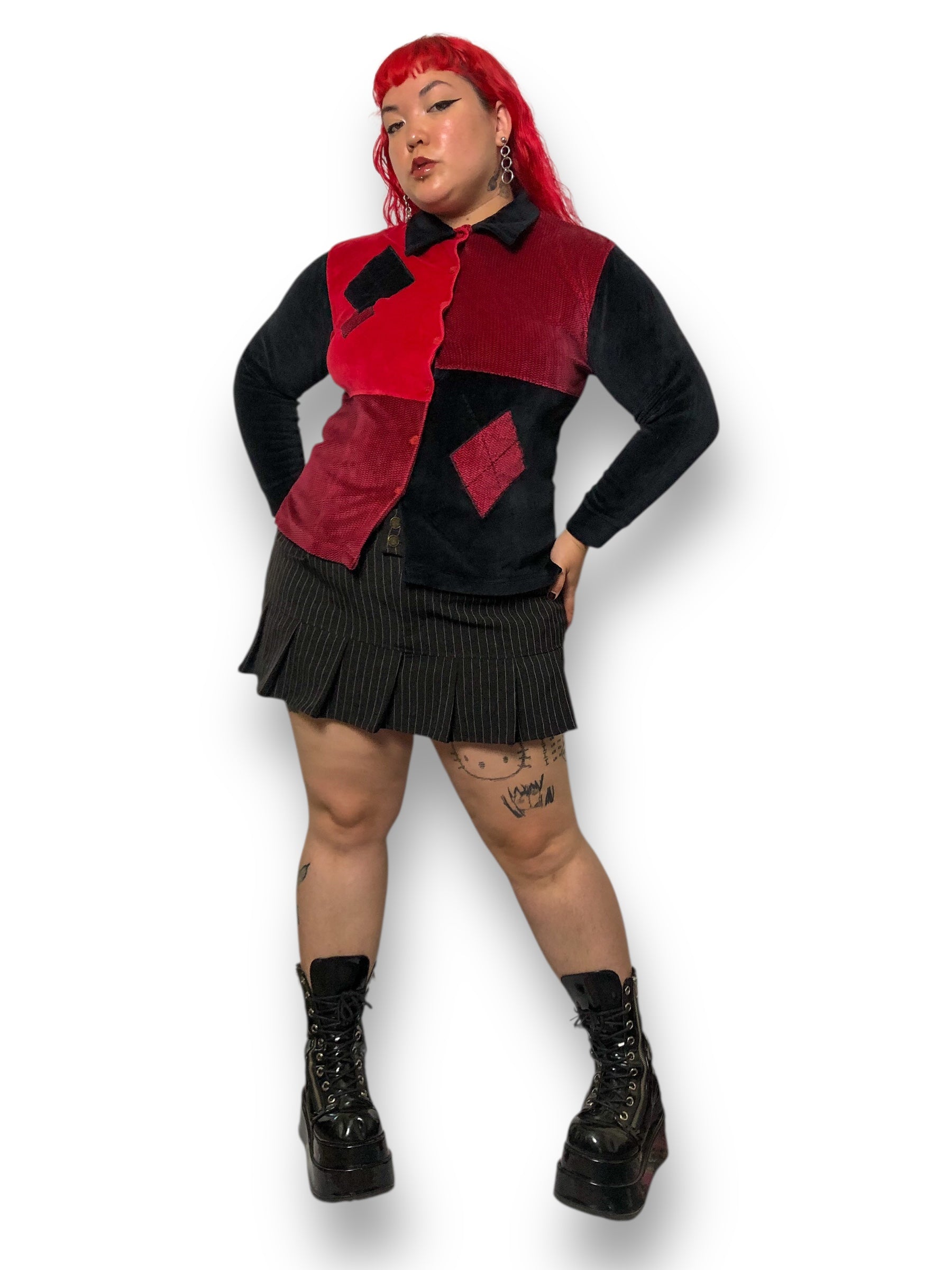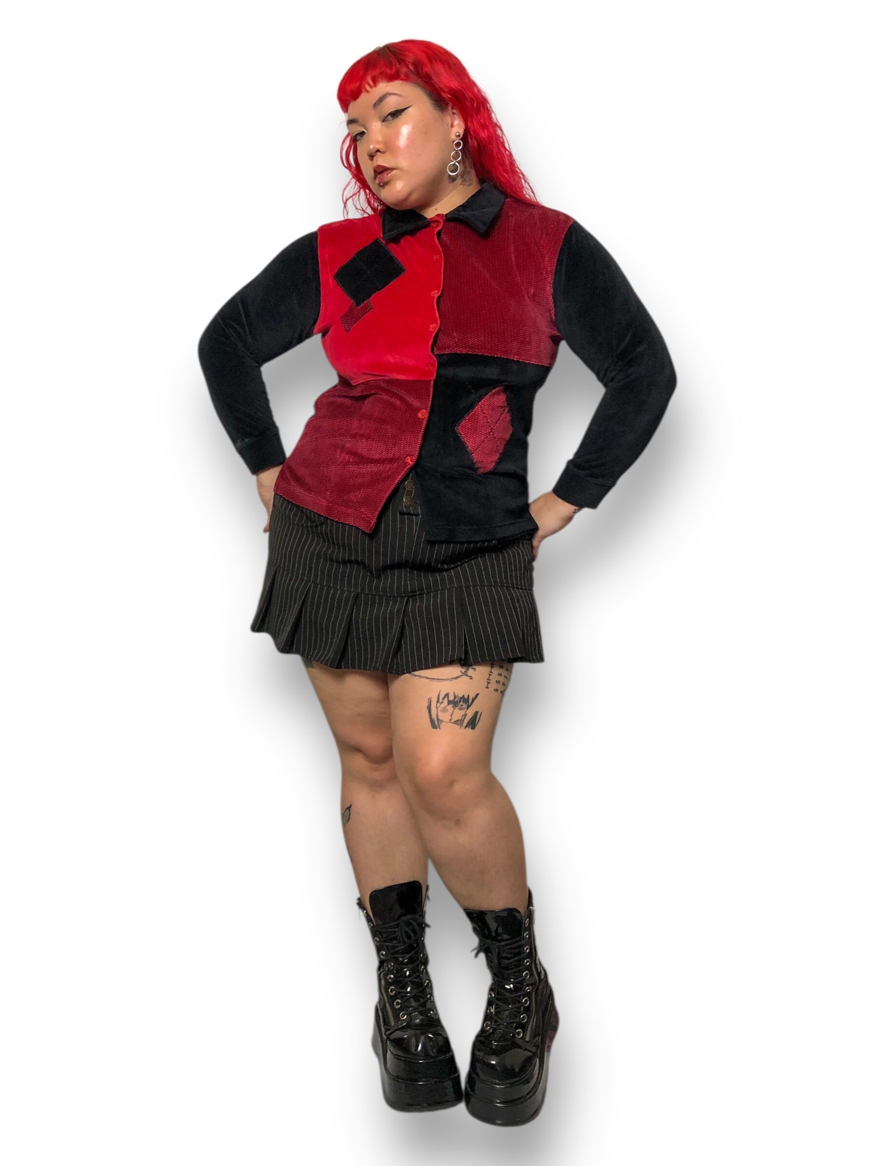 90’s Erika Red and Black Colorblock Velour Shirt (L)